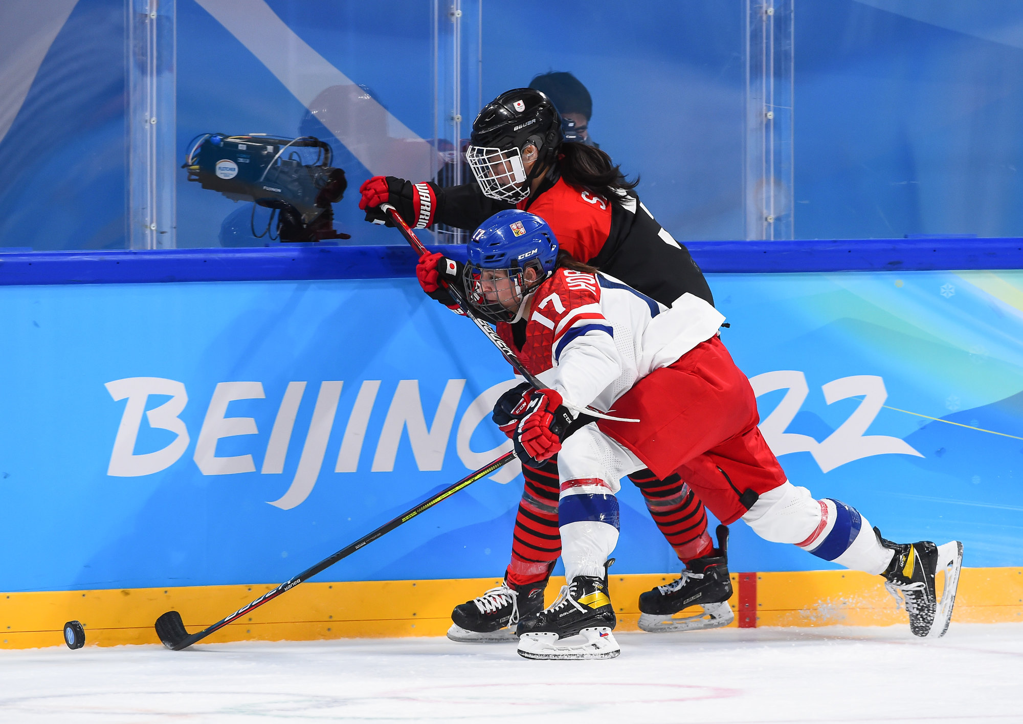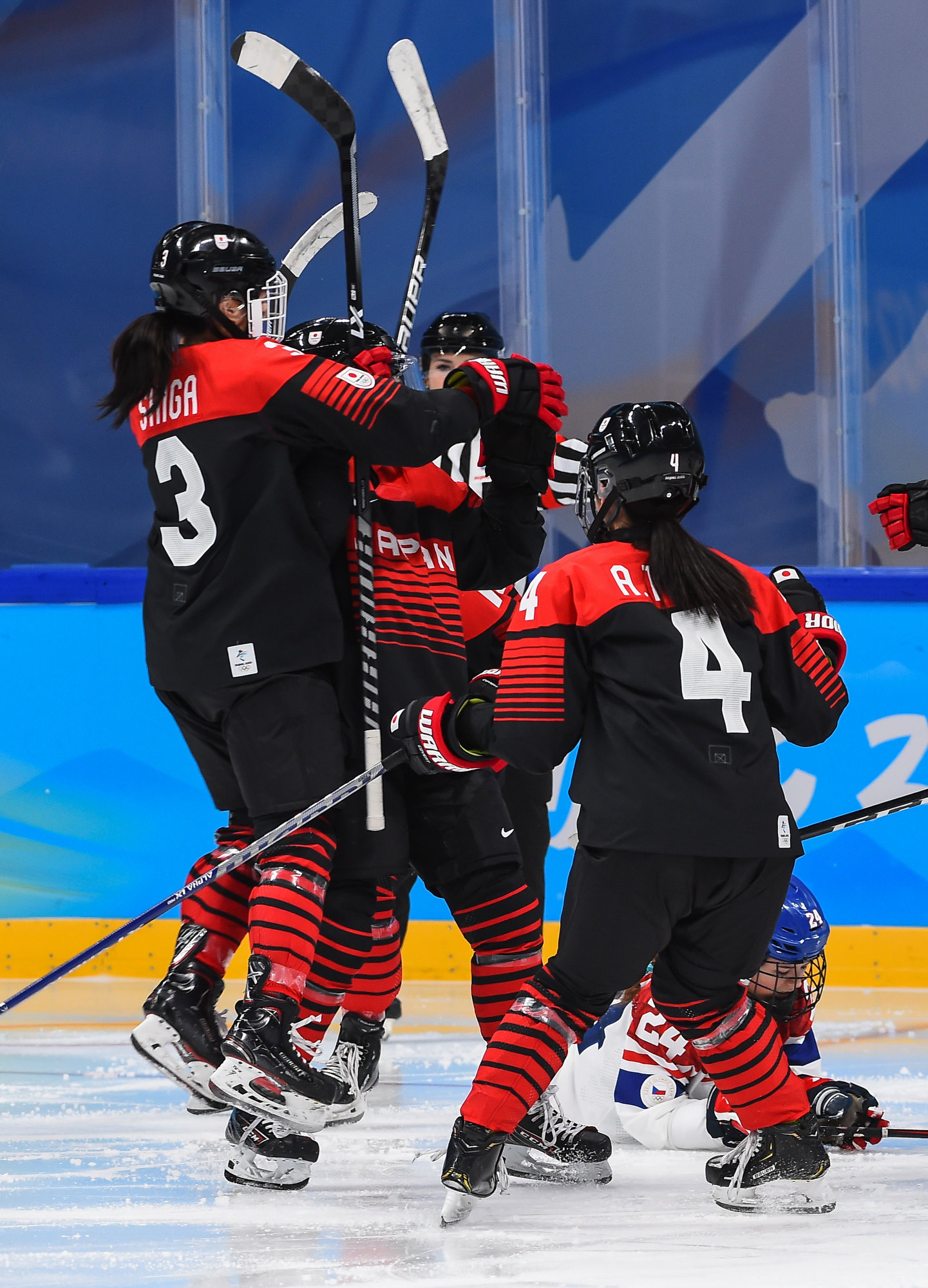 However, the Japanese two-player advantage continued into the third period and Japan regained the lead, and it was the Toko sisters who made it happen. After taking a pass from older sister Ayaka, Haruka Toko’s first shot hit the goalpost. She then grabbed the rebound out of a scramble in front and shot it past a diving Peslarova.