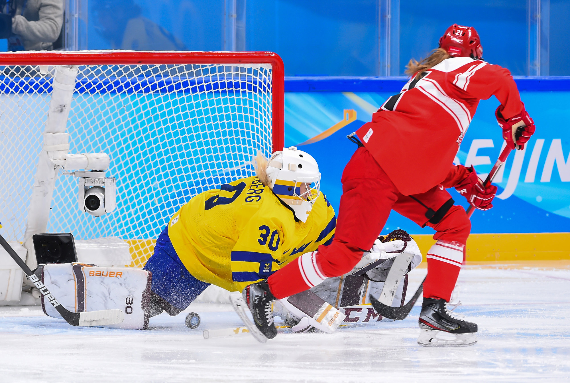 Sweden belatedly revived its Olympic campaign with victory over the host nation yesterday and looked to build on that here. And the bare stats from the first period might suggest that the Damkronorna did exactly that. After just three minutes, the Swedes got in front when Denmark coughed up the puck in its own zone and Emma Nordin pounced for her first goal of the tournament.
