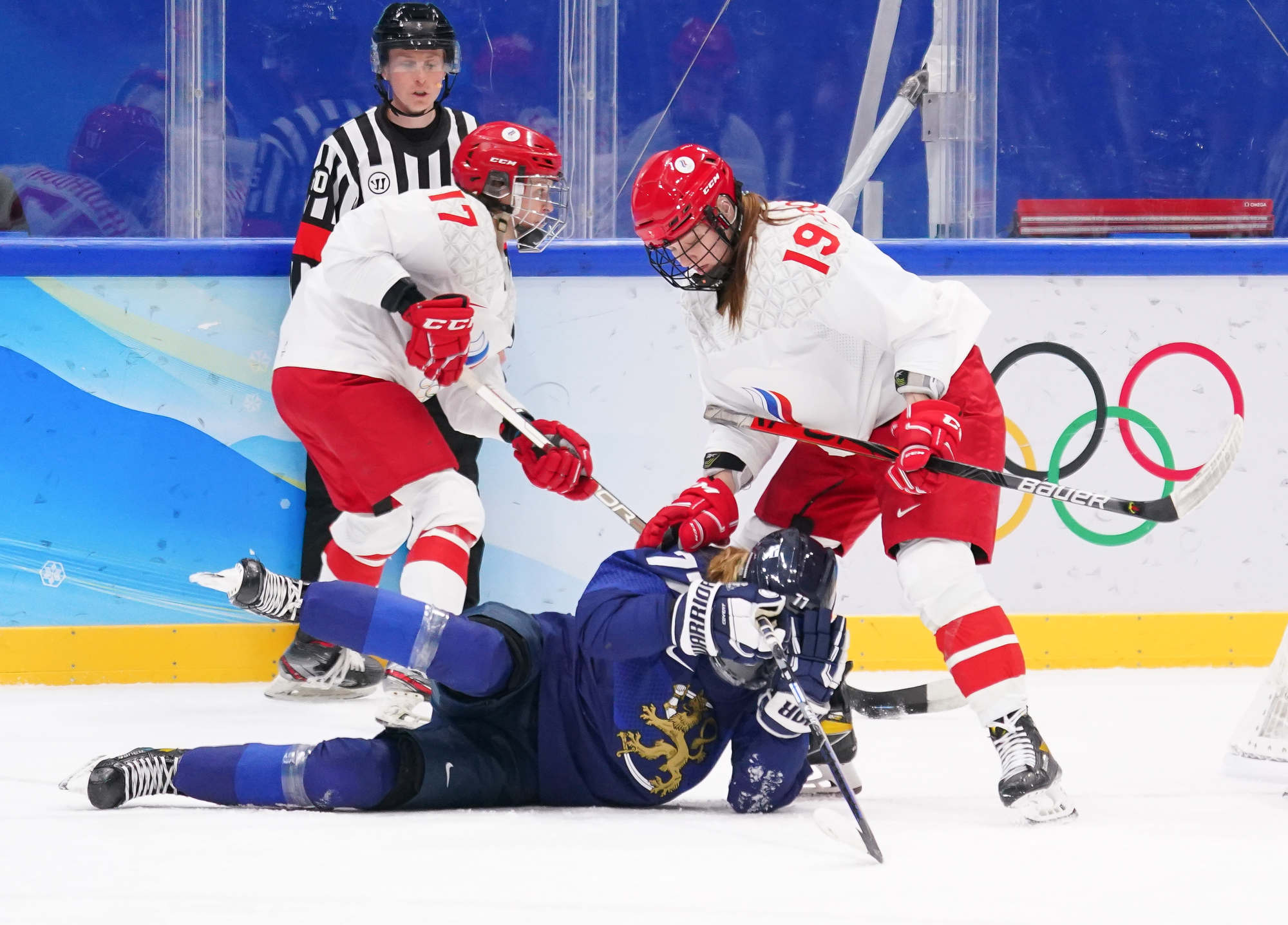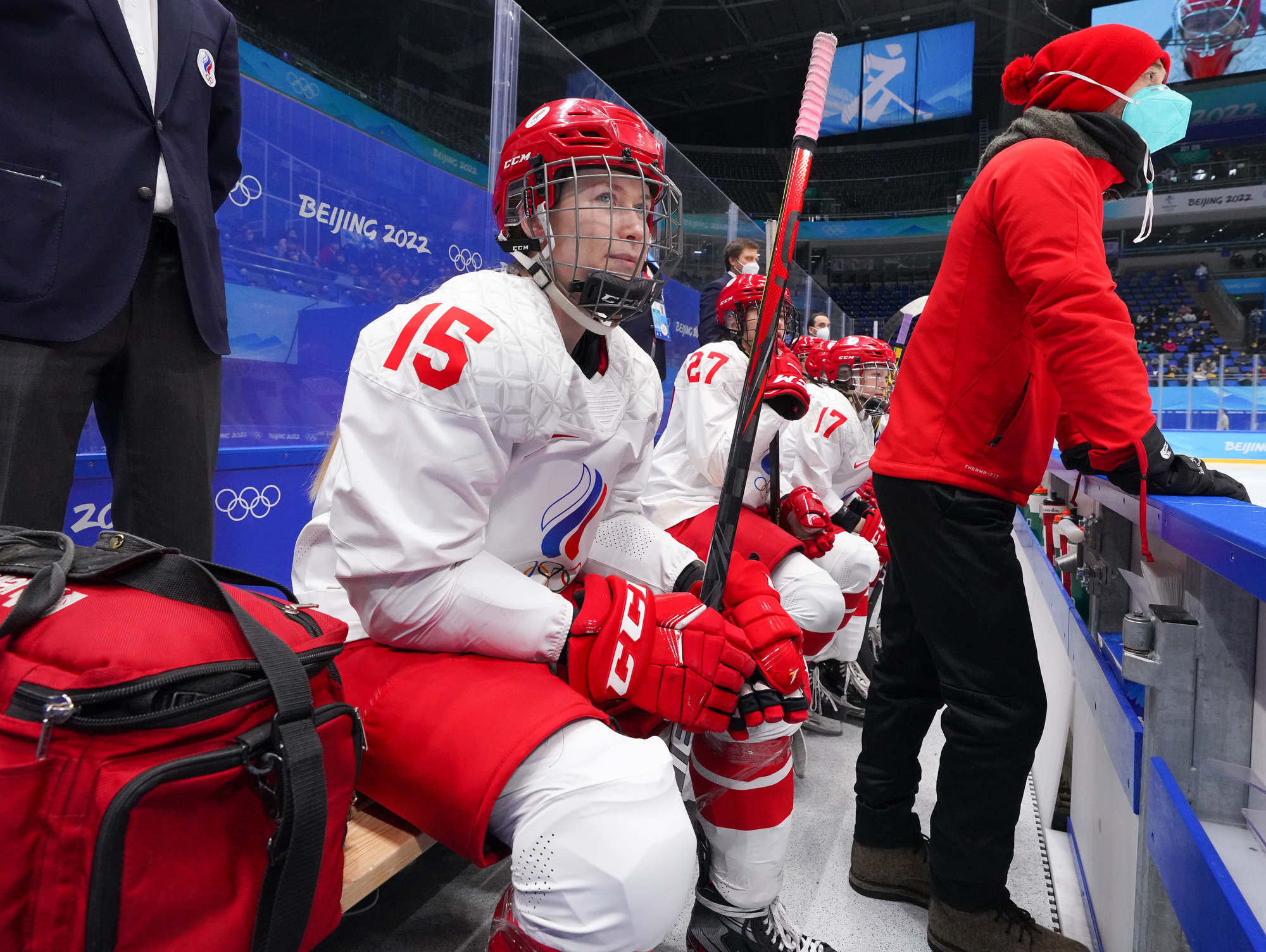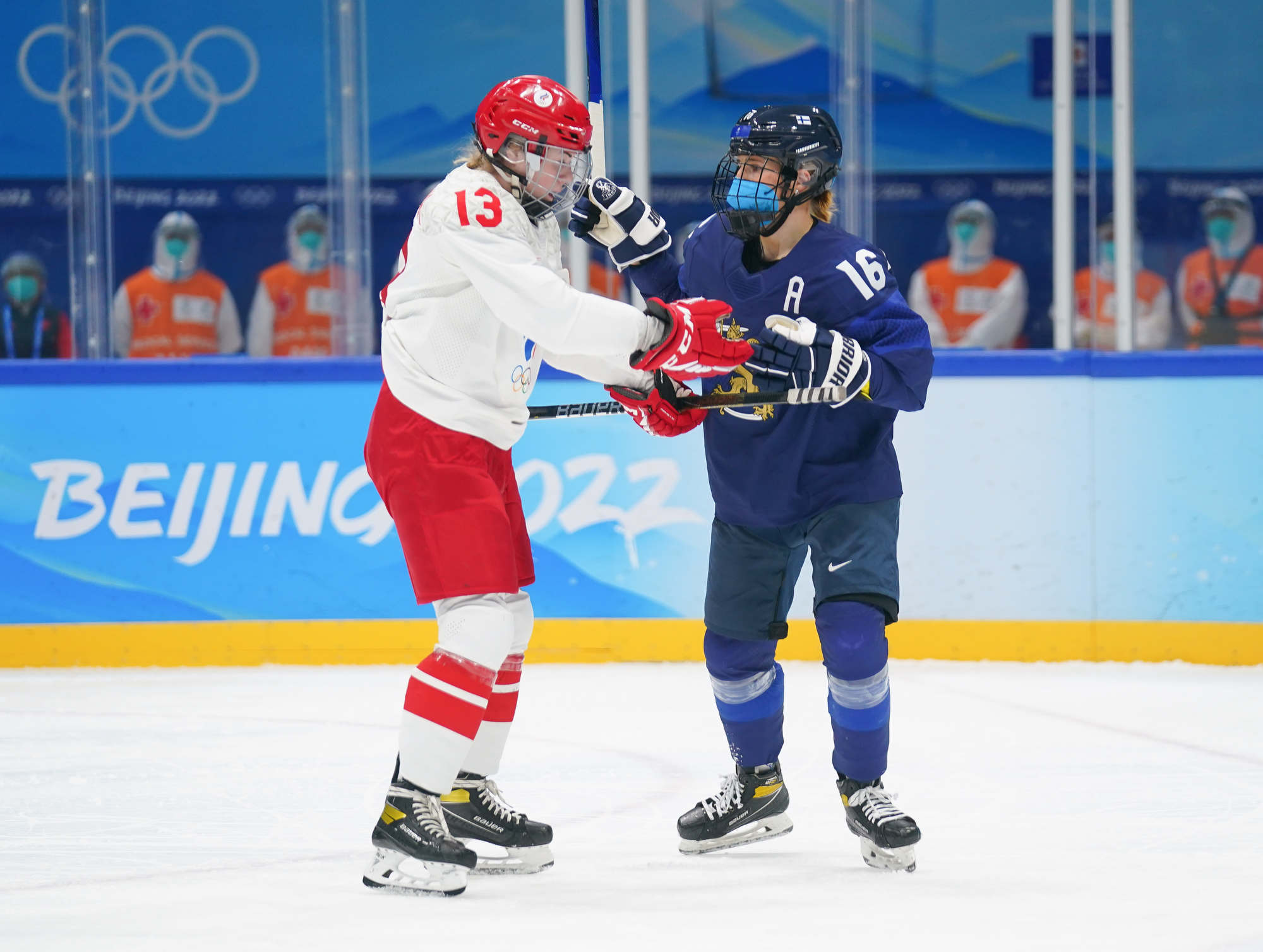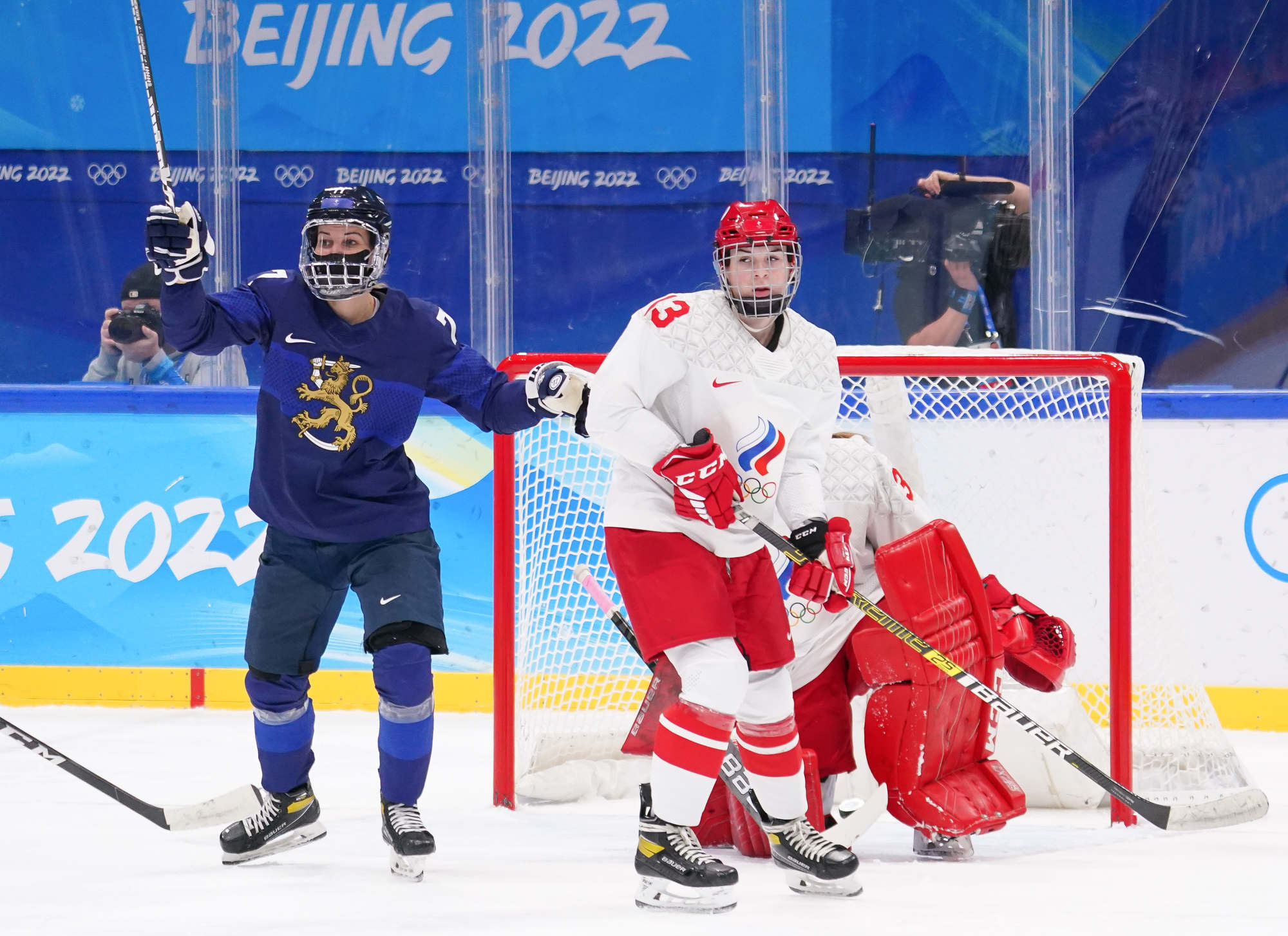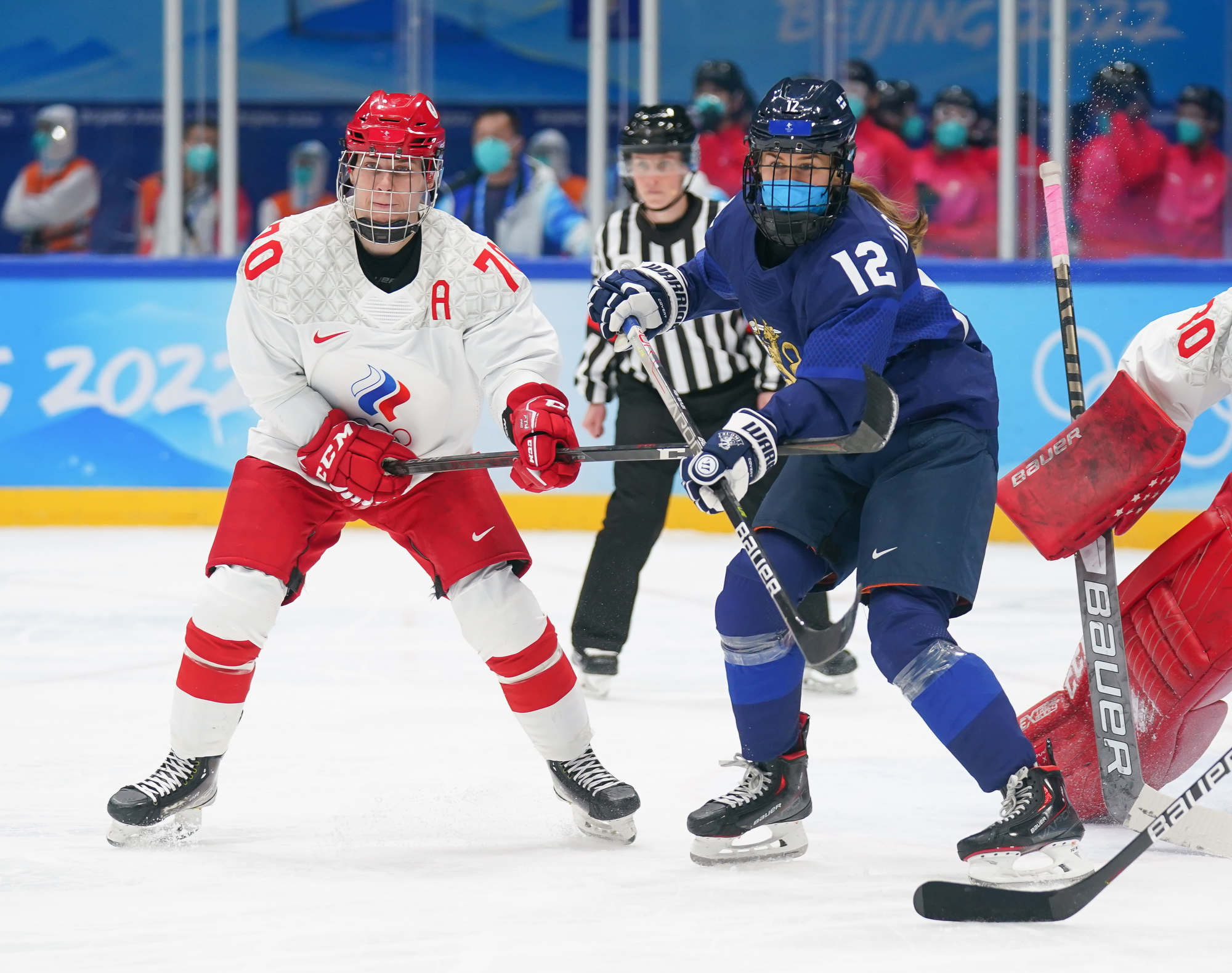The win was the first of these Olympics for Finland and came after more ROC drama before the puck drop. ROC’s leading scorer, Polina Bolgareva, received a positive covid test and went to isolation instead of the arena with her teammates. She had three of the team’s six goals, and joined three other teammates in the press box, as it were, leaving coach Yevgeni Bobariko with only 18 skaters for the game. The Finns took the necessary precaution of playing with their N95 masks.