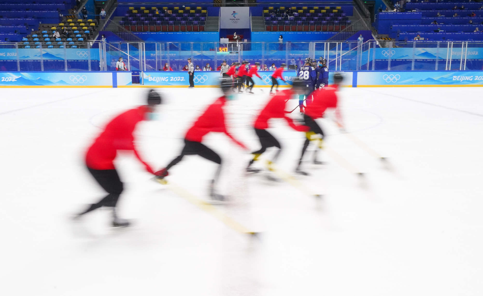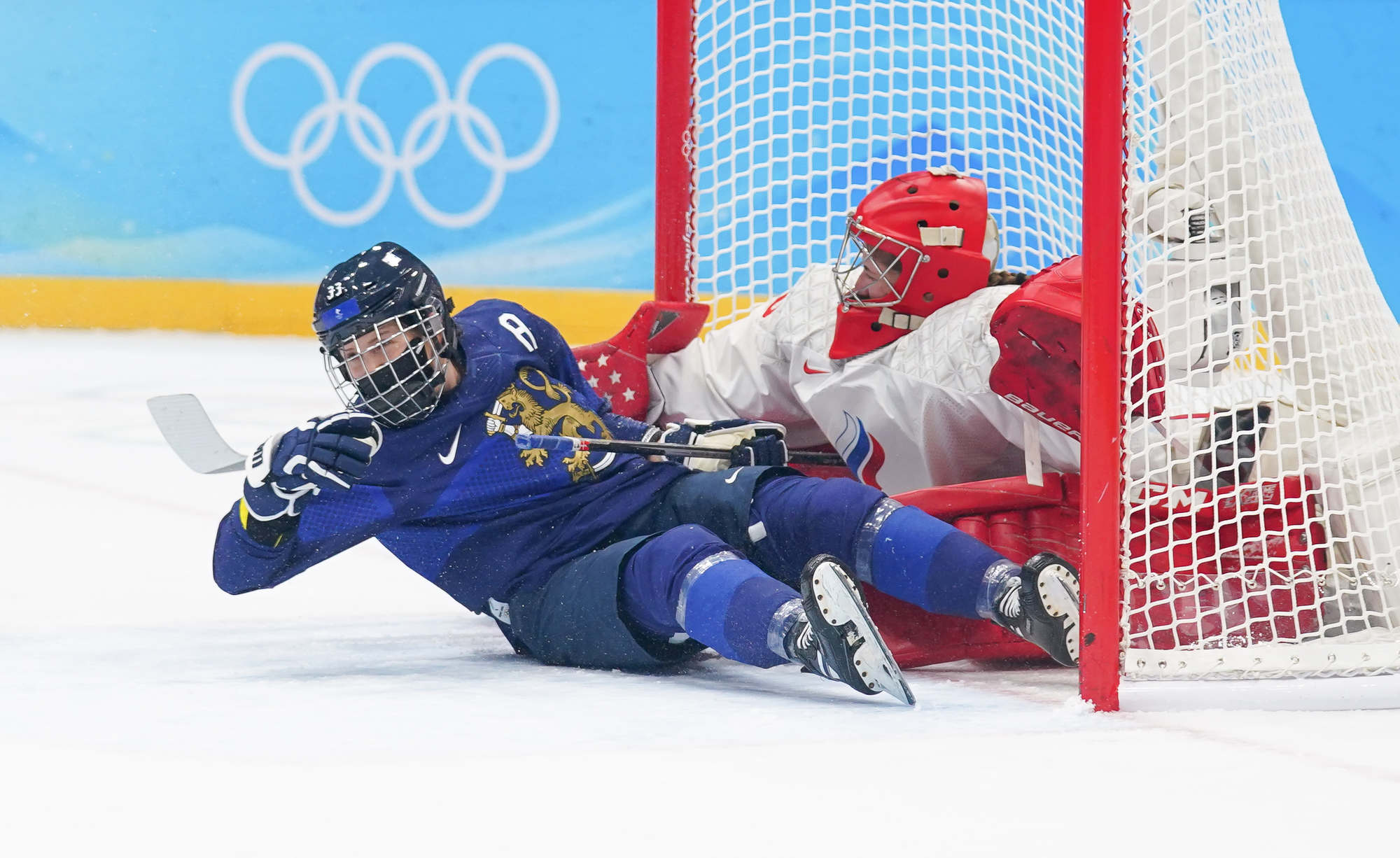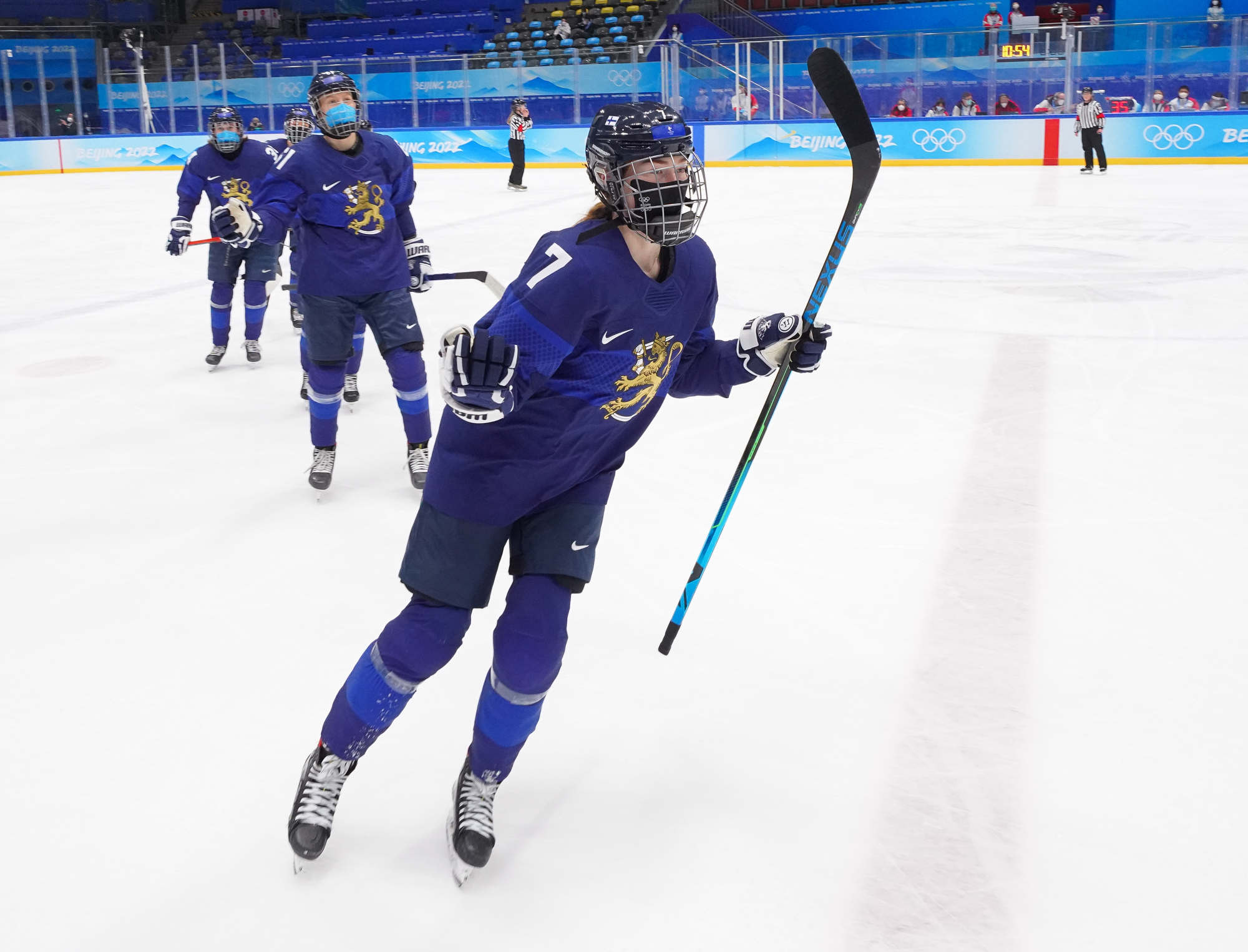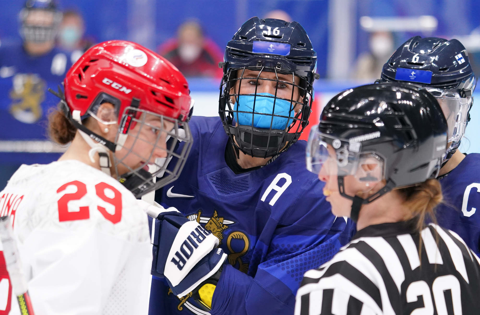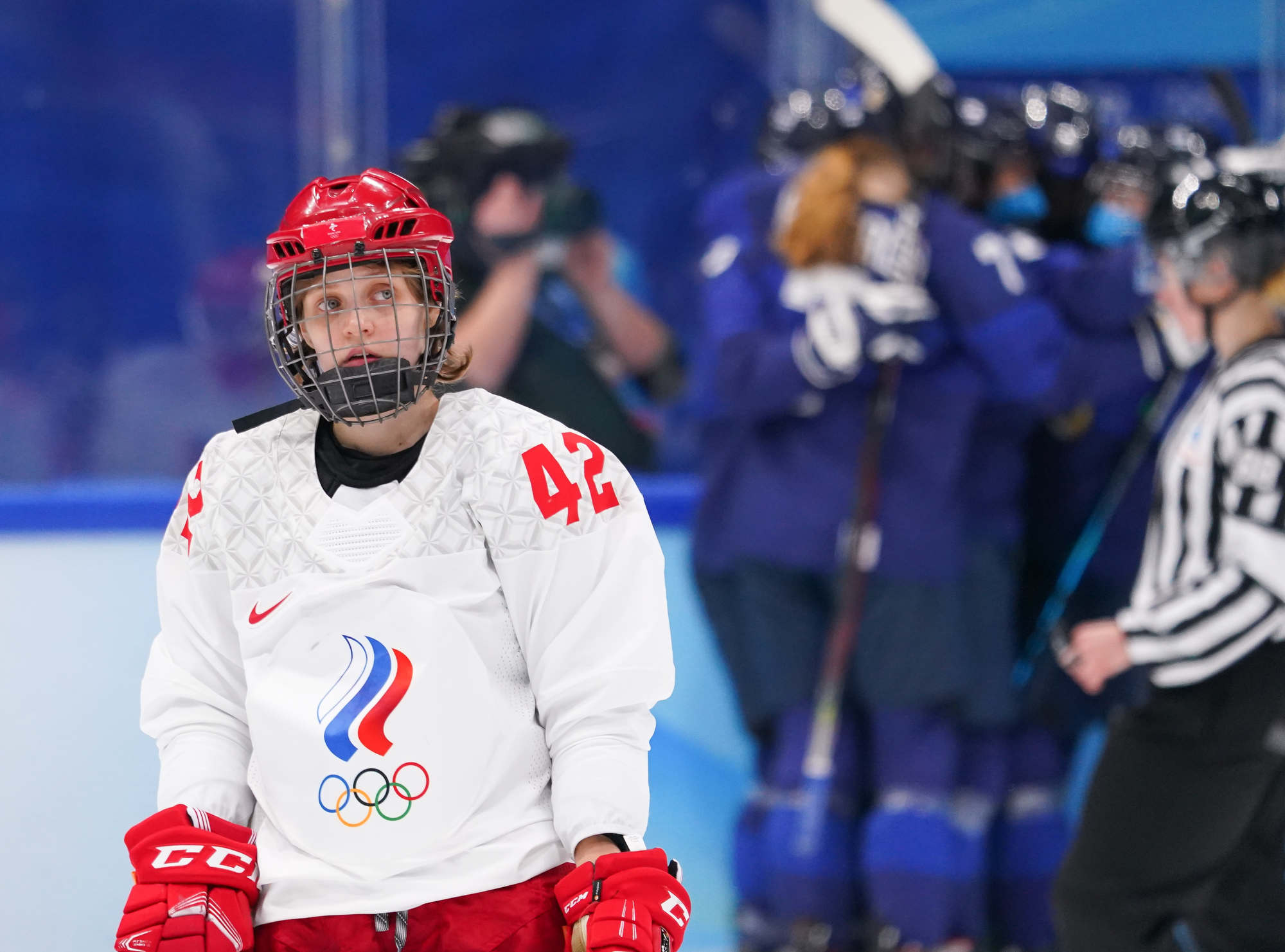 The win was the first of these Olympics for Finland and came after more ROC drama before the puck drop. ROC’s leading scorer, Polina Bolgareva, received a positive covid test and went to isolation instead of the arena with her teammates. She had three of the team’s six goals, and joined three other teammates in the press box, as it were, leaving coach Yevgeni Bobariko with only 18 skaters for the game. The Finns took the necessary precaution of playing with their N95 masks.