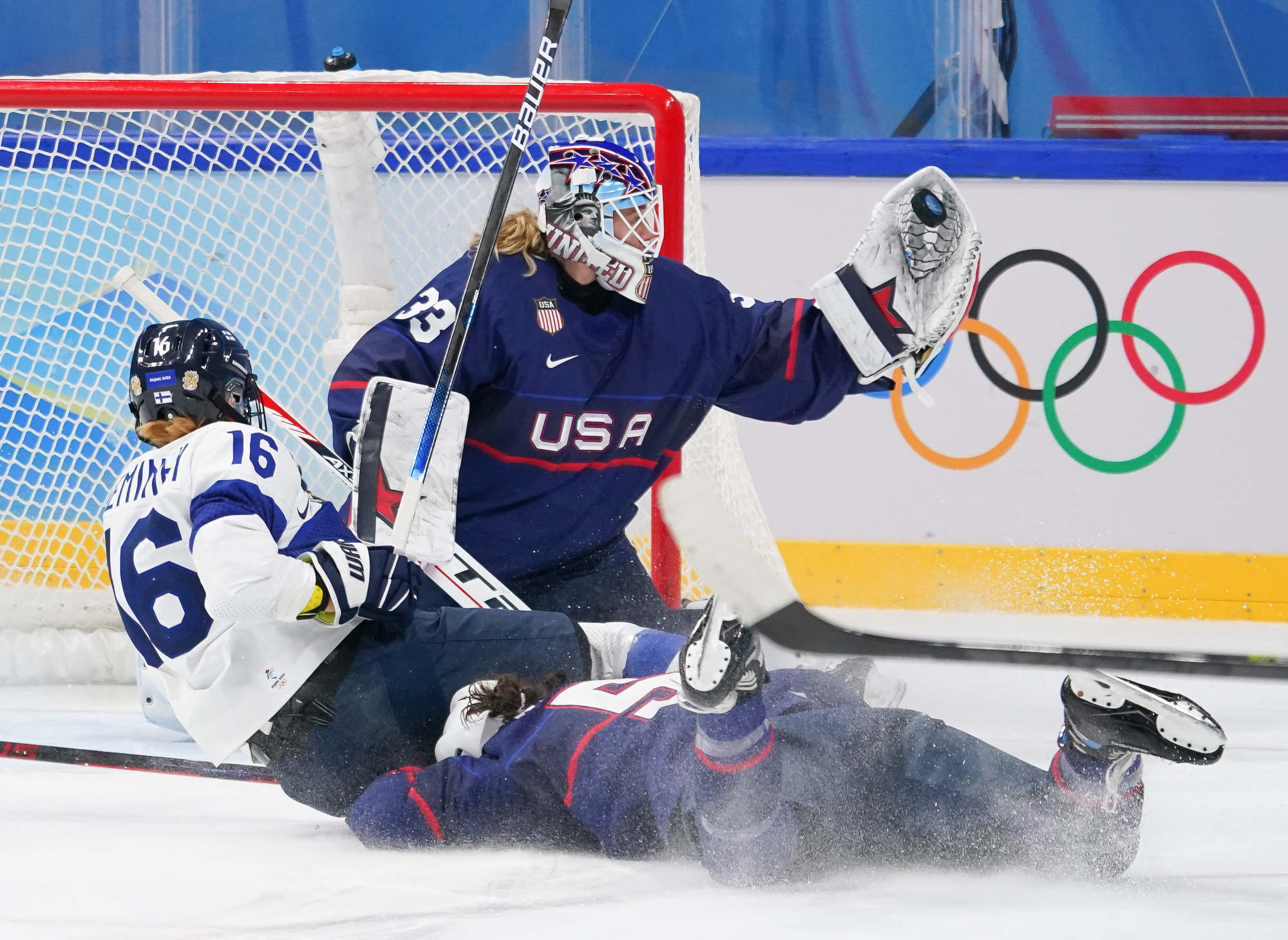 The U.S. opened the scoring early in the second on the game’s first power play. Hannah Brandt found Cayla Barnes wide open to the back of the play, and Barnes had the entire net to snap the puck into at 3:39. It wasn’t until the midway point of the period that the Finns got their first shot, but late in the period they had two glorious chances to even the score.