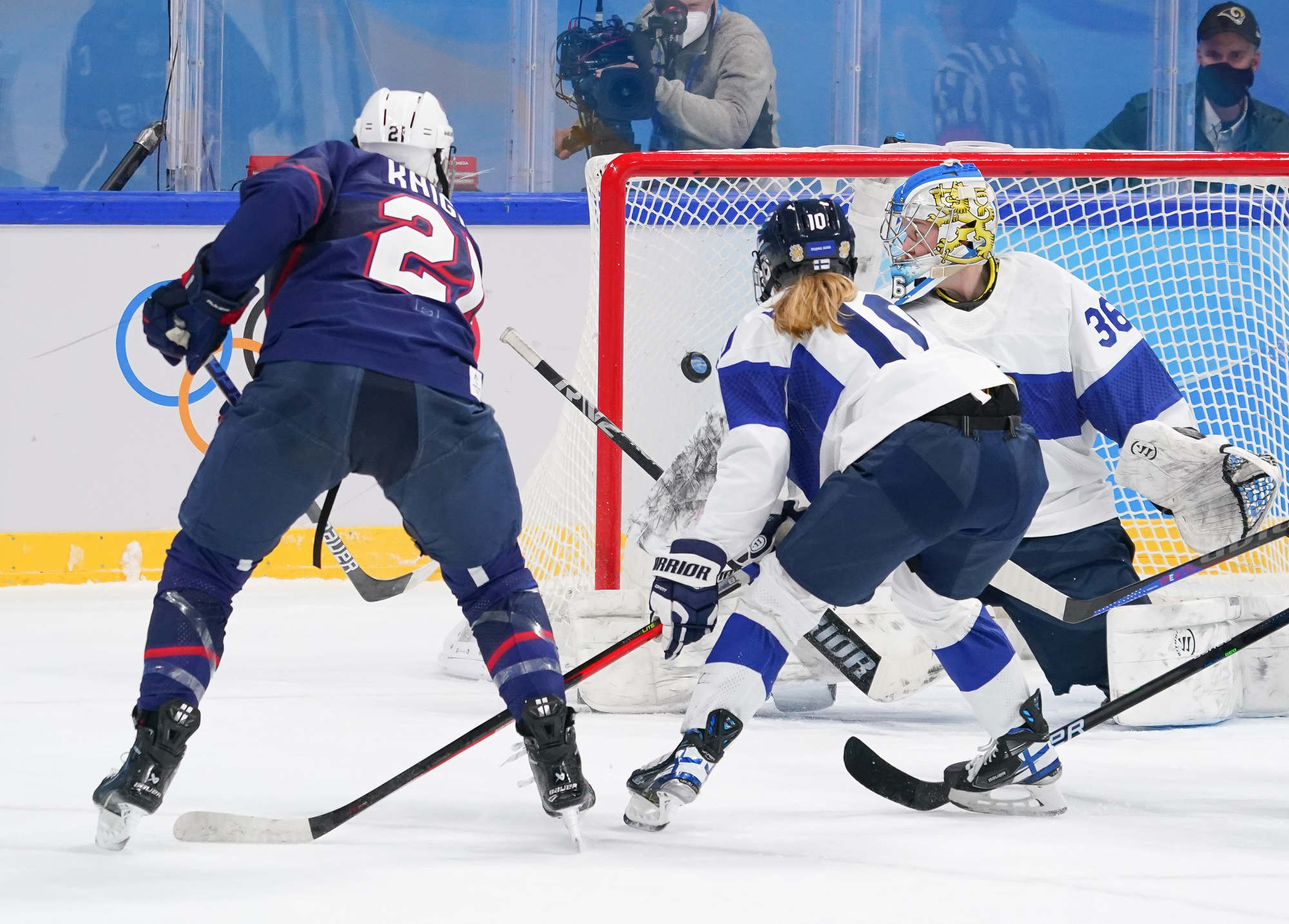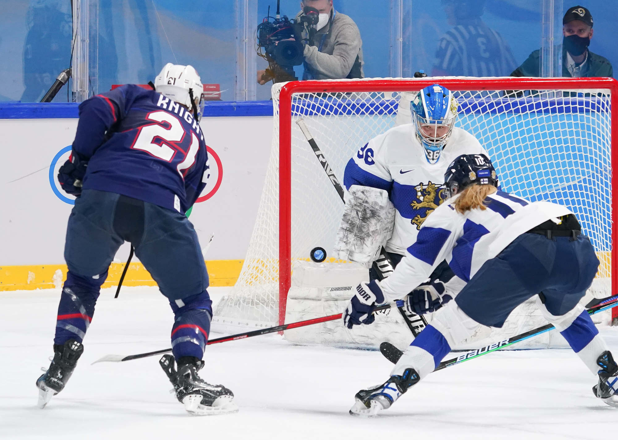 Feeding off those saves at the back end, the U.S. doubled their lead thanks to Hilary Knight. Karvinen couldn’t corral a loose puck in front of her goal, and Knight claimed the disc and drilled a high shot over Keisala’s blocker for a critical goal.
