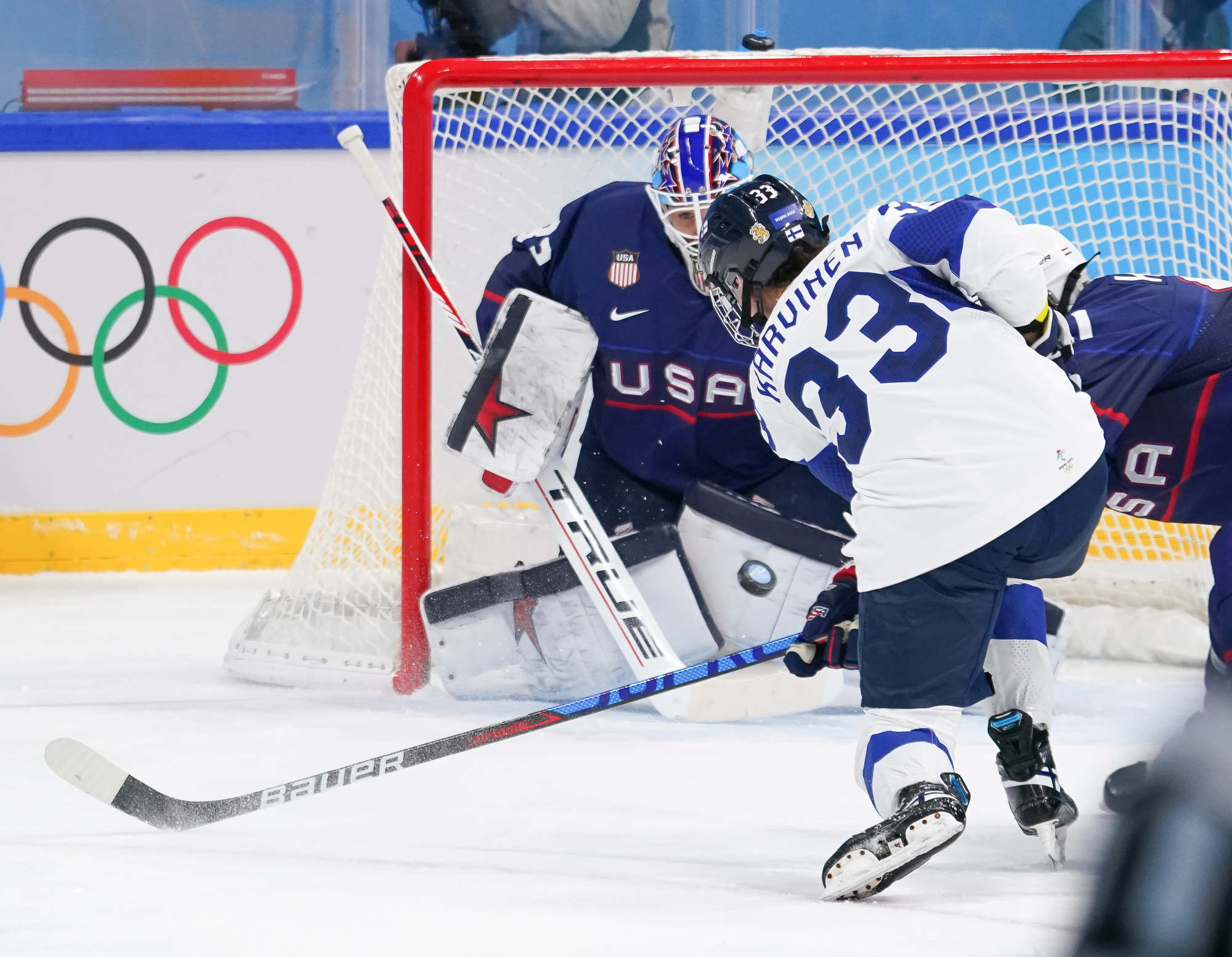 The play energized the Finns going to the dressing room, though. They had kept the first 20 minutes scoreless, and they had matched the U.S. for great scoring chances – Kessel versus Karvinen.