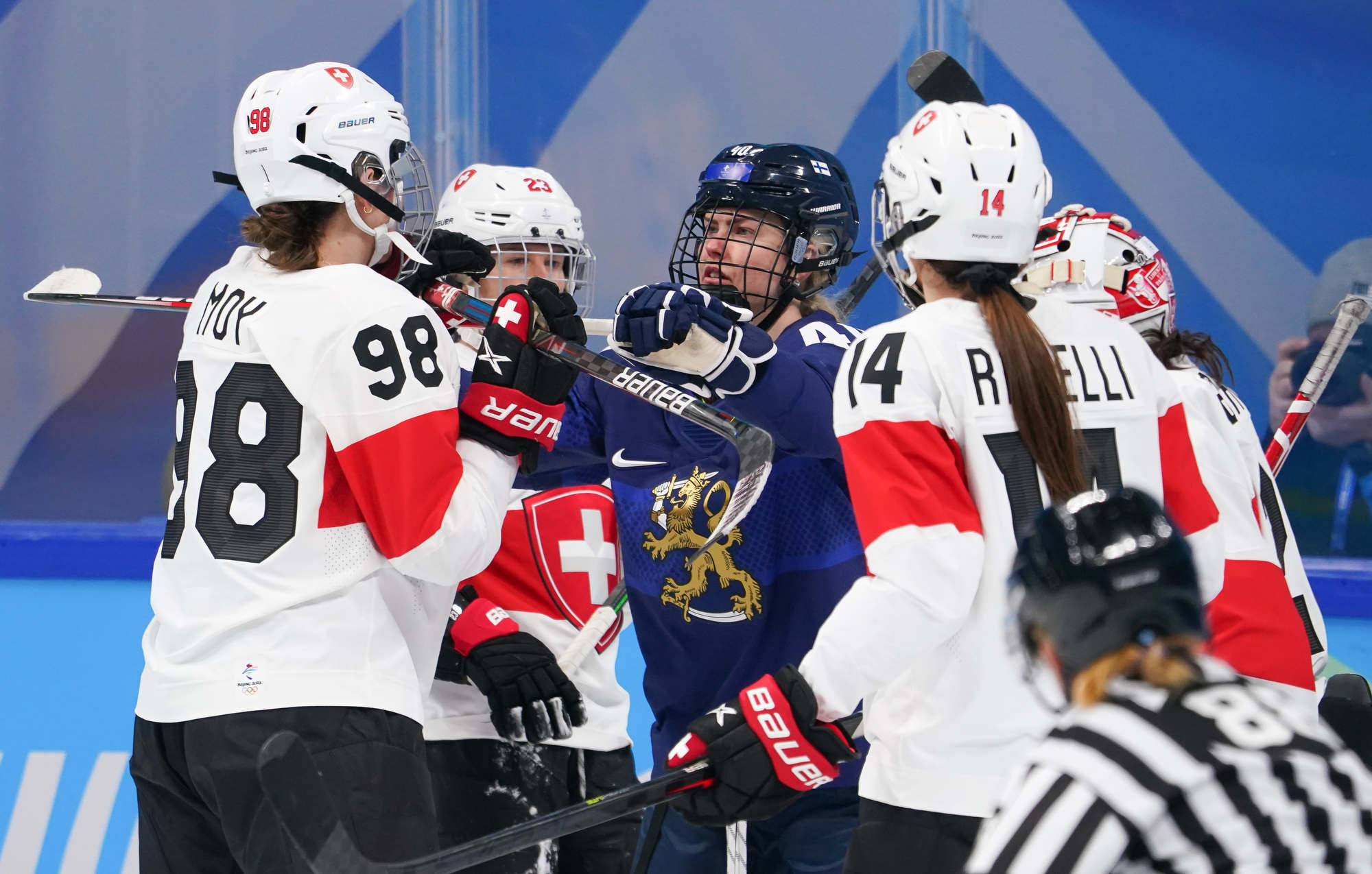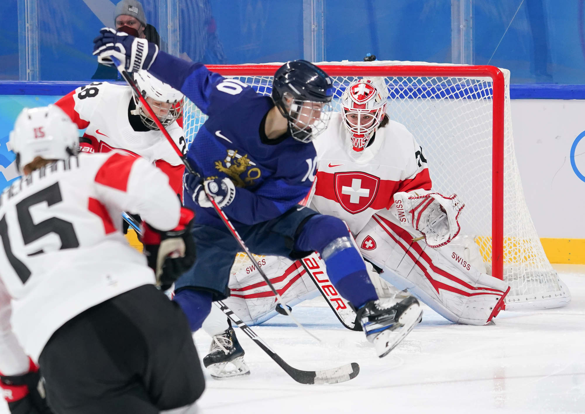 While the Finns rolled over four lines and produced a balanced attack, the Swiss had only one line to rely on--Alina Muller-Lara Stalder-Phoebe Stanz. In fact, that line accounted for 10 of the team's 13 goals in Beijing, and coach Colin Muller played Alina Muller and Stalder as much as he could. It just wasn't enough, and the Finns were letter perfect inside their own blue line.