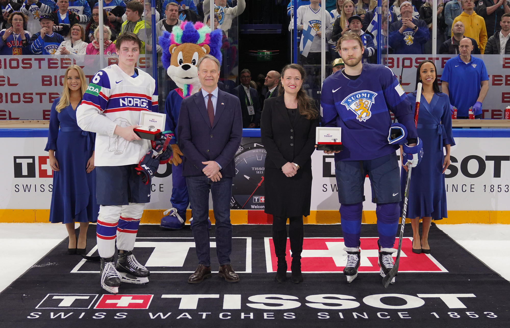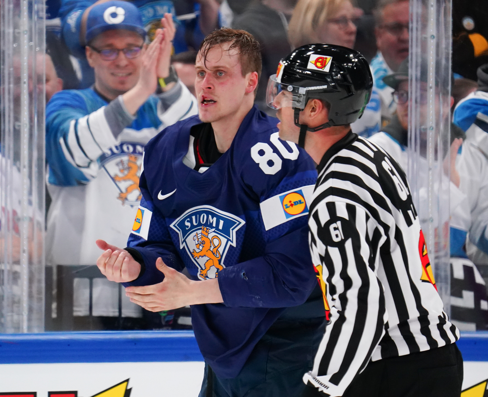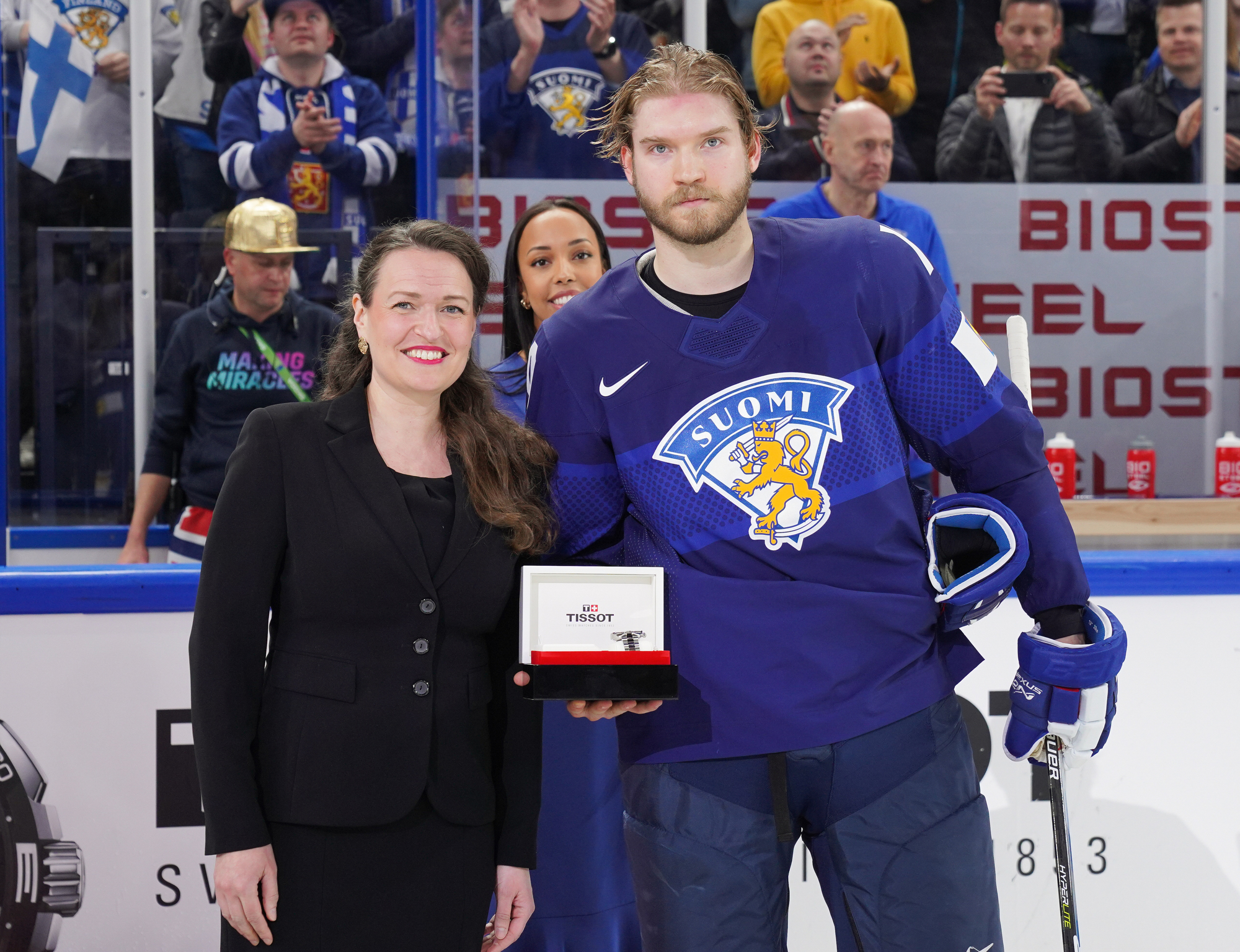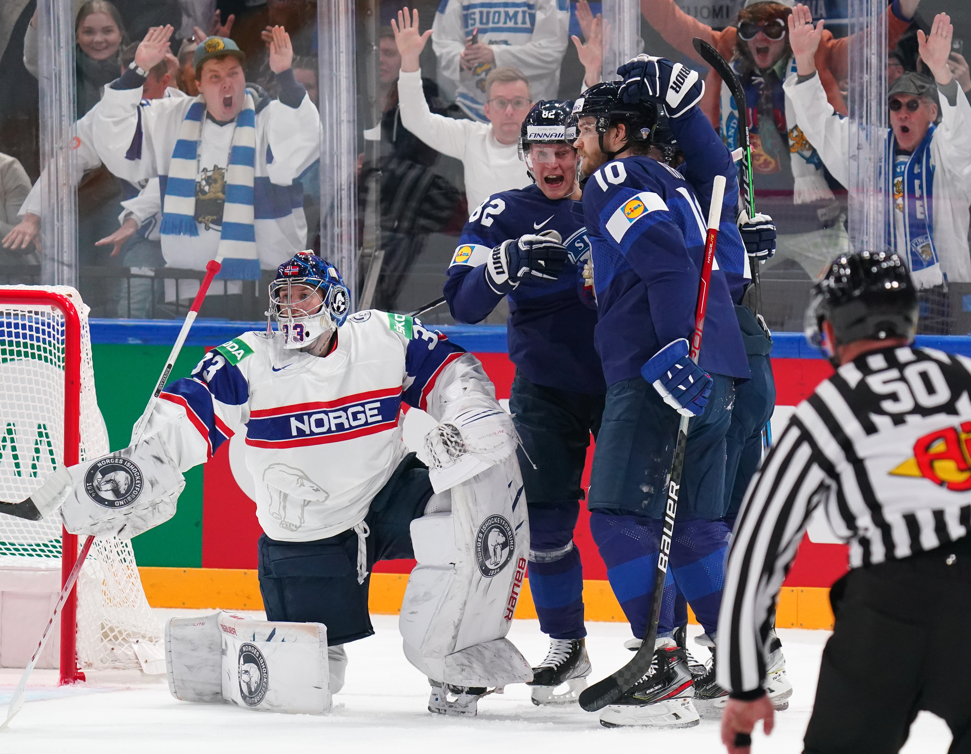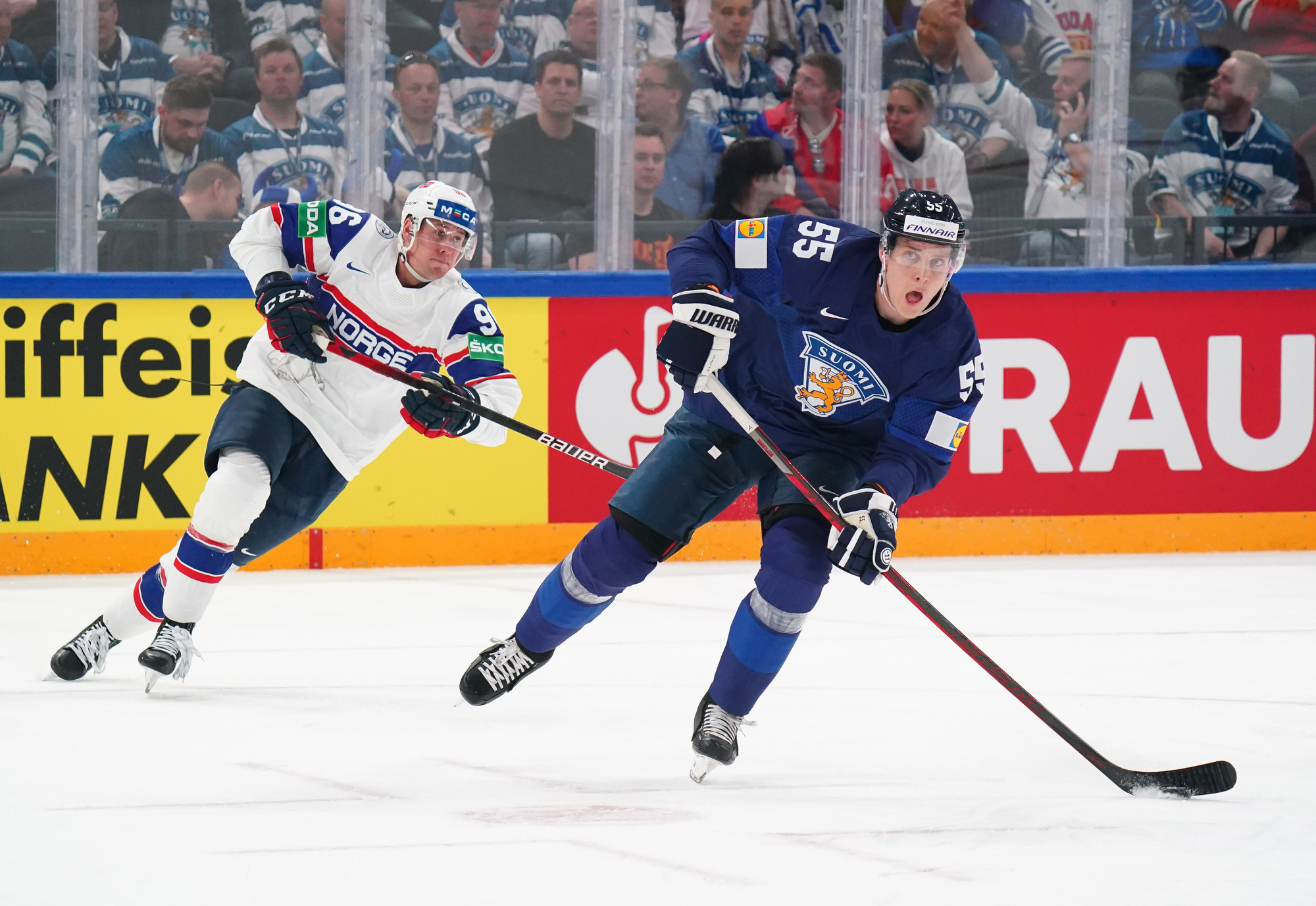 Roused by a rocking rendition of Finland’s national anthem, the 11,413 fans in the Tampere crowd were ready to roll. Impressive coordination among the fans saw much of the lower bowl uniformly dressed in Finland 2022 commemorative jerseys; white-fronted with blue shoulders, they produced a strikingly frothy effect when the wave swirled around the arena.
