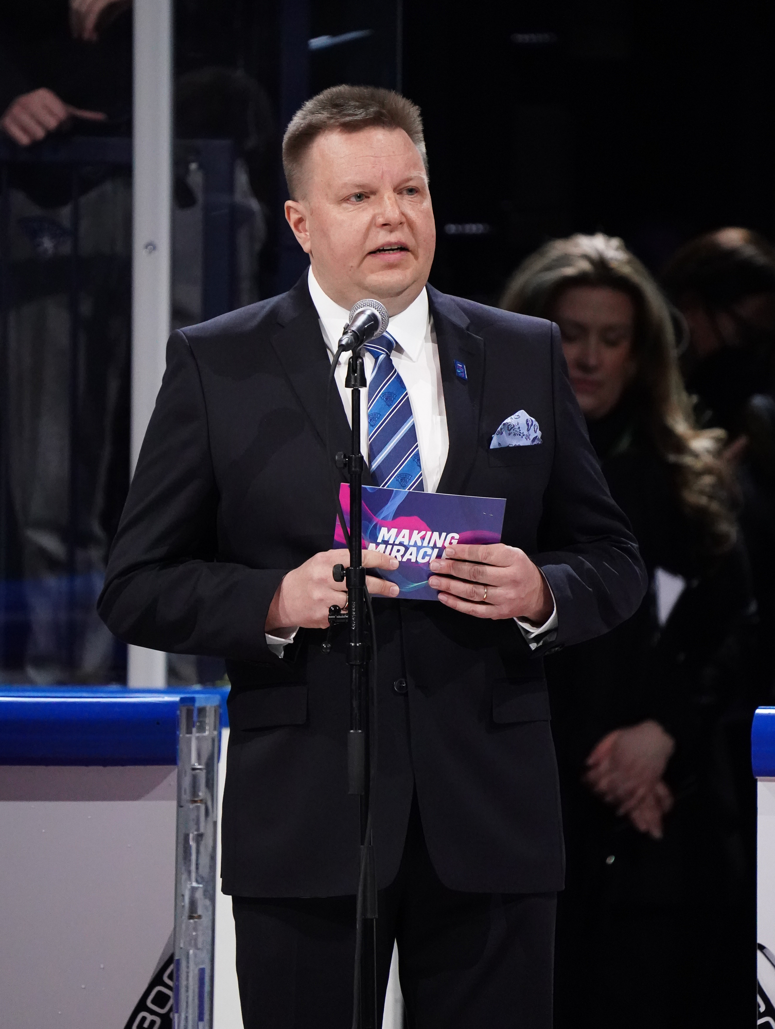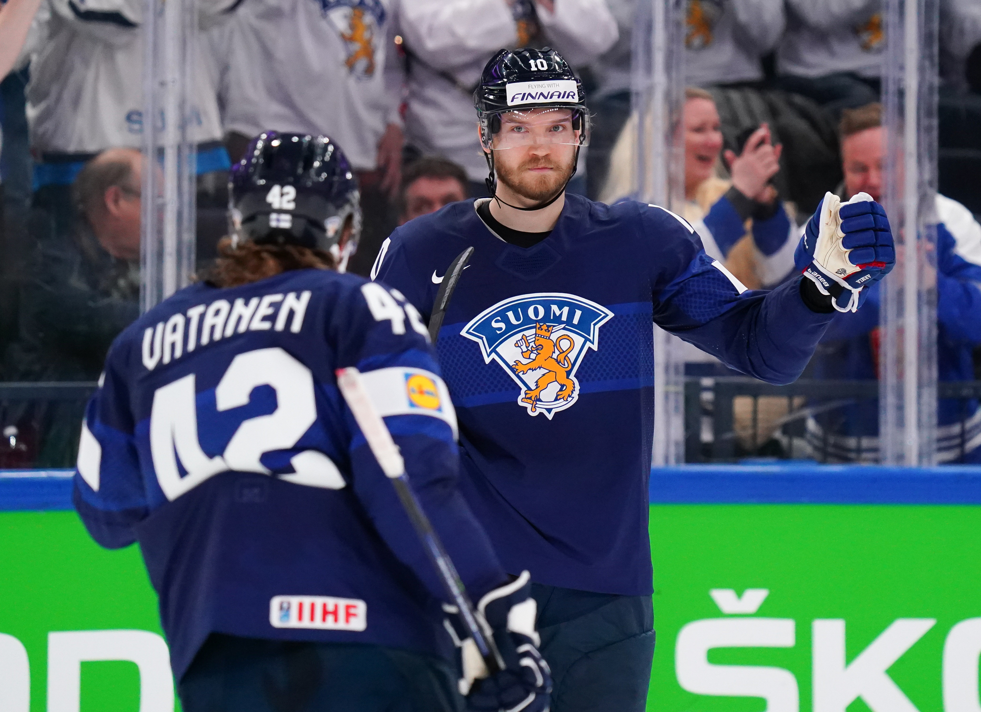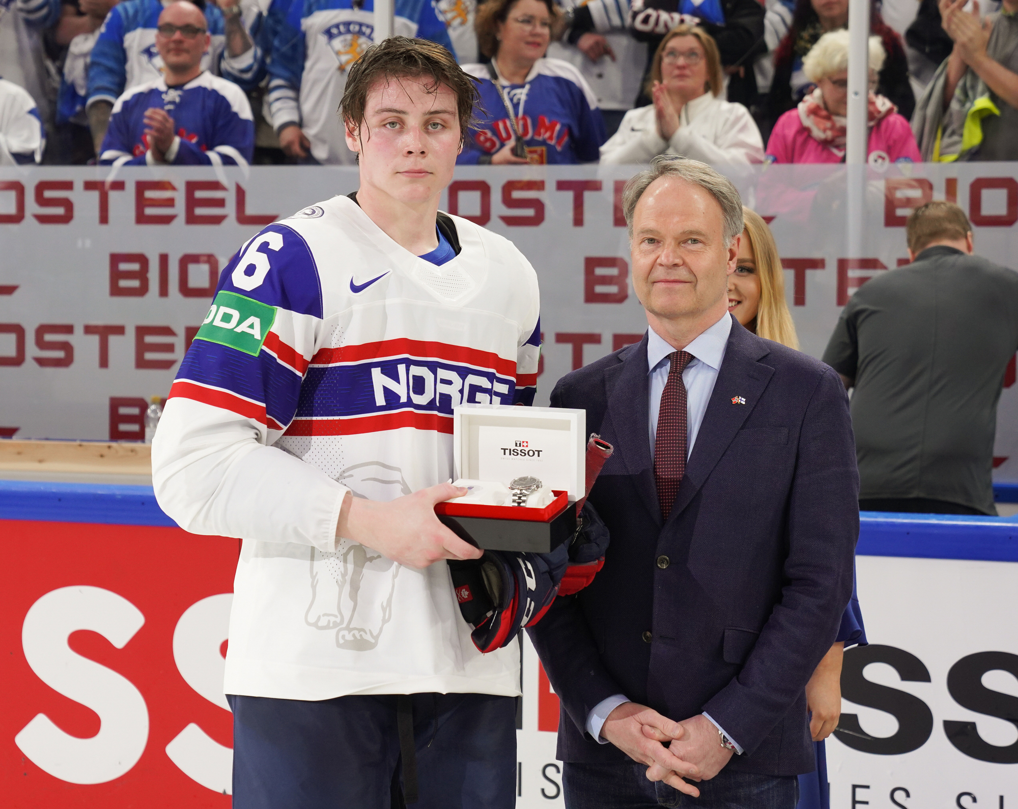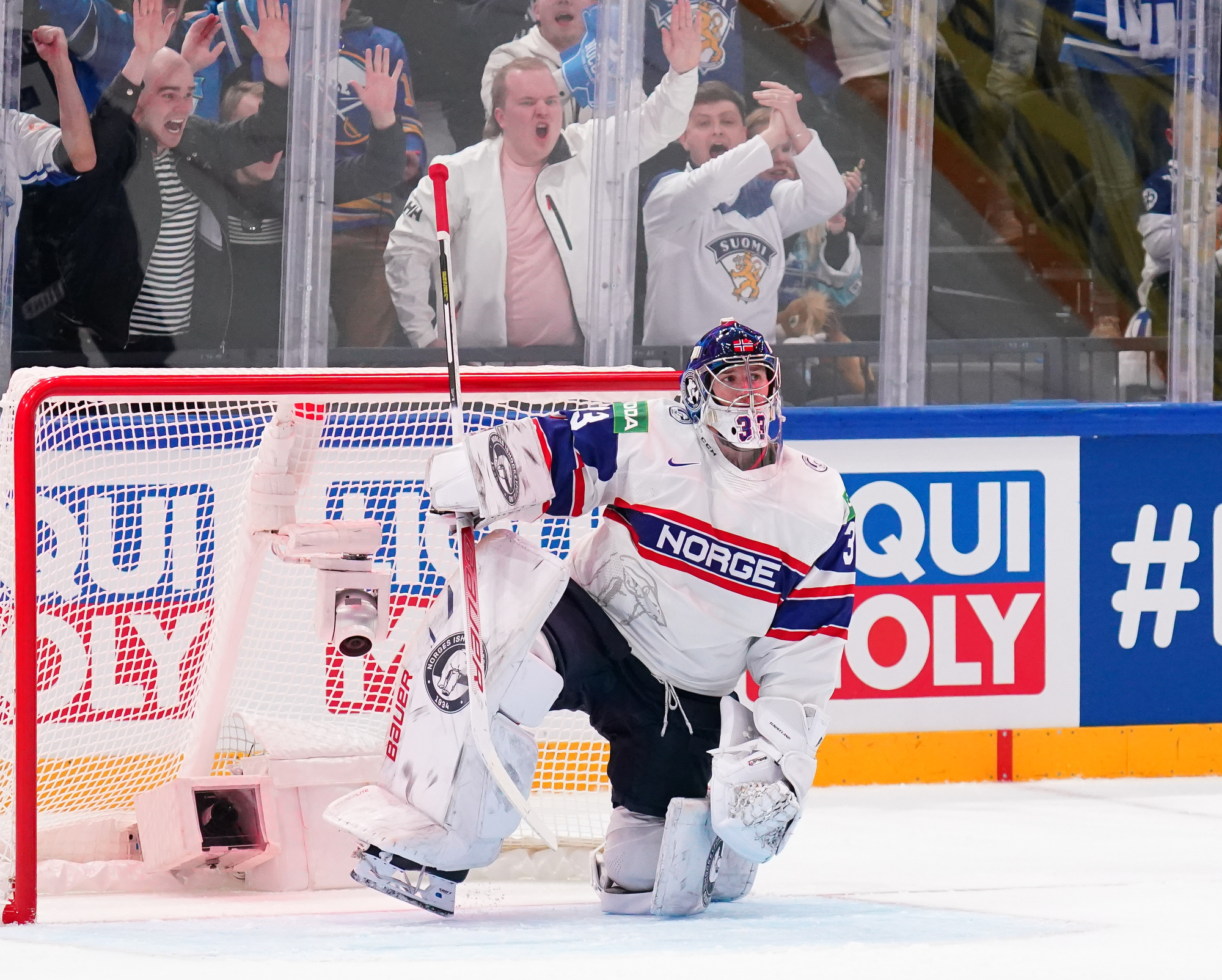 Roused by a rocking rendition of Finland’s national anthem, the 11,413 fans in the Tampere crowd were ready to roll. Impressive coordination among the fans saw much of the lower bowl uniformly dressed in Finland 2022 commemorative jerseys; white-fronted with blue shoulders, they produced a strikingly frothy effect when the wave swirled around the arena.