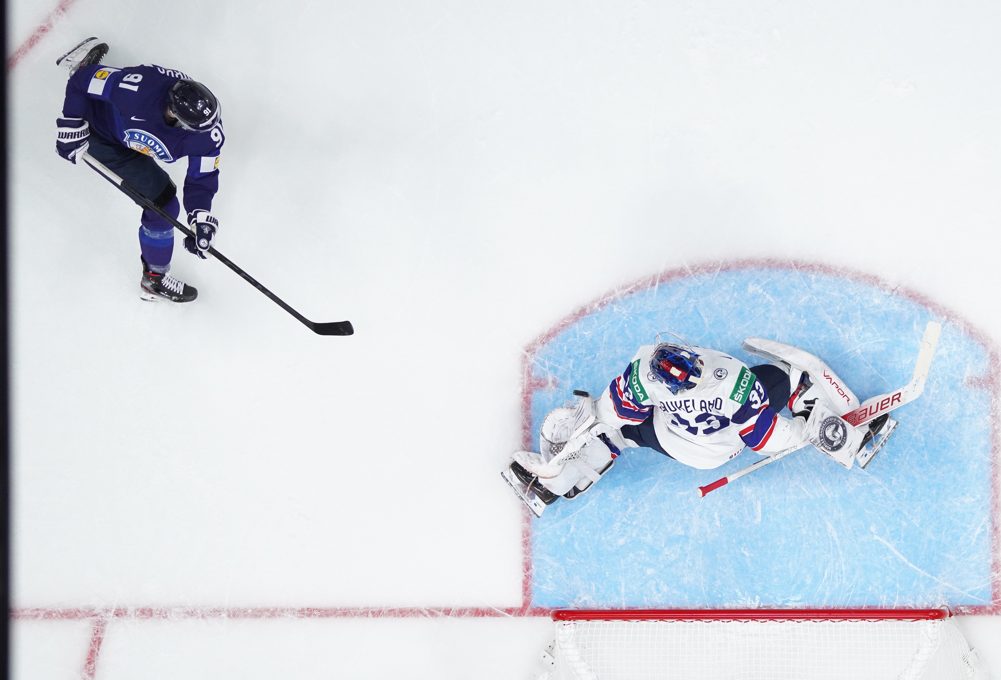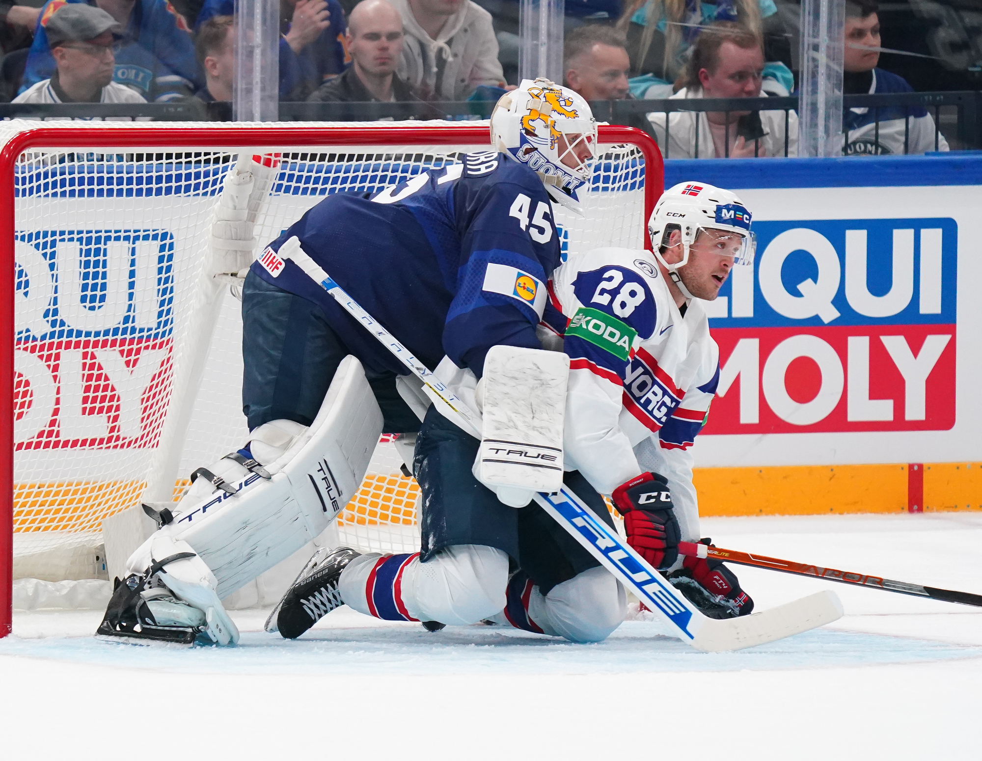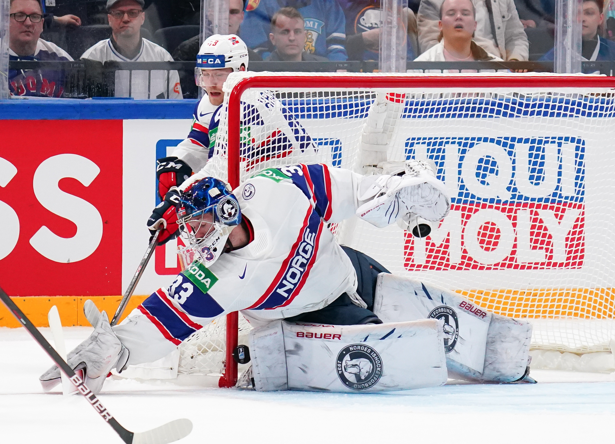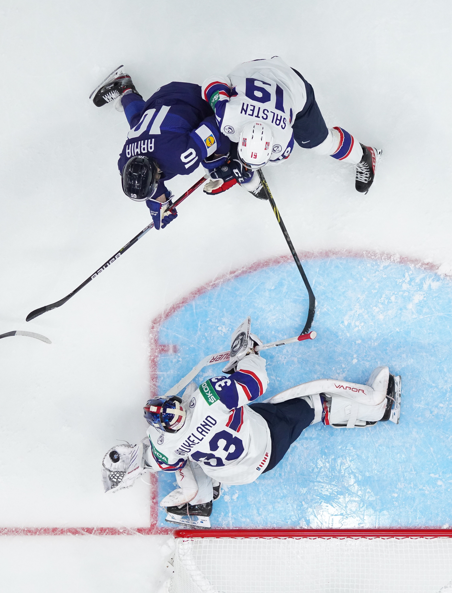 That wasn’t the end of the action: Olkinuora had to look sharp to preserve his shut-out with a sprawling save from Mathias Trettenes, then Magnus Brekke traded blows with Saku Maenalanen. The Norwegian was deemed the instigator but this time the penalty kill held firm.