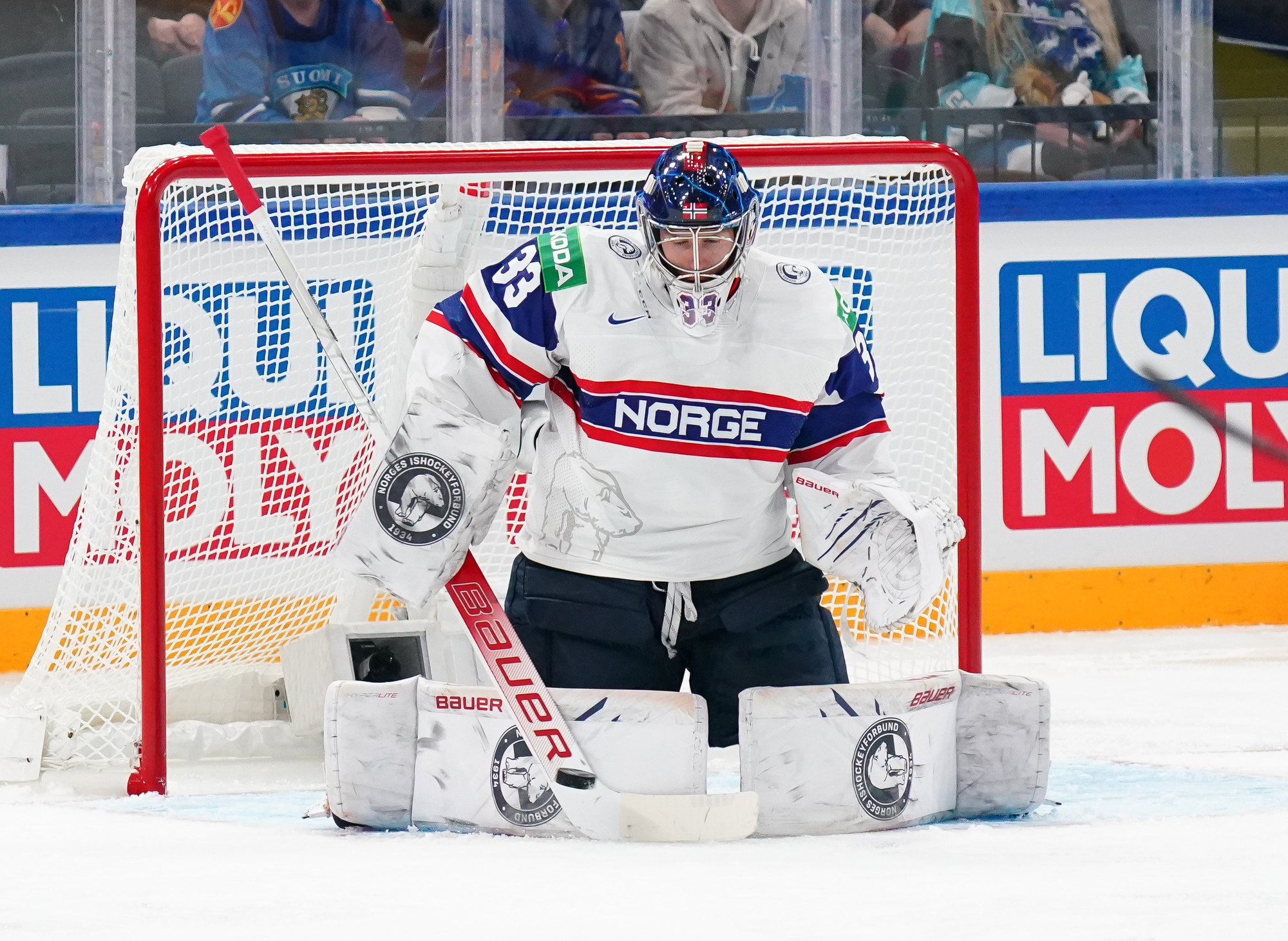 Early in the second period, the Leijonat got the first power play of the game and Manninen came close to doubling the lead with a shot that whizzed a millimetre wide of Haukeland’s post. However, Norway continued to put up some determined defence and an offensive zone penalty on Armia for holding underlined Finnish frustration with a dogged opponent. The power play chance saw Klavestad rip in a shot from the left-hand dot that Olkinuora had to turn away from danger.