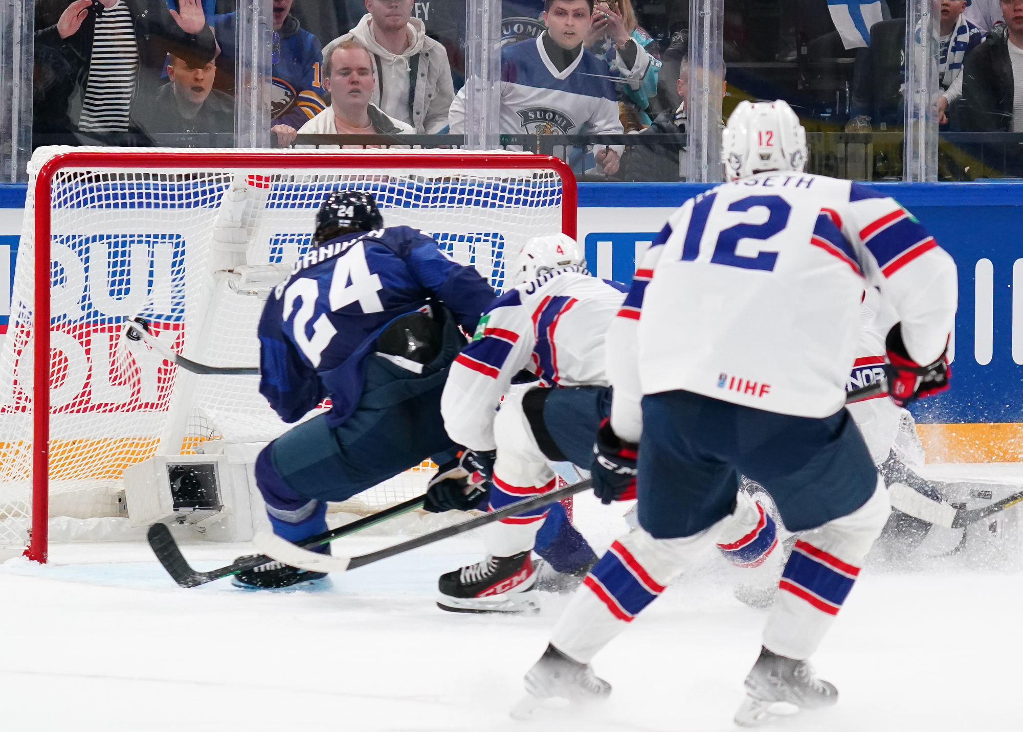 Hannes Bjorninen scores the 3-0 goal for Finland.