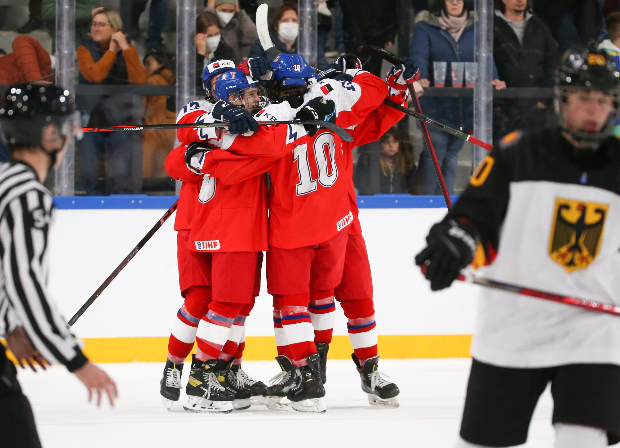 “It was the first game of the tournament with a big crowd and the Germans played physically and got an outstanding performance from their goalie,” said Czech coach Jakub Petr. “But we just had to be patient and believe in ourselves and I’m proud of the boys because they kept going and eventually we won.”
