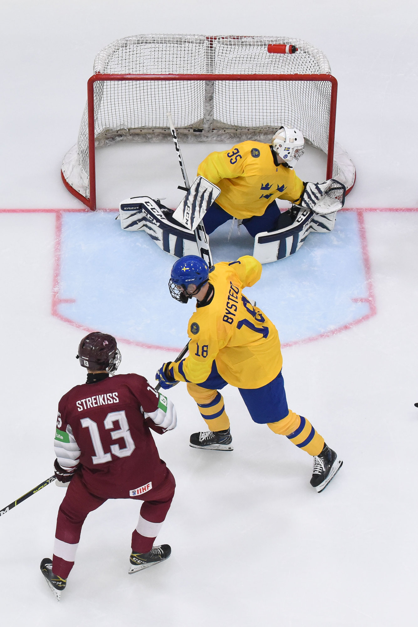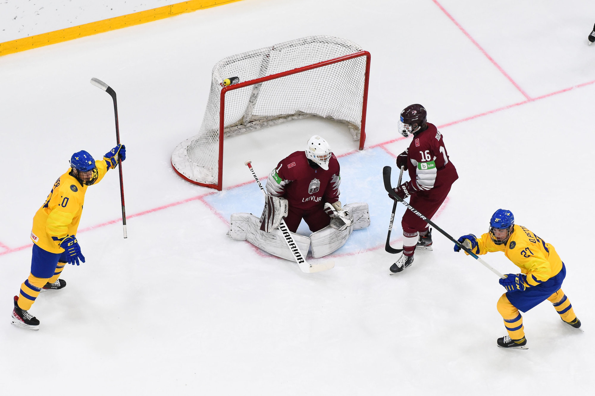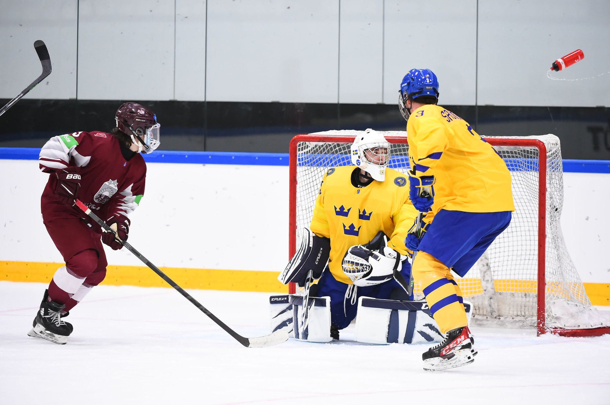 Noah Ostlund and Filip Bystedt replied for Sweden, which outshot Latvia 25-21.