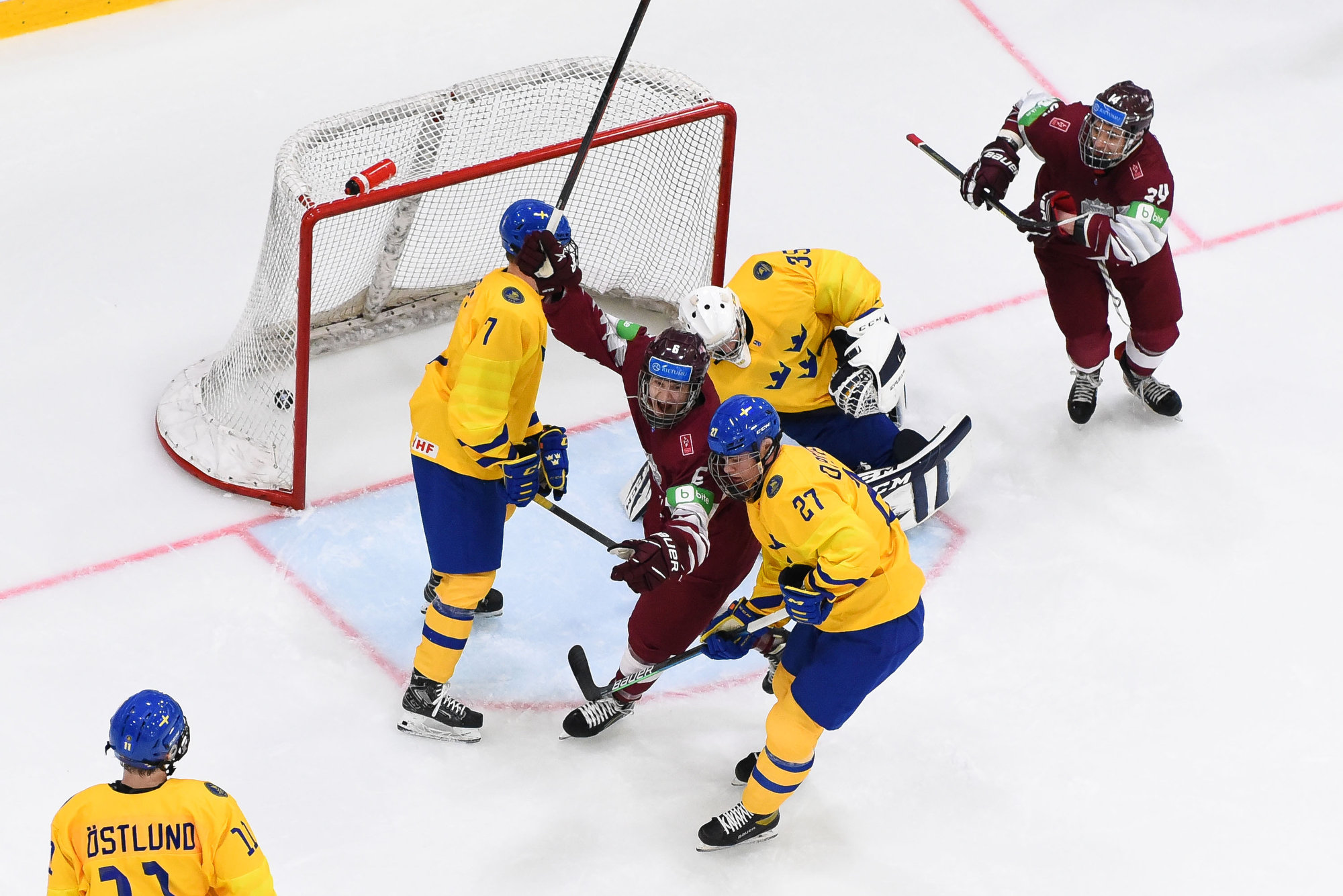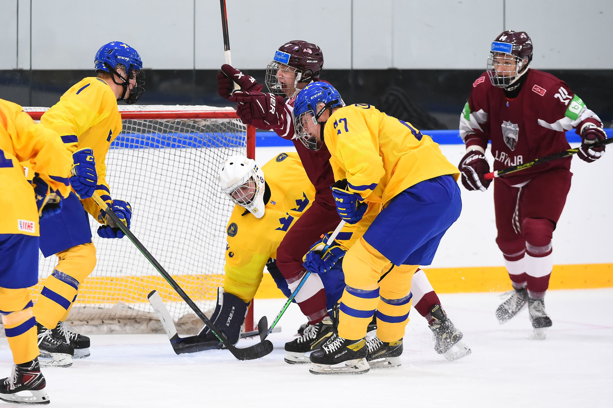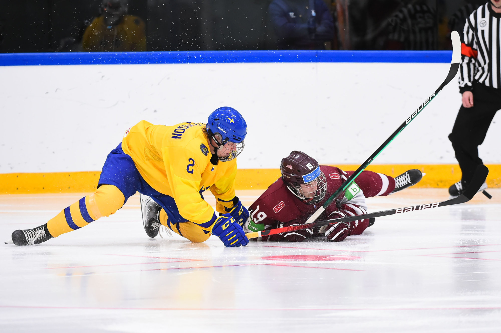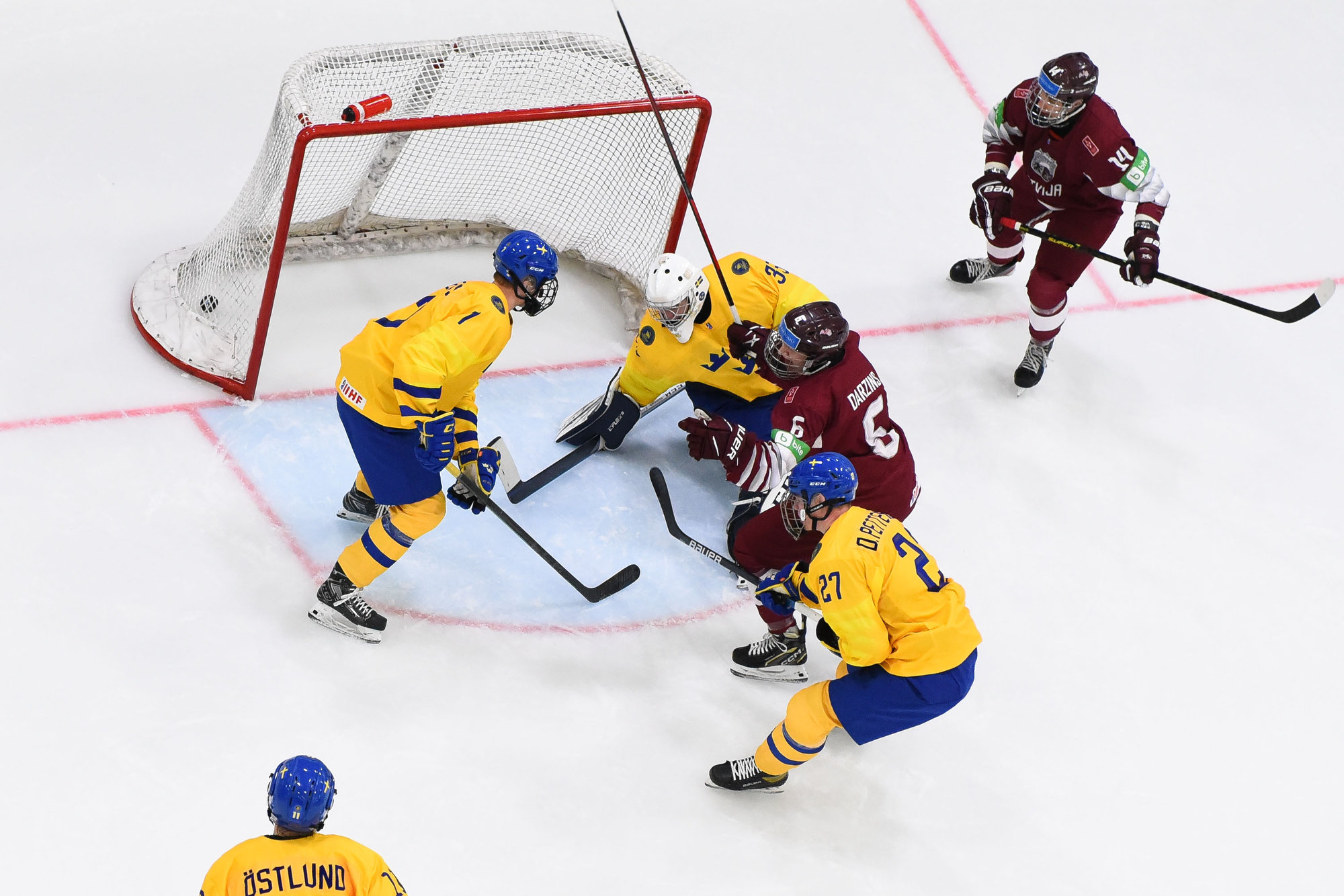 Noah Ostlund and Filip Bystedt replied for Sweden, which outshot Latvia 25-21.