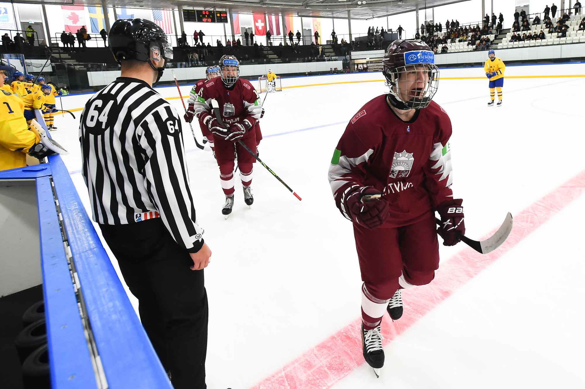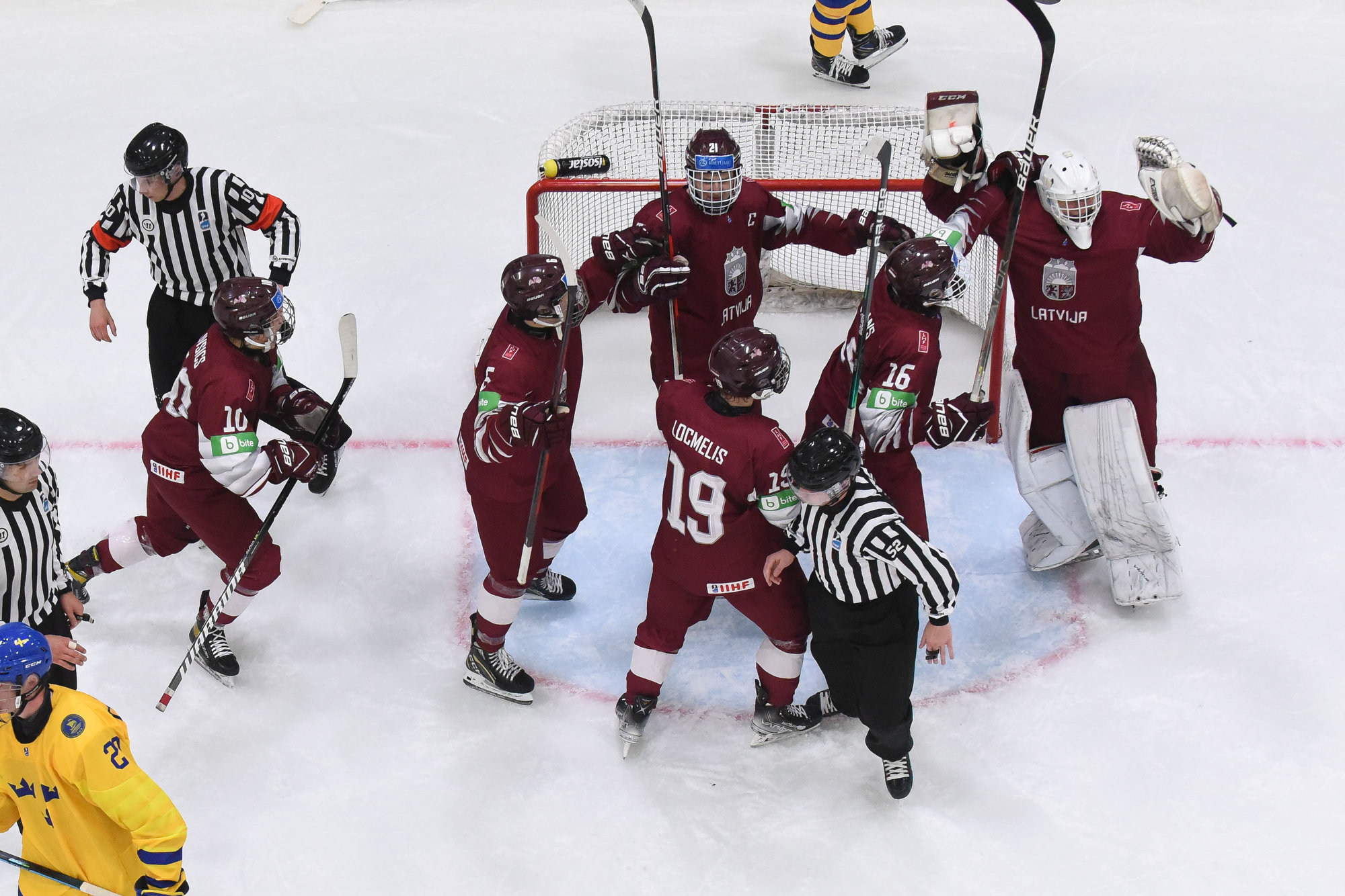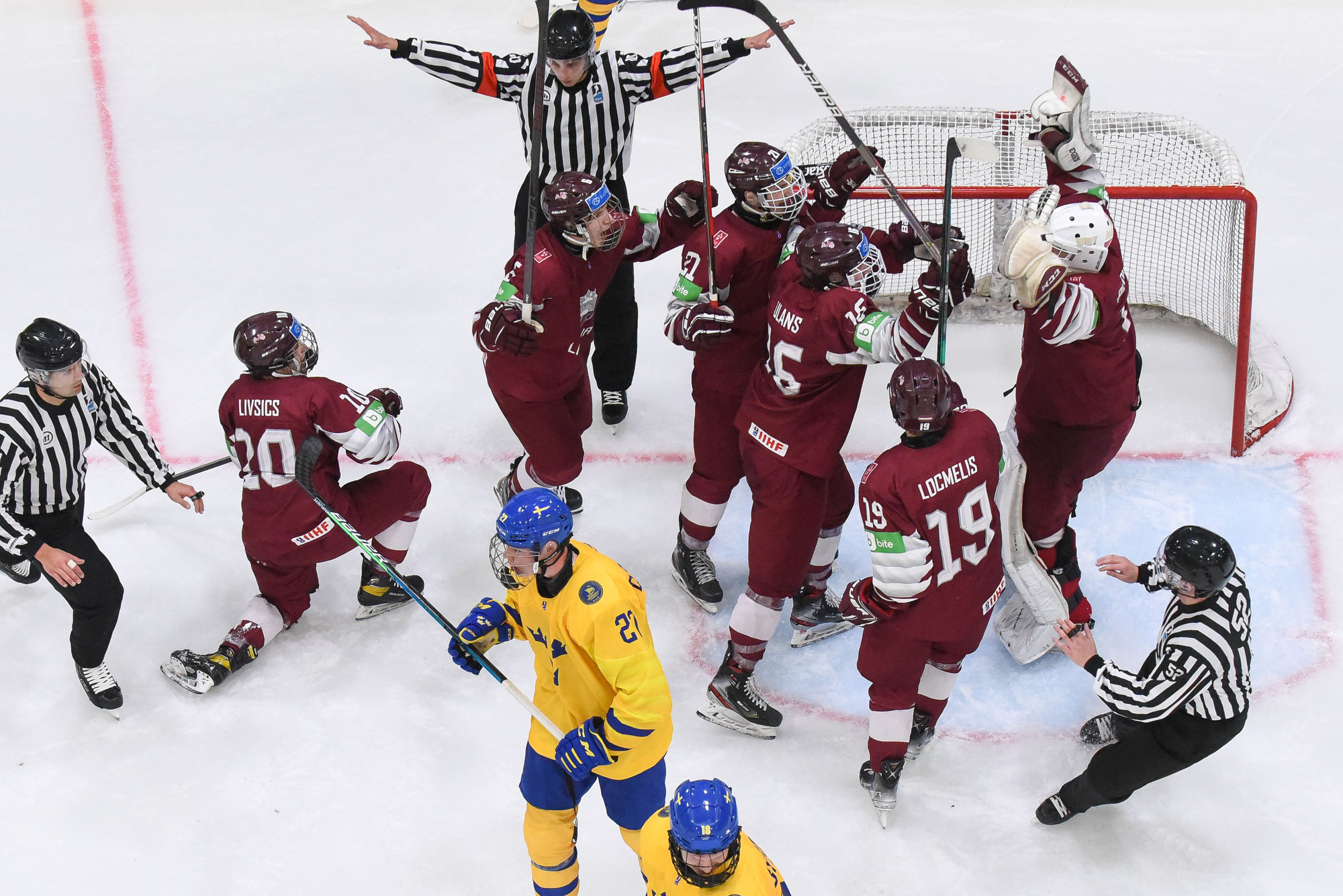 Latvia pulled off the first upset of the 2022 IIHF Ice Hockey U18 World Championship on Saturday with a 3-2 opening win over Sweden in Kaufbeuren, Germany.