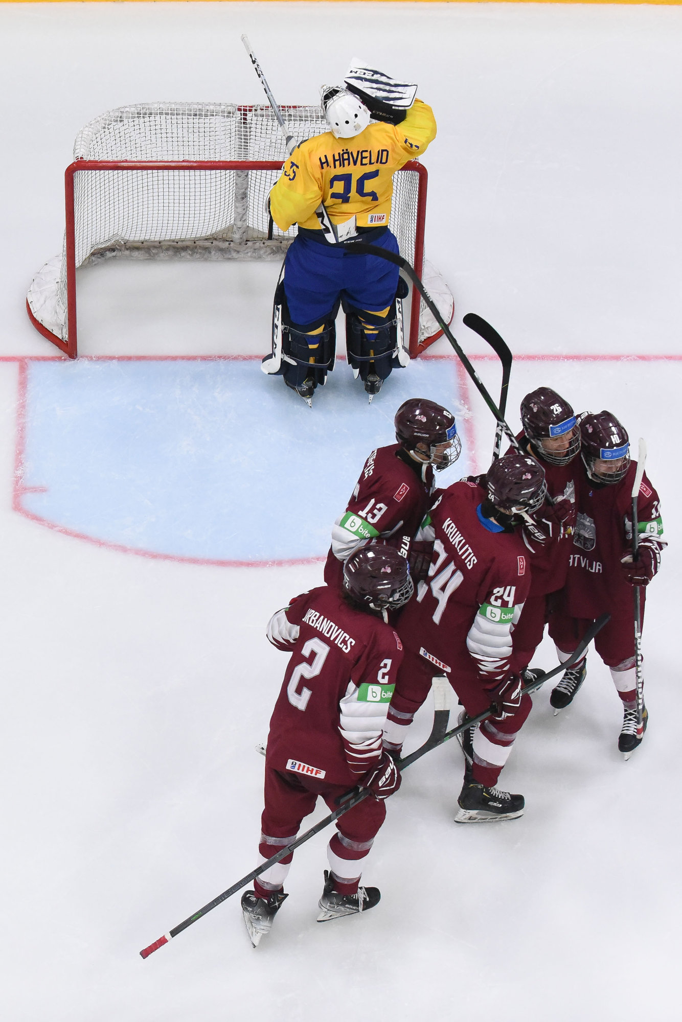Hugo Havelid was pulled for the extra attacker with 1:32 left. The Latvians ran out the clock with multiple icing calls and celebrated joyously at the final buzzer.