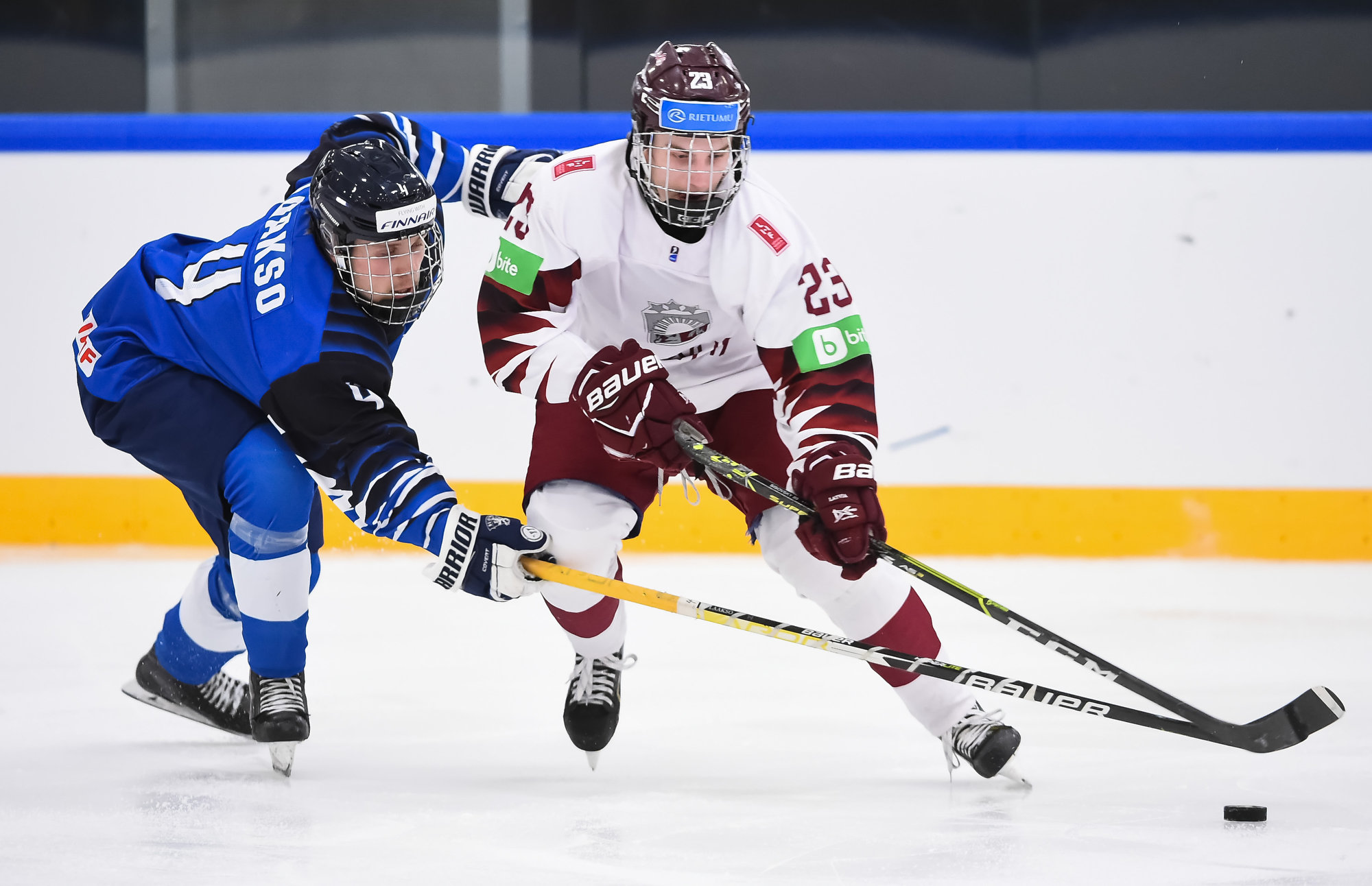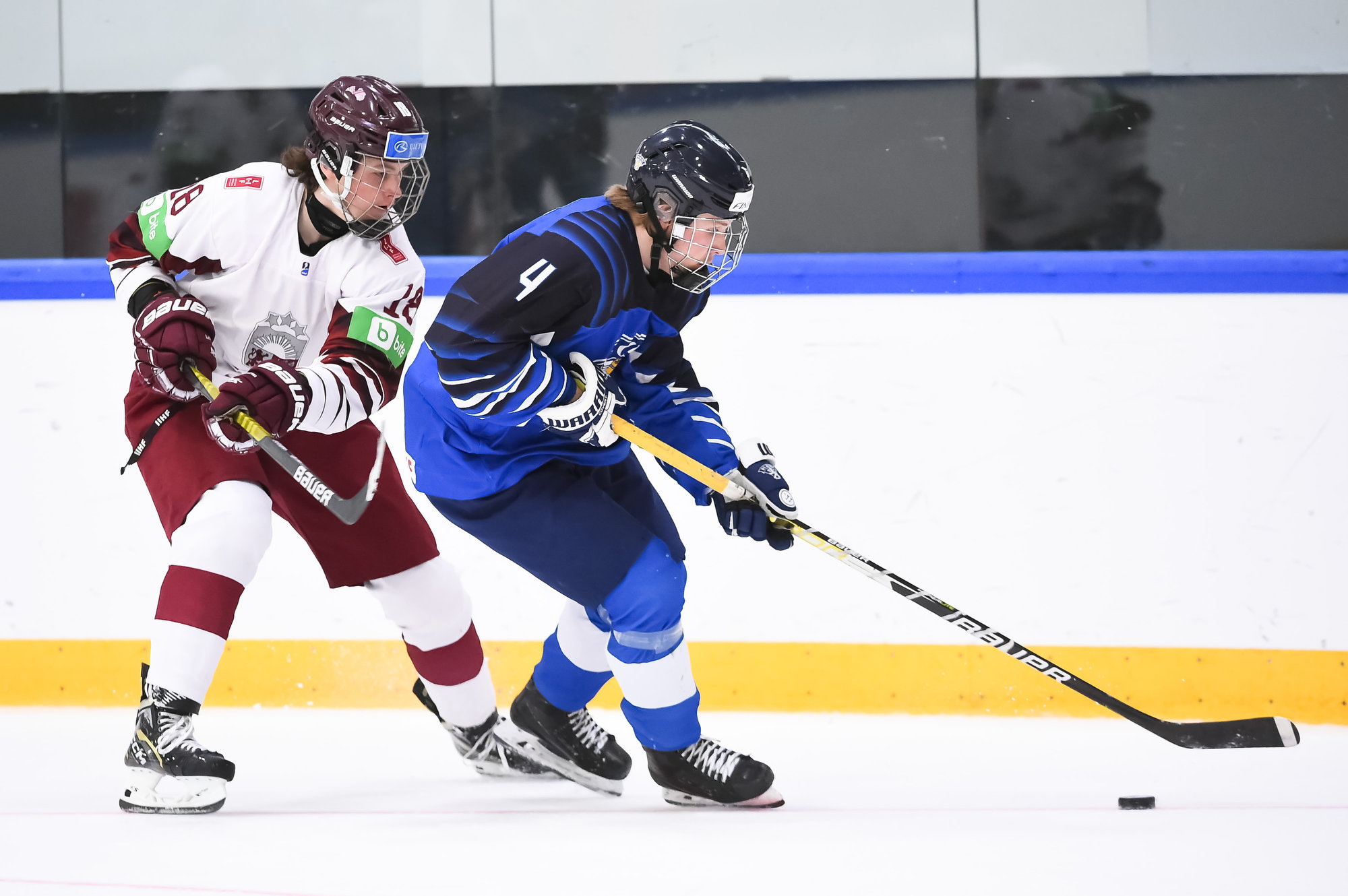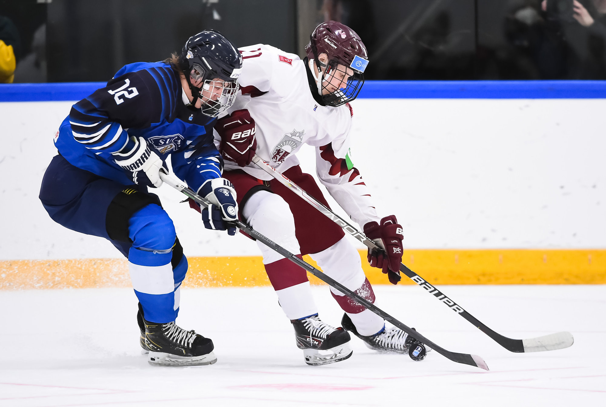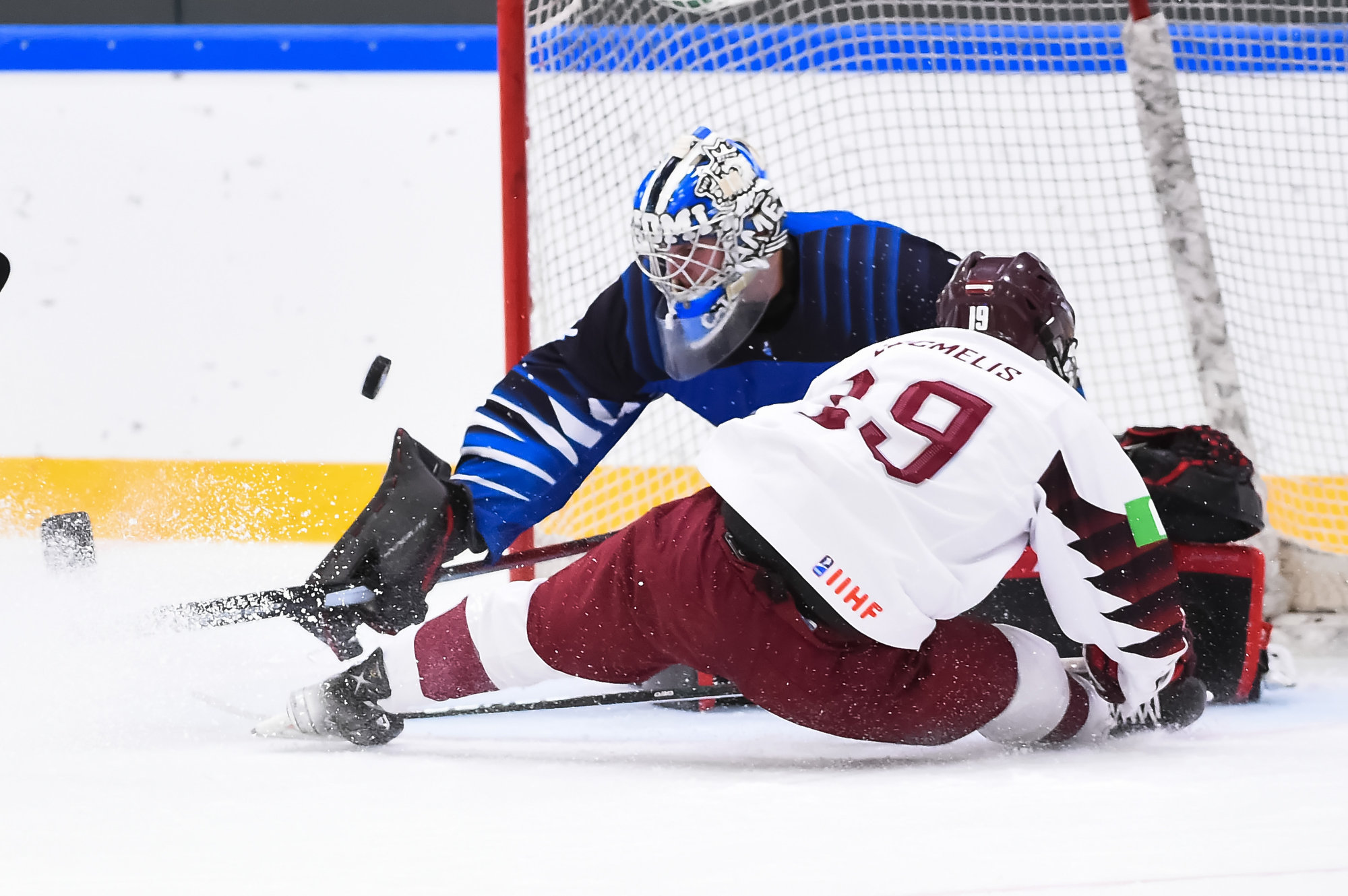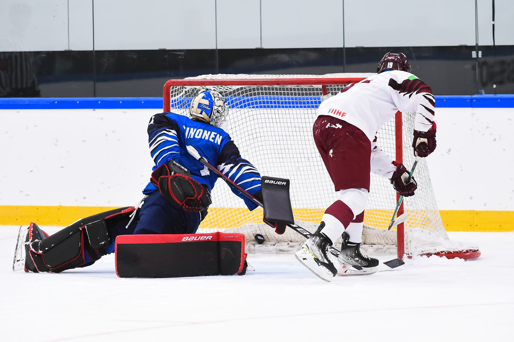 Although Suomi held the edge in play during the first period, each team scored once. The Finns had the first great chance midway through the period when defender Niko Minkkinen fed captain Jere Lassila with a stretch pass that turned into a breakaway. Lassila made a nice move, but goalie Deivs Rolovs got his left pad out to make a terrific save.