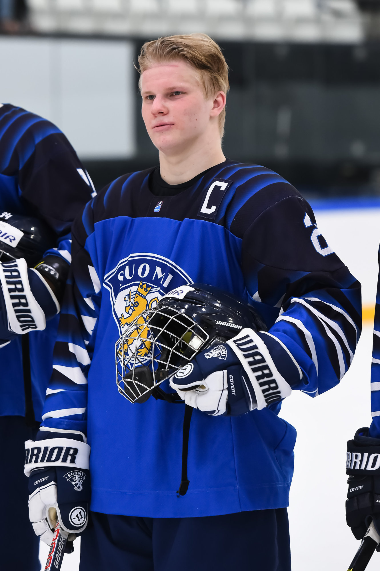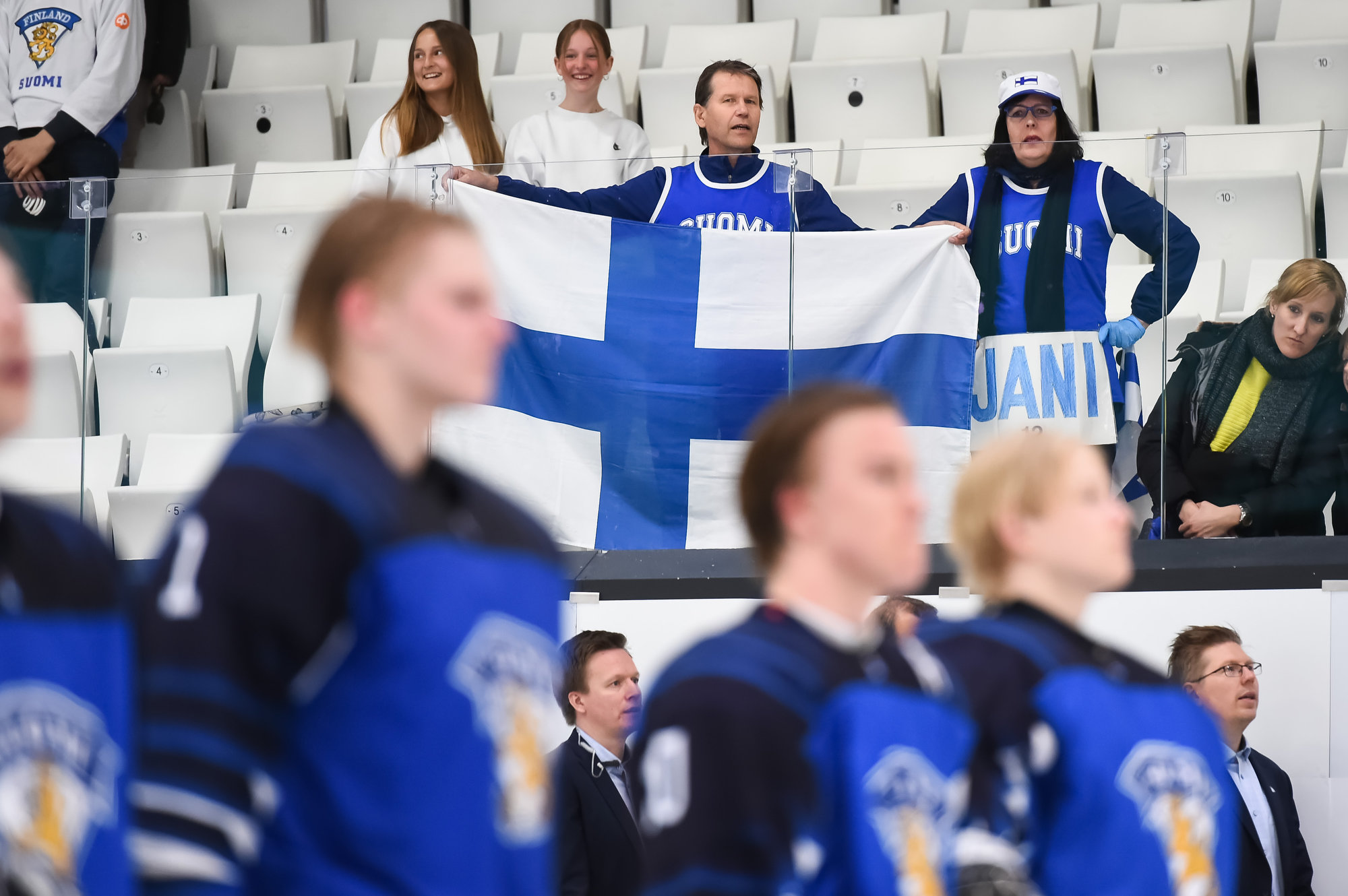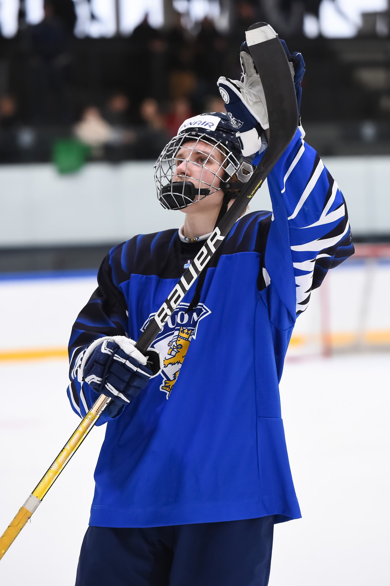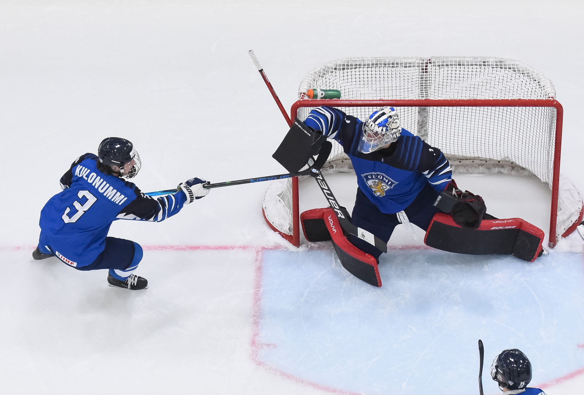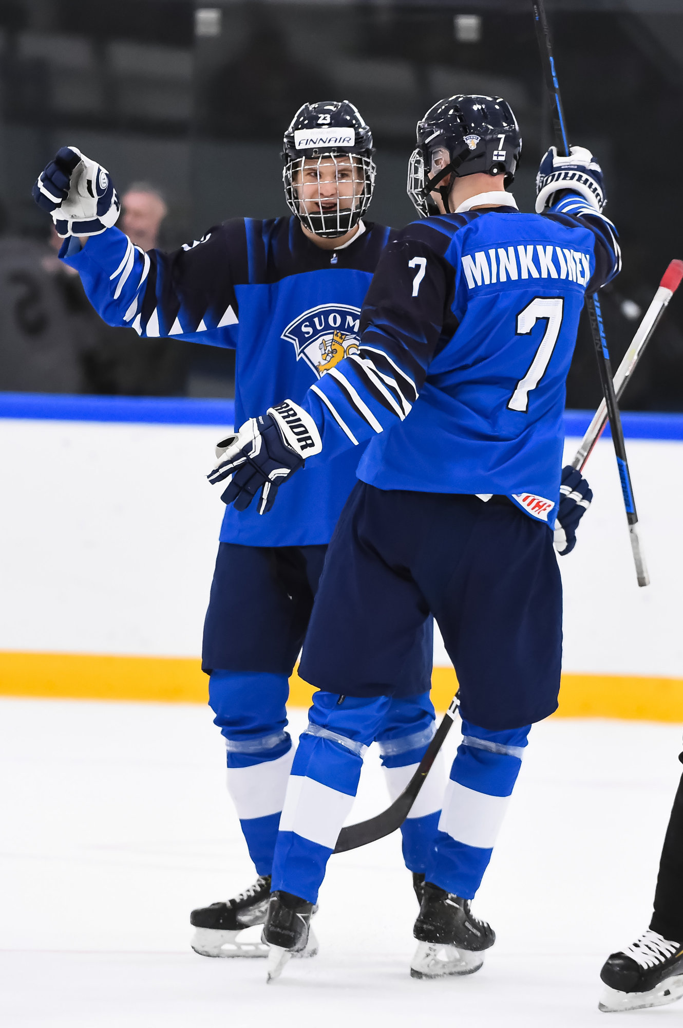 Although Suomi held the edge in play during the first period, each team scored once. The Finns had the first great chance midway through the period when defender Niko Minkkinen fed captain Jere Lassila with a stretch pass that turned into a breakaway. Lassila made a nice move, but goalie Deivs Rolovs got his left pad out to make a terrific save.