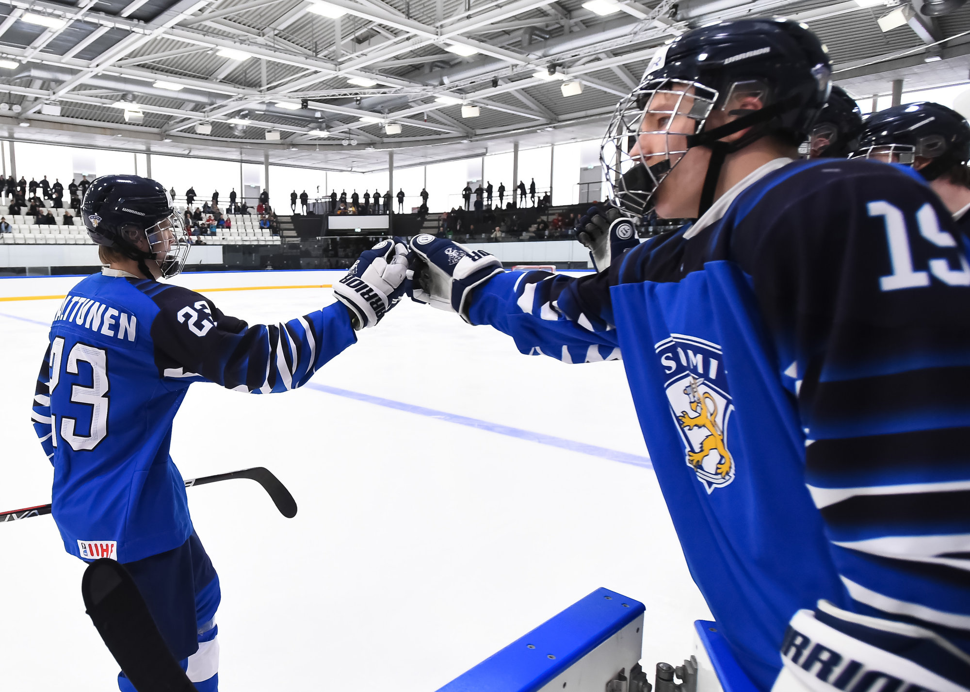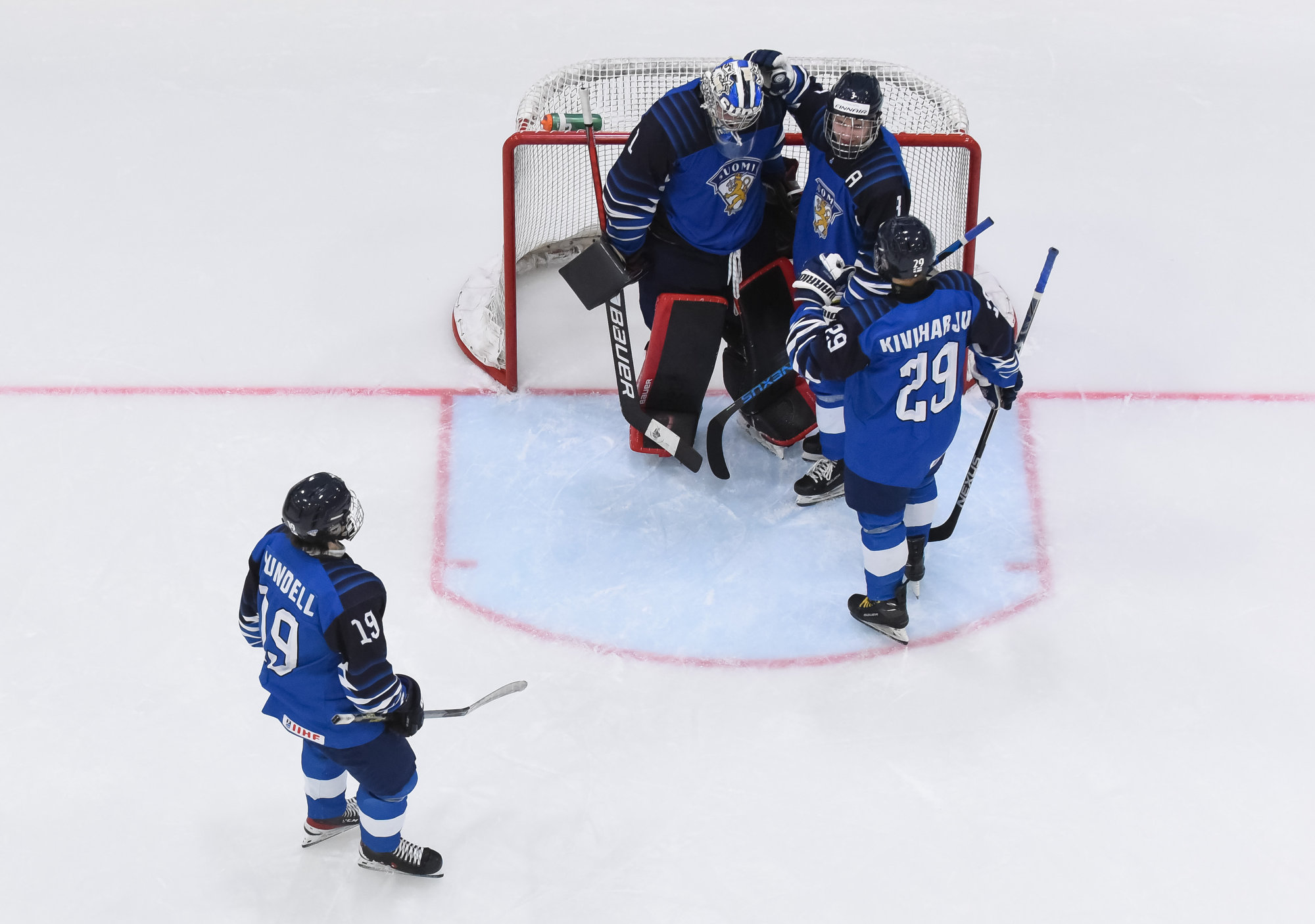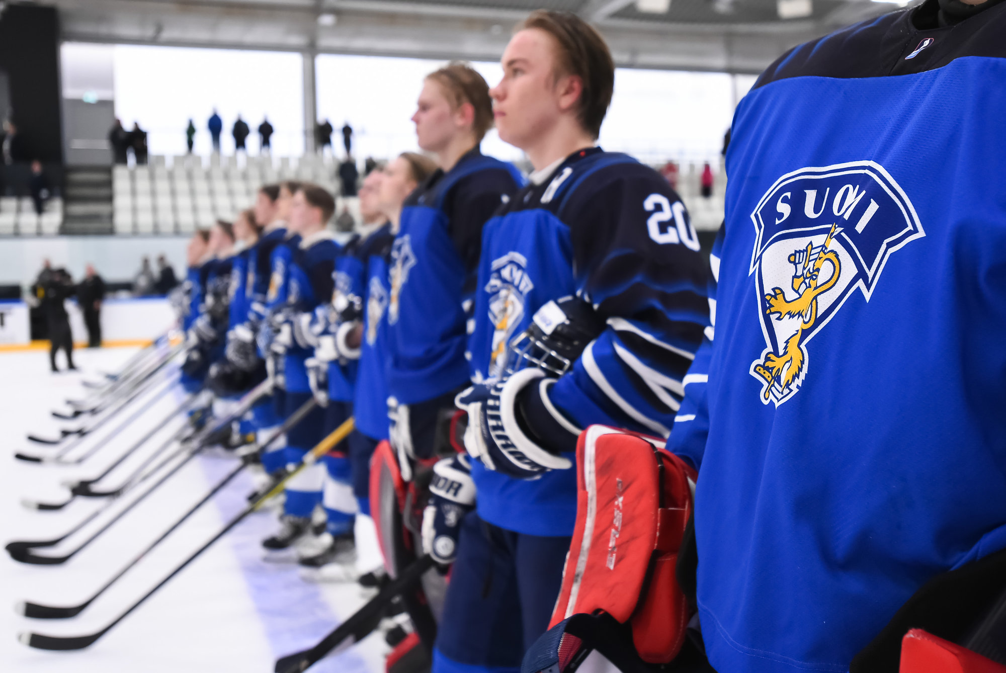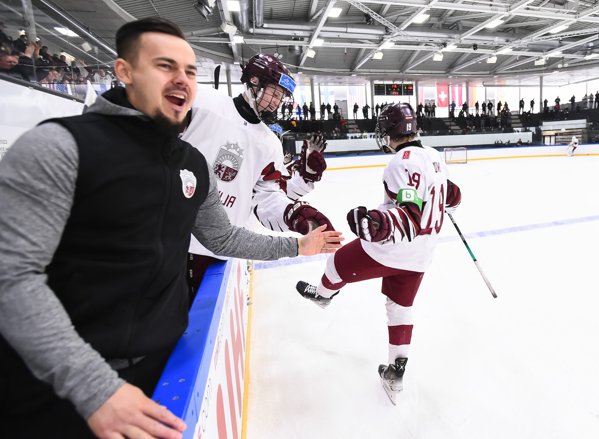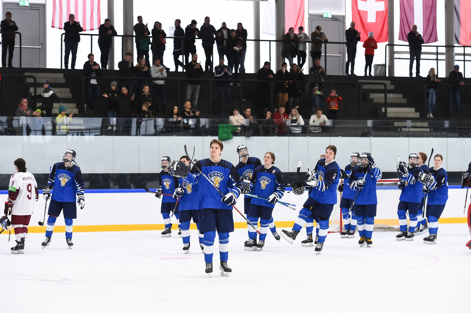 Although Suomi held the edge in play during the first period, each team scored once. The Finns had the first great chance midway through the period when defender Niko Minkkinen fed captain Jere Lassila with a stretch pass that turned into a breakaway. Lassila made a nice move, but goalie Deivs Rolovs got his left pad out to make a terrific save.