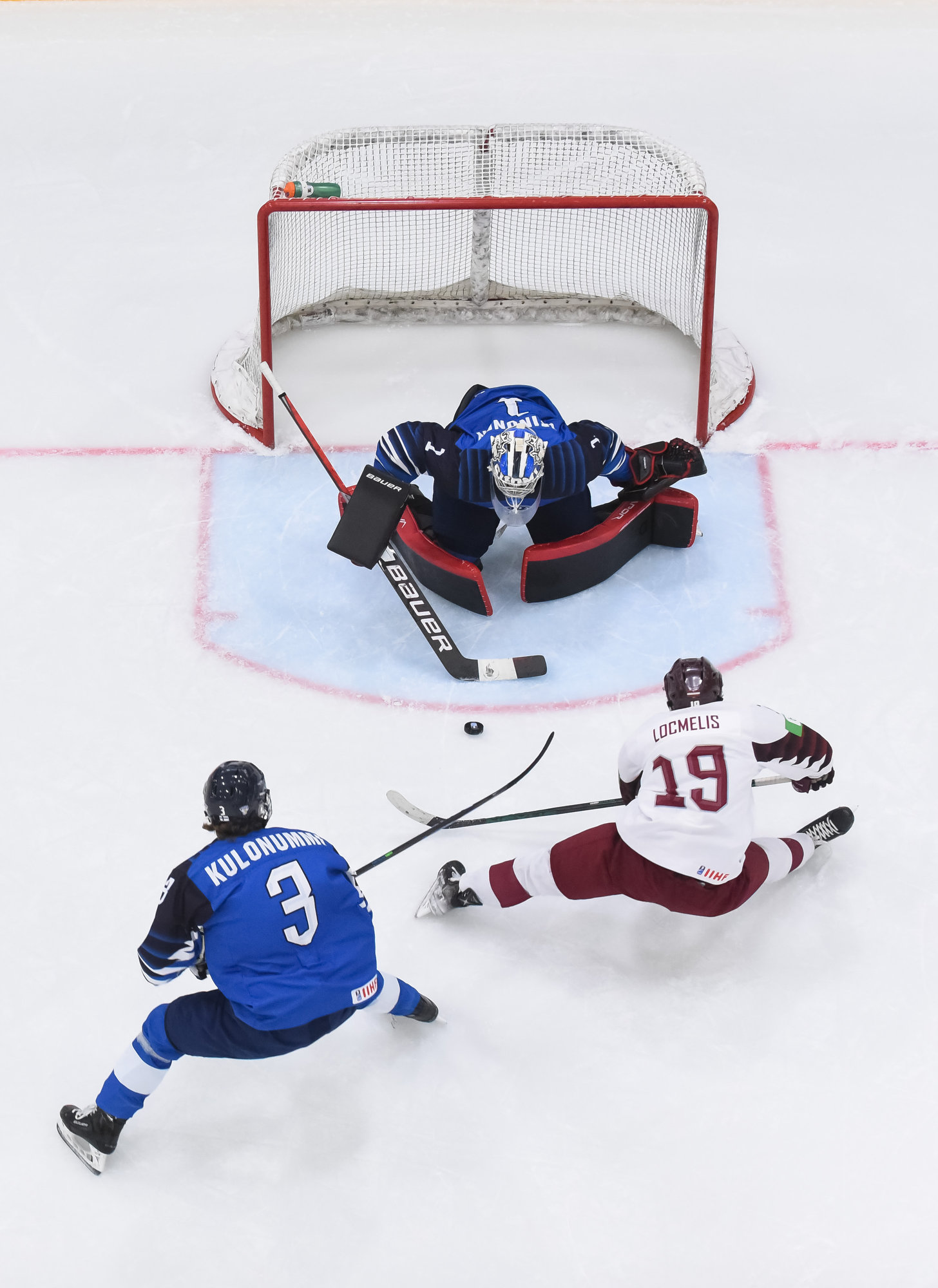 The Latvians had a chance to work into the Finnish lead with an early power play in the third, but the Finns played flawless defence and soon after added to their tally. Feldbergs couldn't control an easy point shot from Minkkinen, and Halttunen swept the rebound into the goal to make it 4-1 at 4:35.