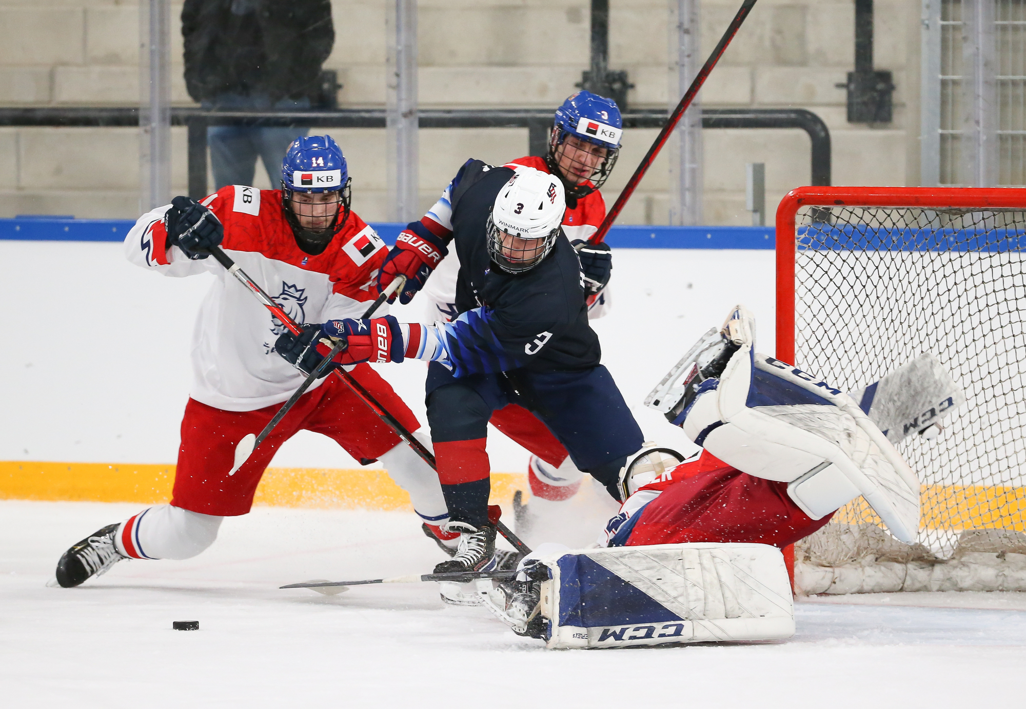 “We were a bit unlucky after the penalty shot,” said Czech coach Jakub Petr. “We had a great chance to score another goal, but overall I was impressed with the first period. When we played them a few months ago they beat us 10-1, and at this age group it’s about development, so I was really impressed today with how the boys adjusted to their opponent and stuck with the game plan.”