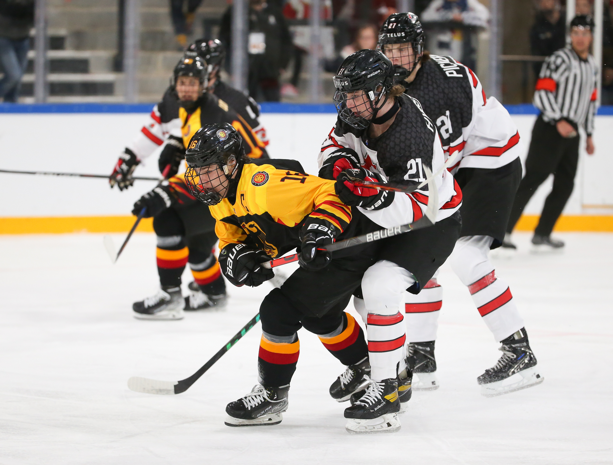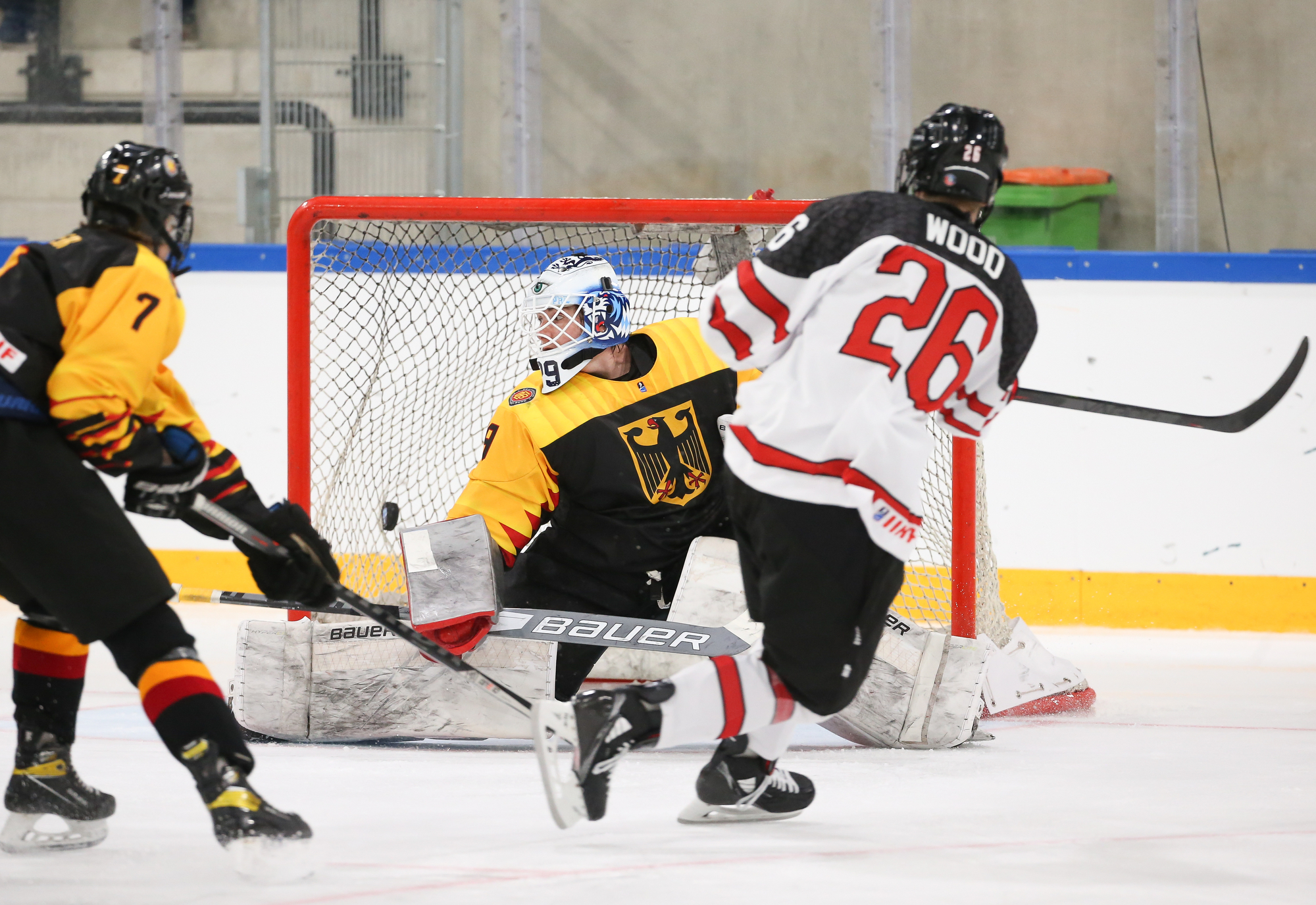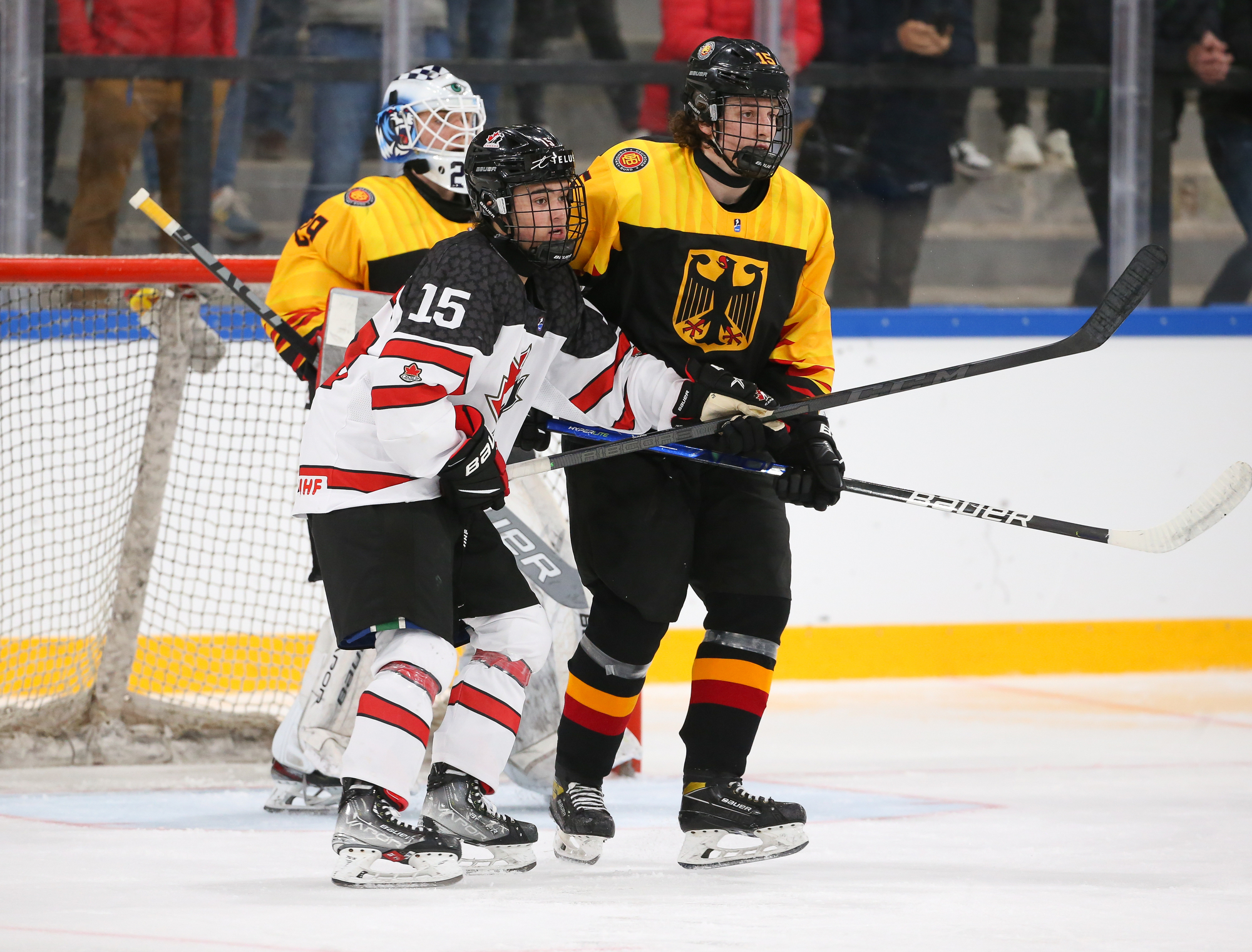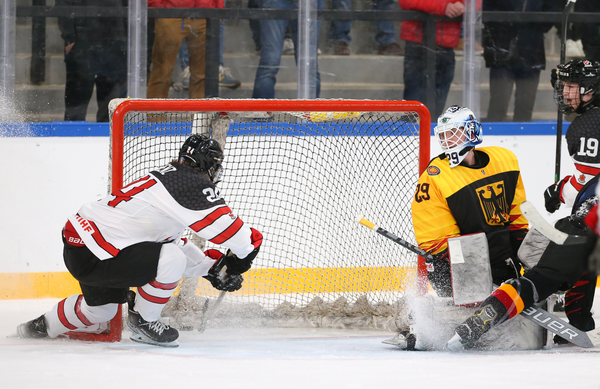 For the most part, however, play was in the German zone and Canada was able to strike twice in the eighth minute of play. In fact, it was the same line striking twice on the same shift.
