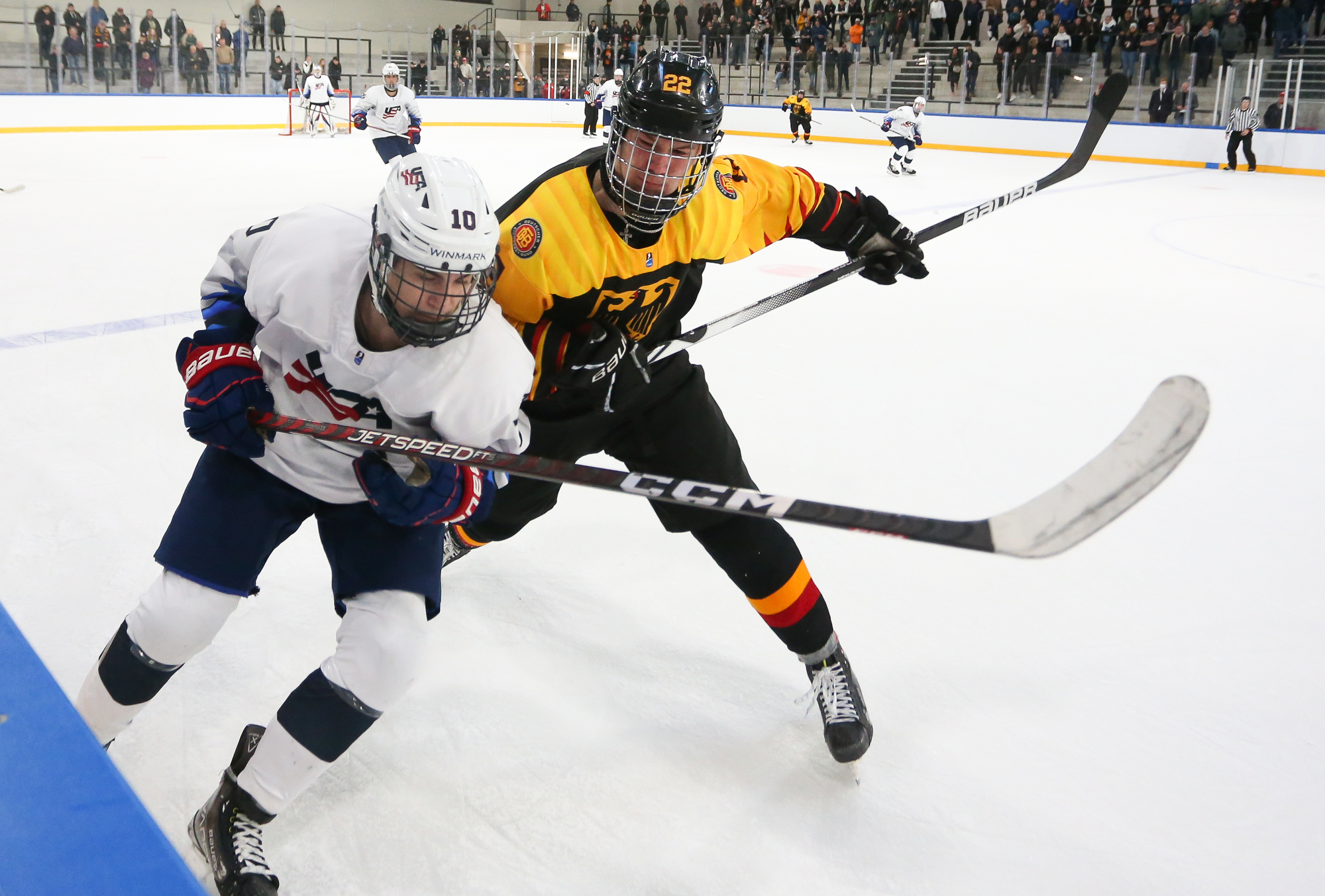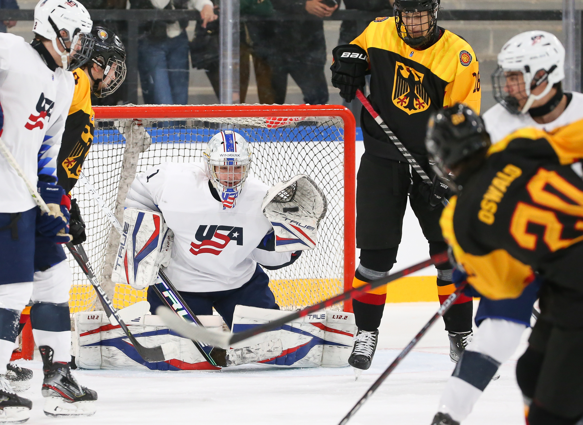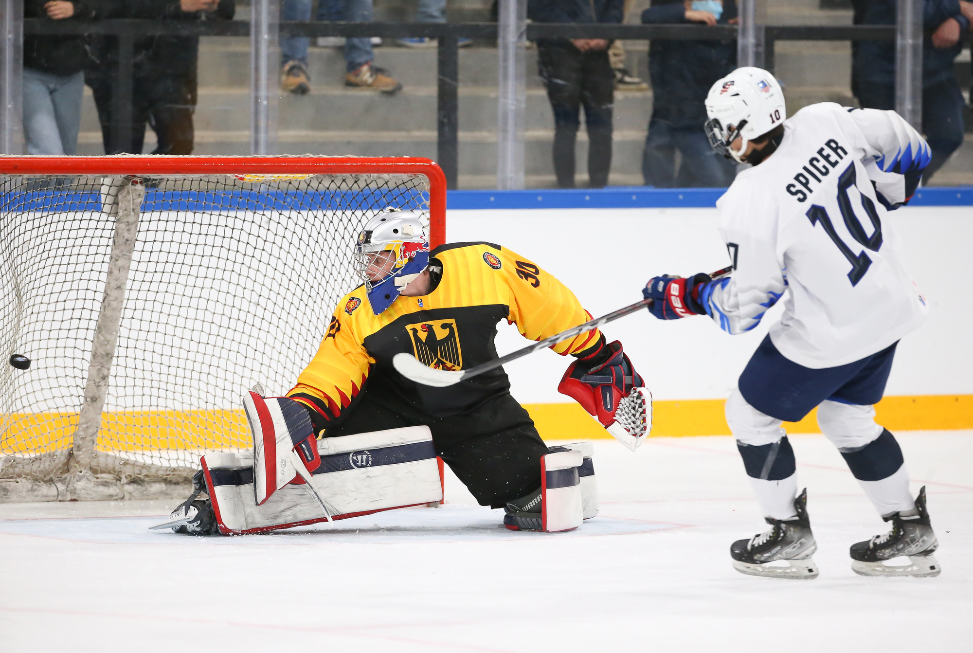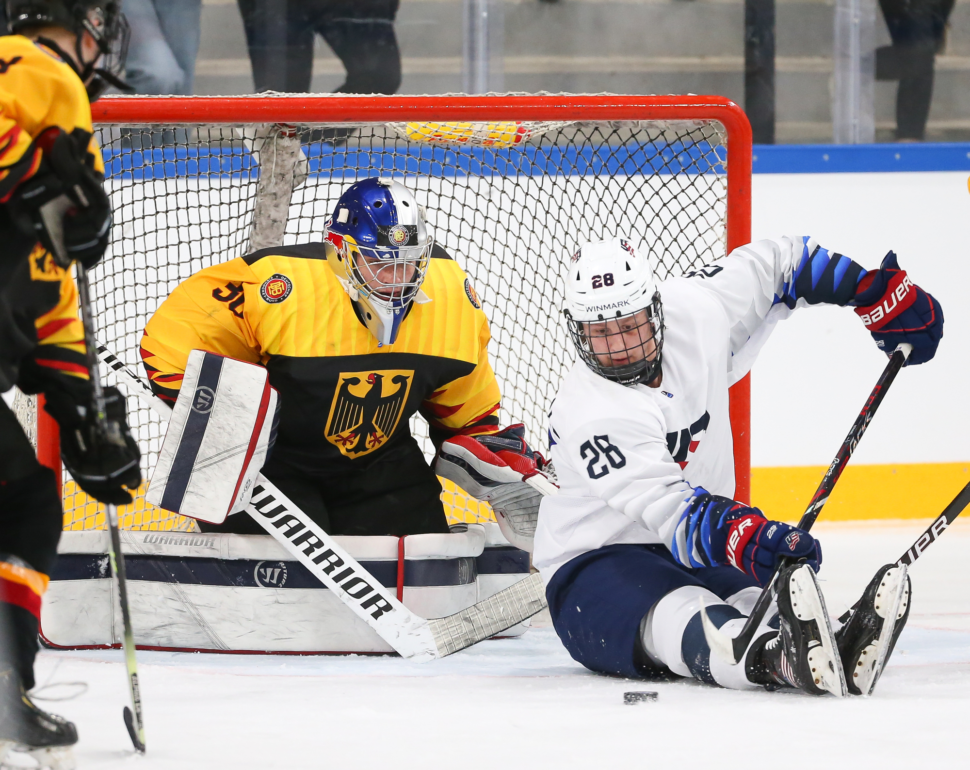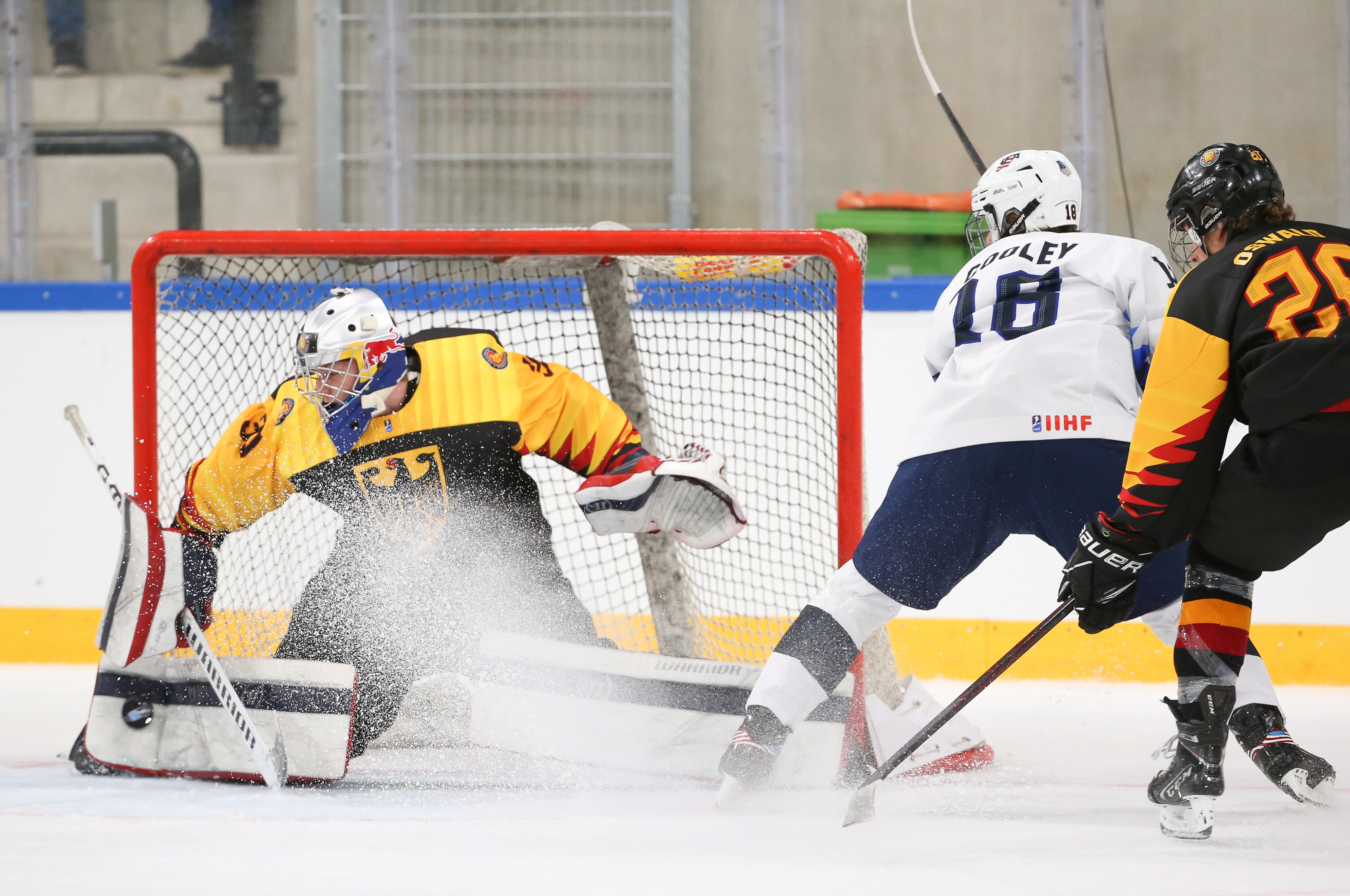 In the last game of Group A at the 2022 IIHF Ice Hockey U18 World Championship, USA defeated Germany 10-2 at Fanatec Arena in Landshut.