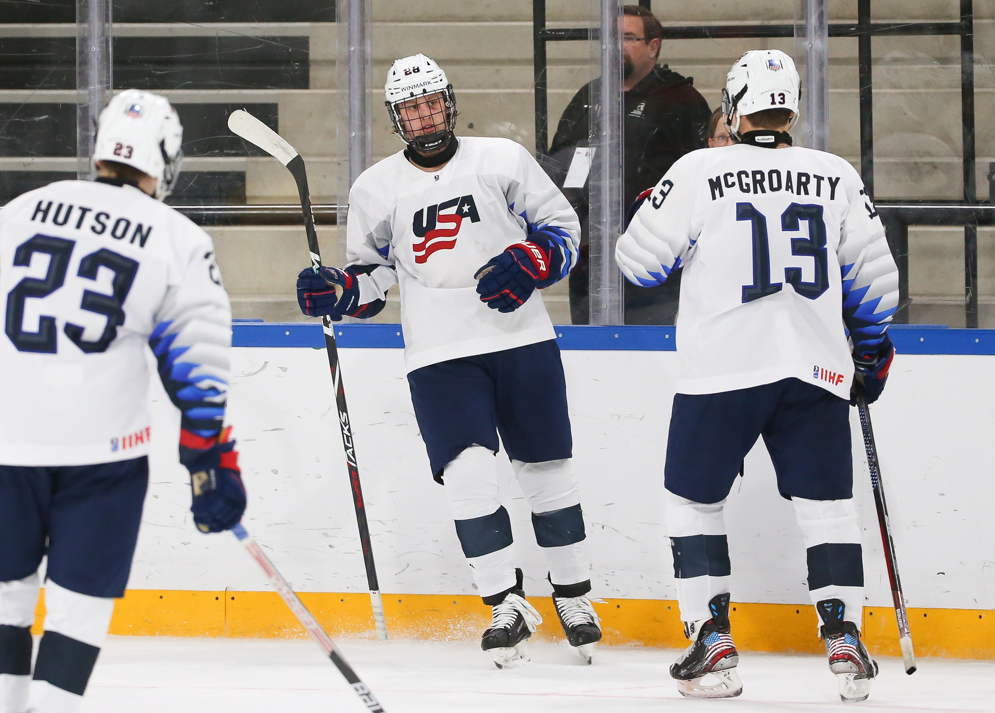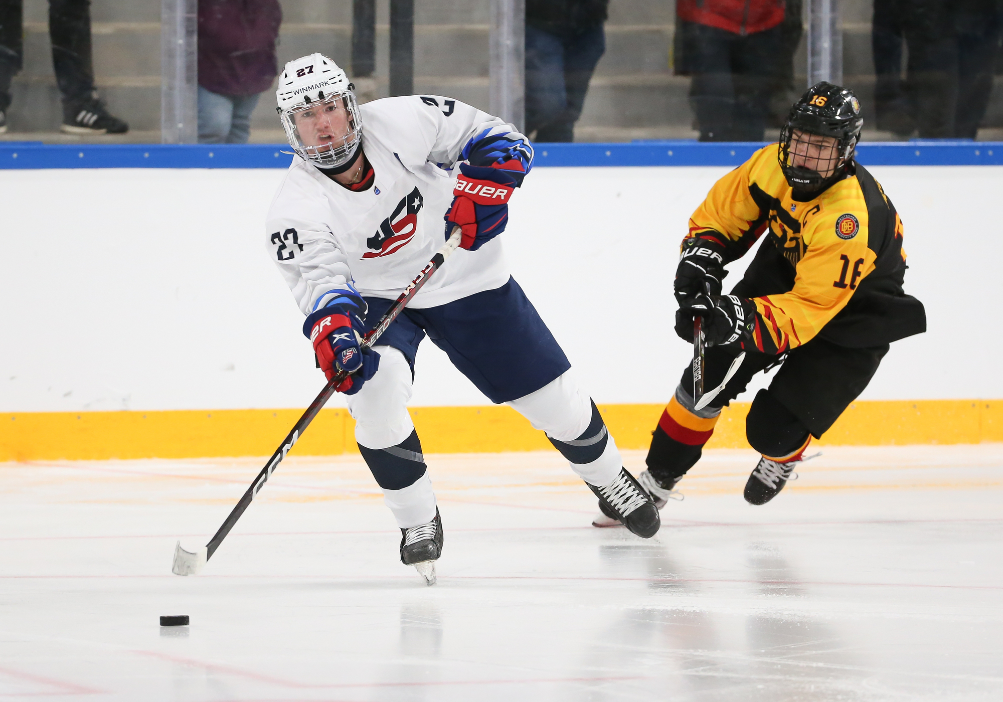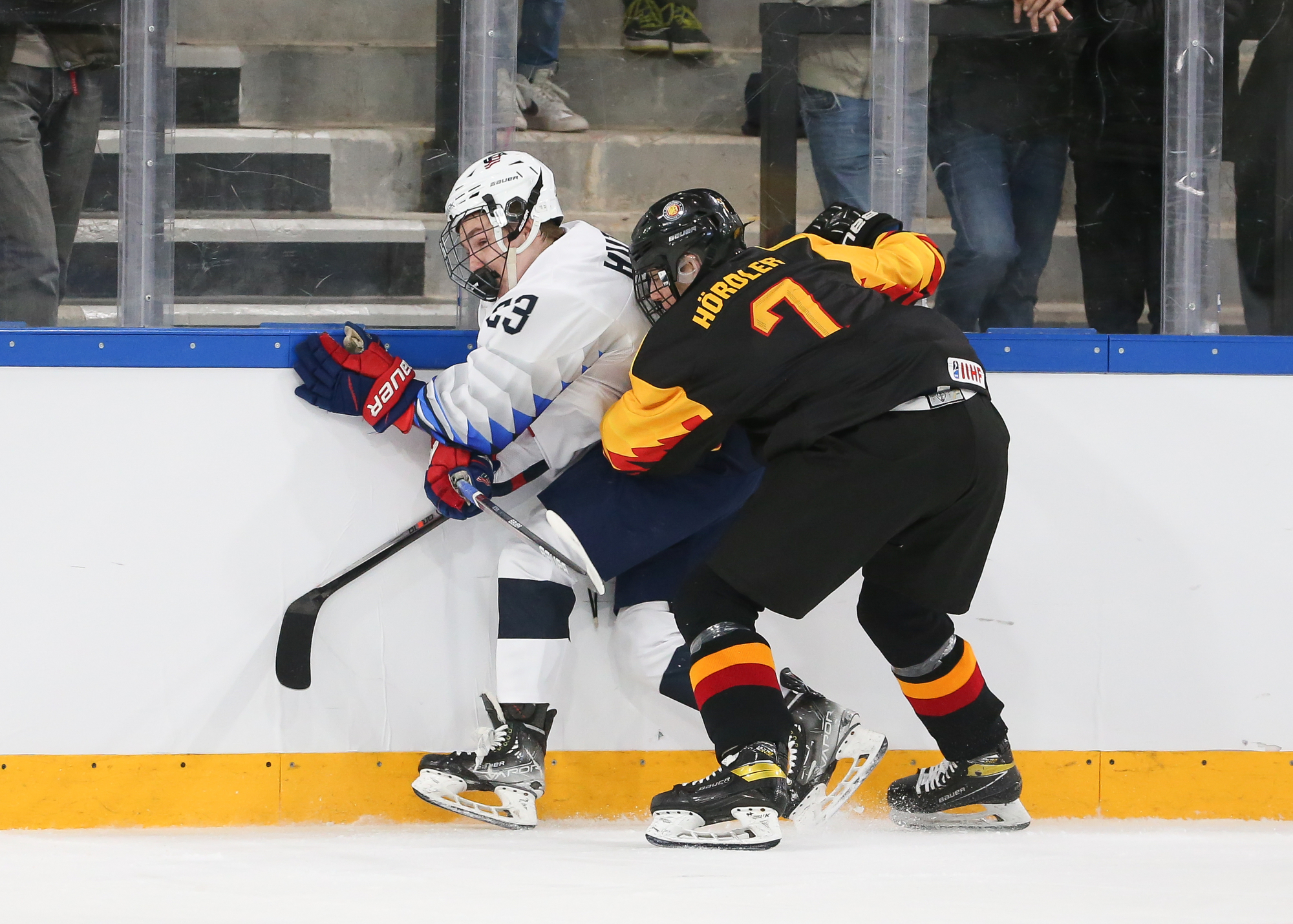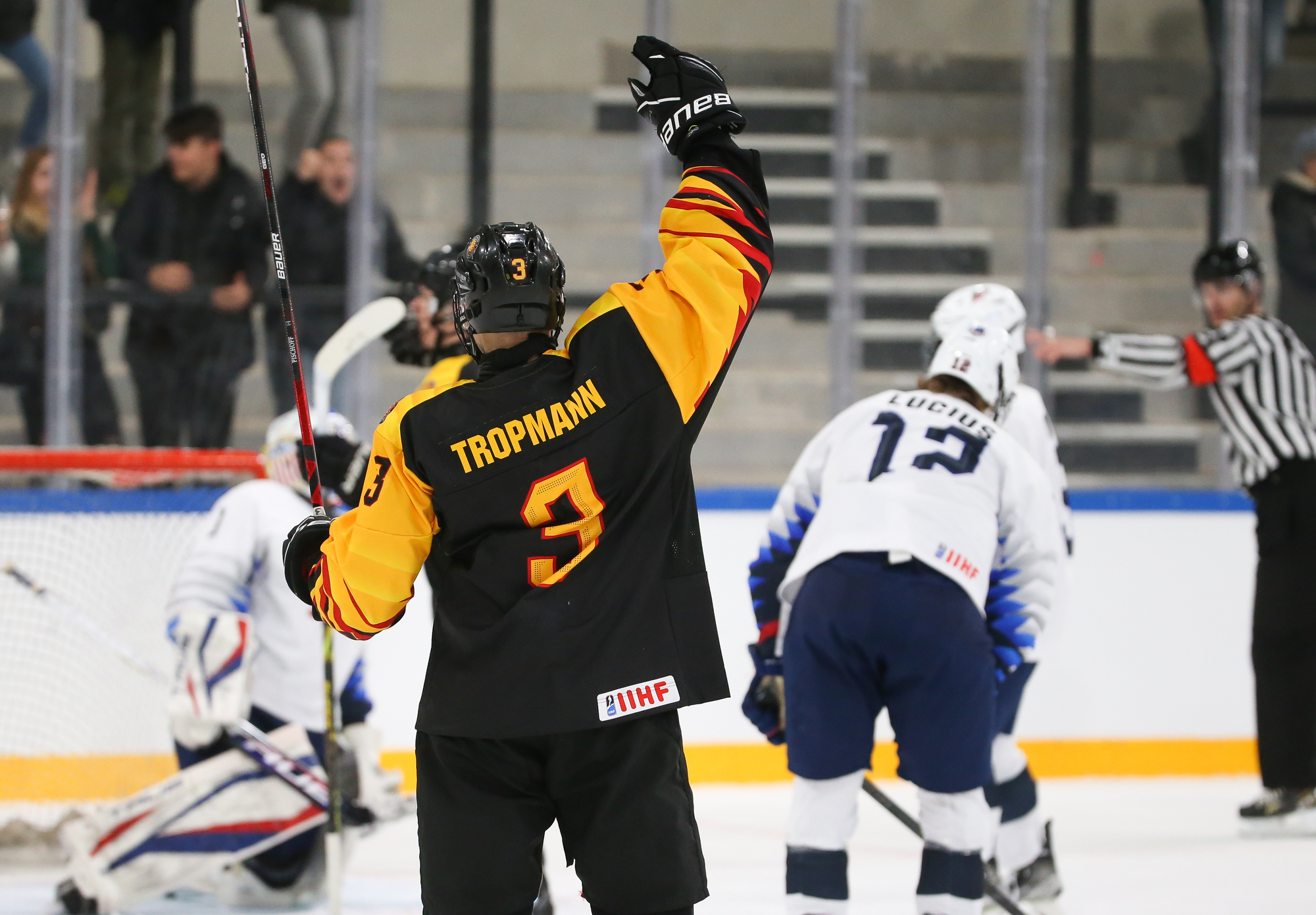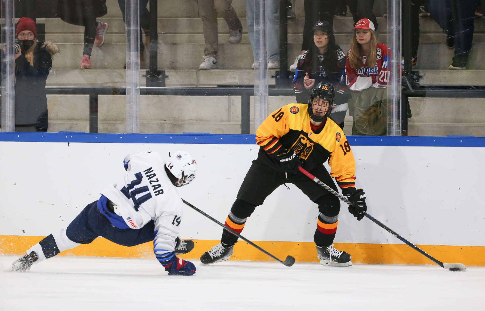 In the last game of Group A at the 2022 IIHF Ice Hockey U18 World Championship, USA defeated Germany 10-2 at Fanatec Arena in Landshut.
