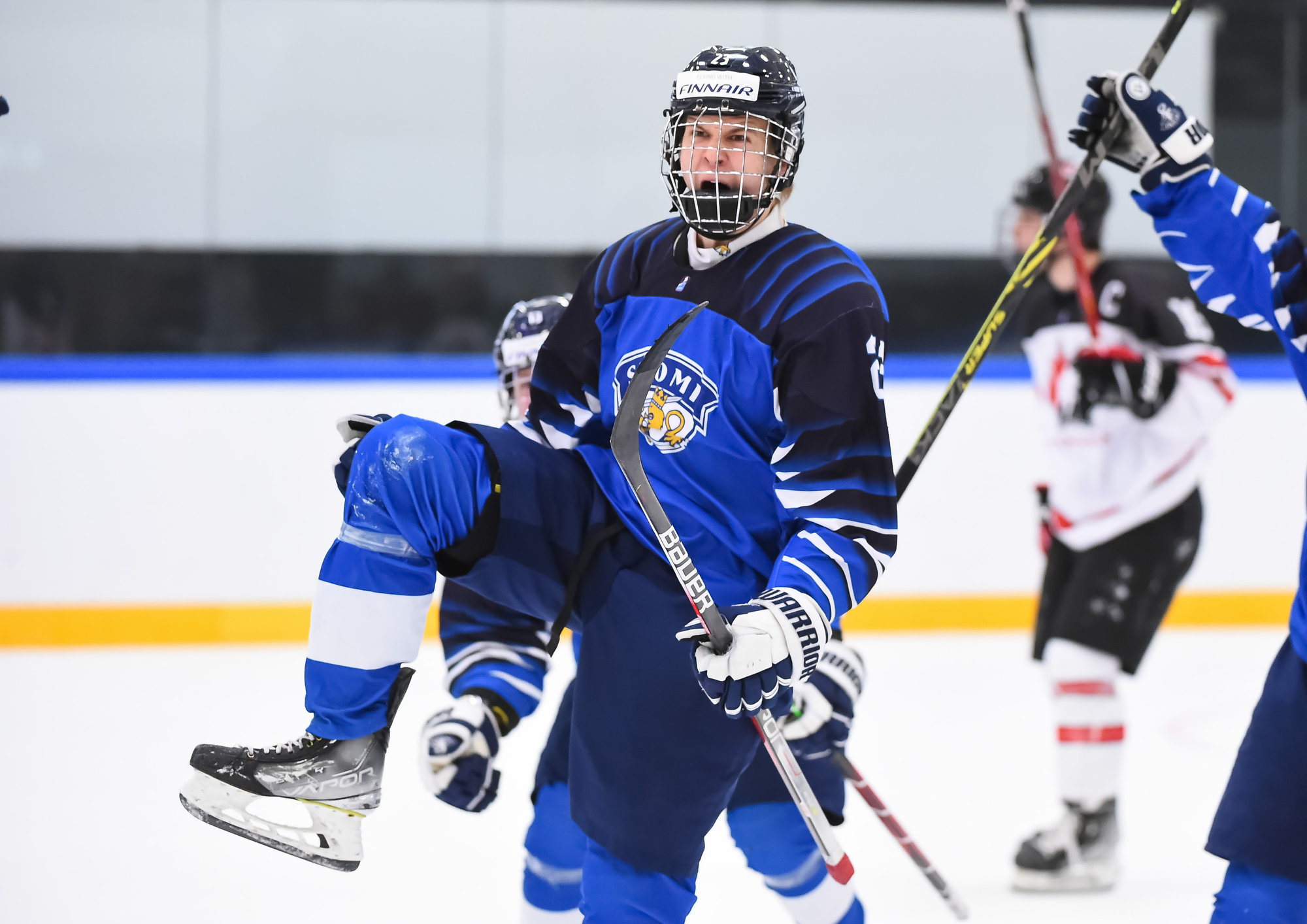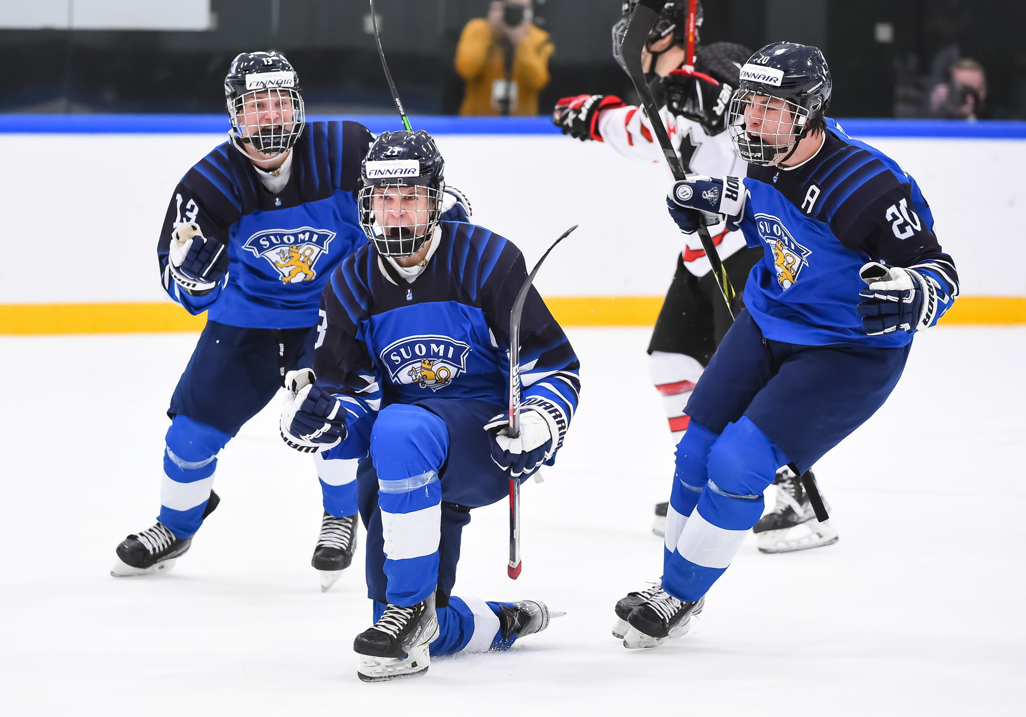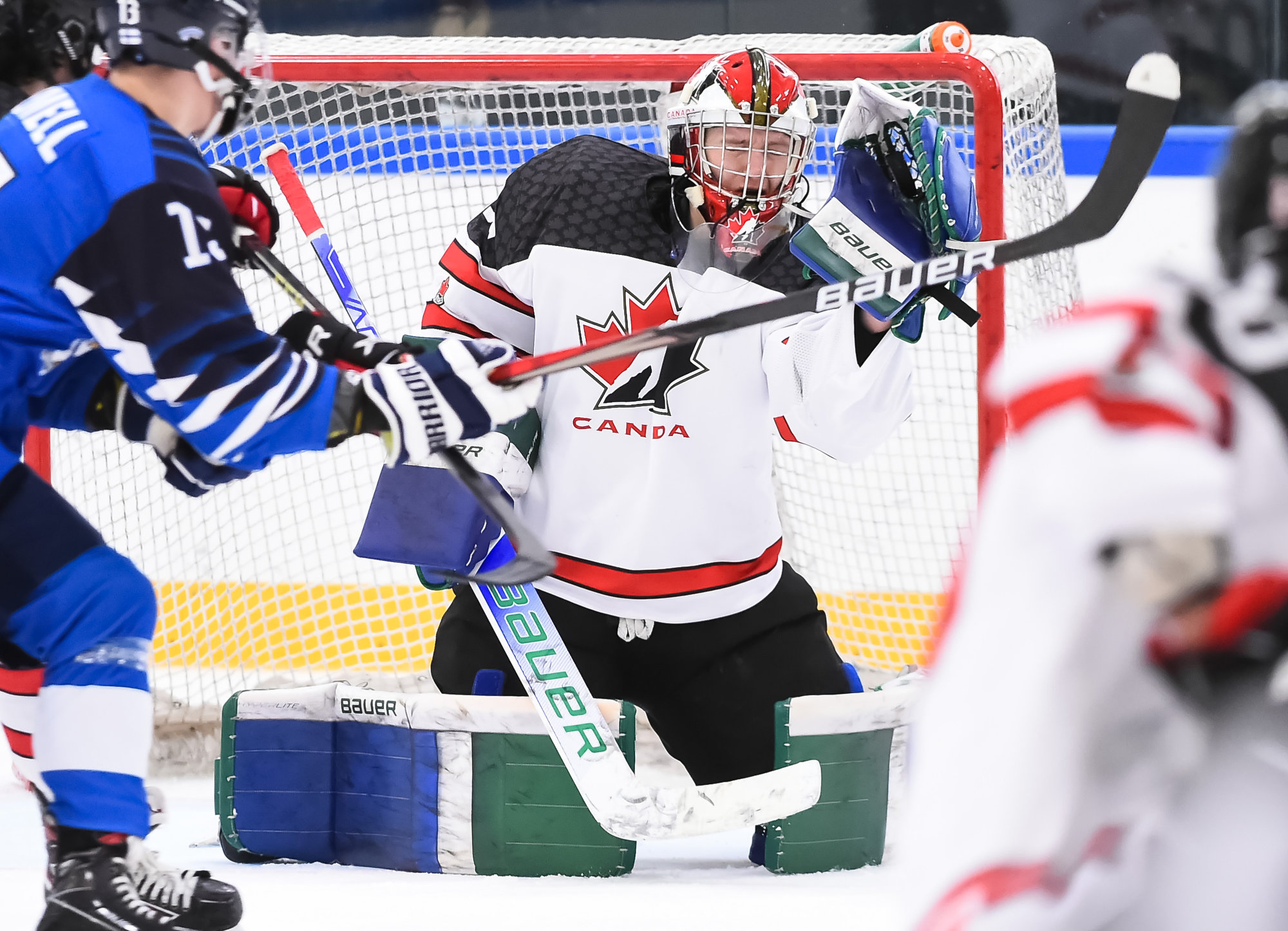 Canada jumped into a two-goal lead early in the second, again thanks to good fortune and quick hands in front of the Finnish goal. Nicholas Moldenhauer made a pass from behind the goal that bounced off the skate of Kasper Kulonummi, right onto the stick of Brayden Schuurman, and he swatted the puck in from close range at 5:25.
