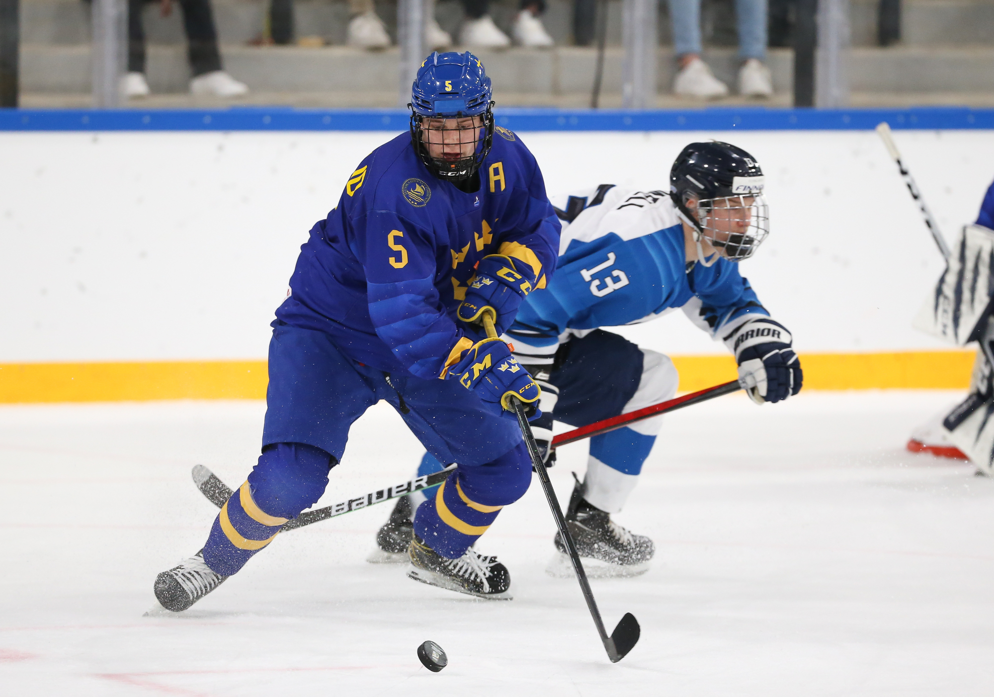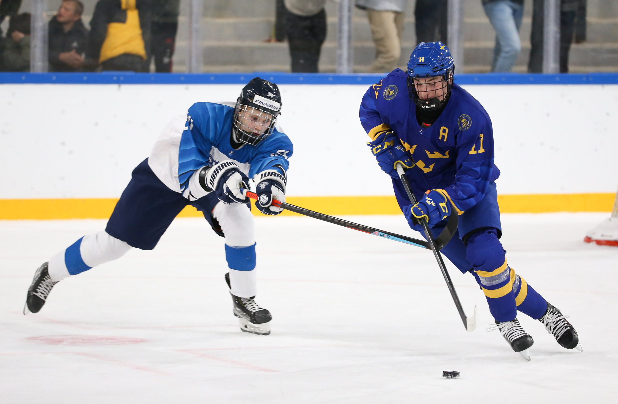 The Swedes missed a chance to extend their lead on a power play early in the third. At the end of it, Tuomas Uronen stepped out of the penalty box and received a breakaway pass. Skating in alone, he tried to beat Hugo Havelid five-hole but the Swedish goalie made a stick-save.