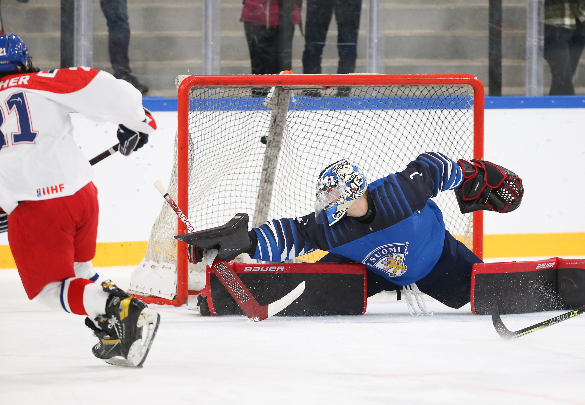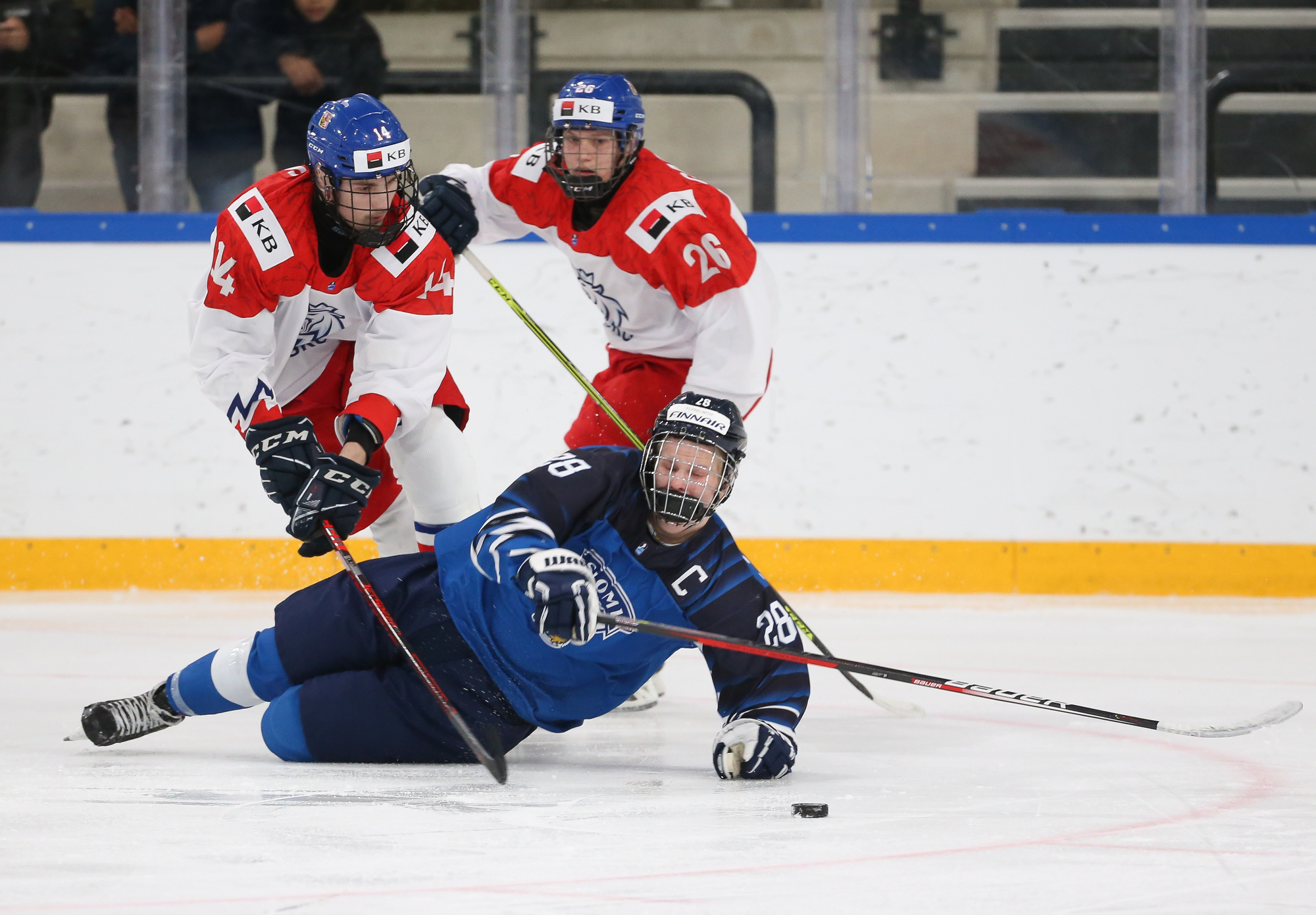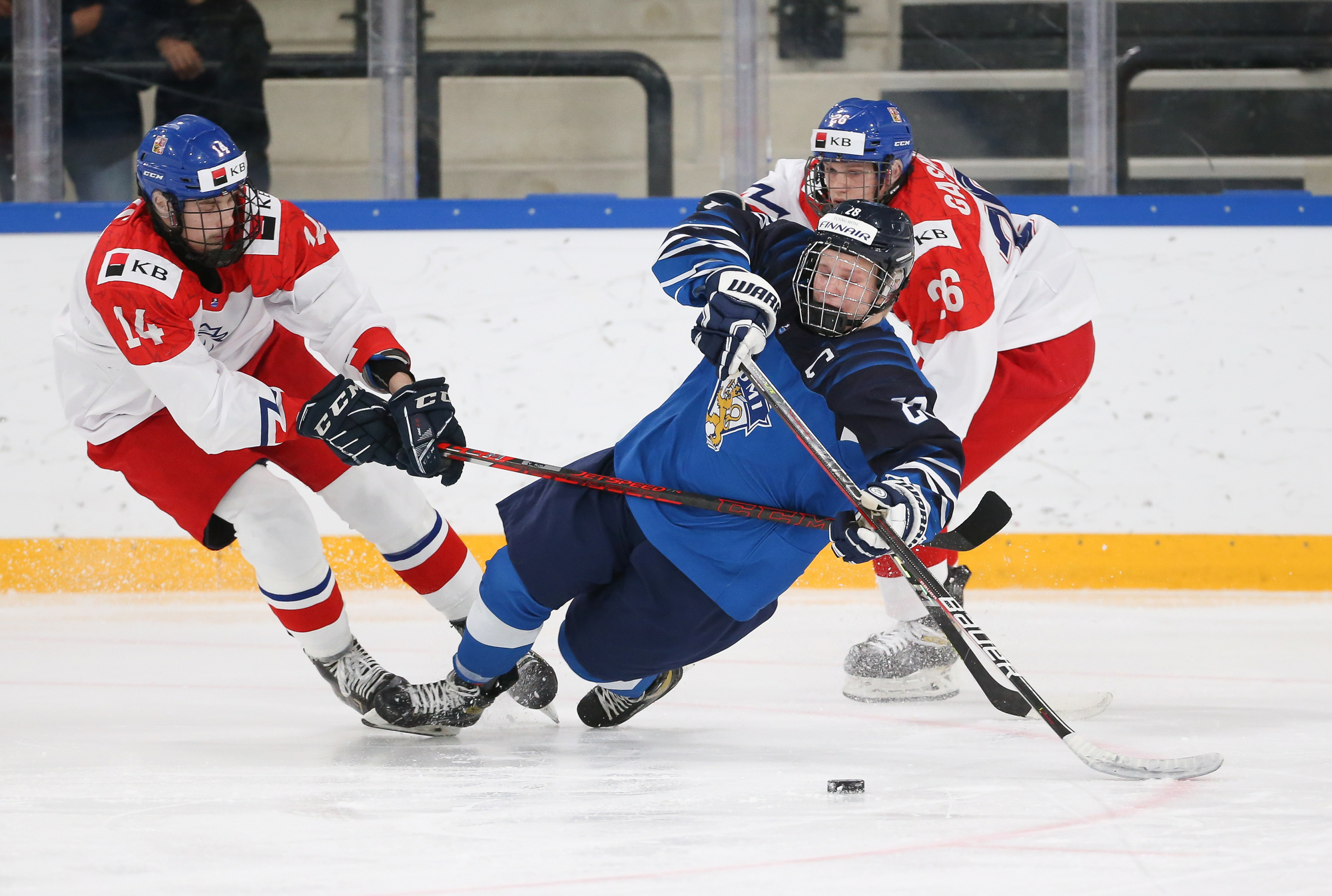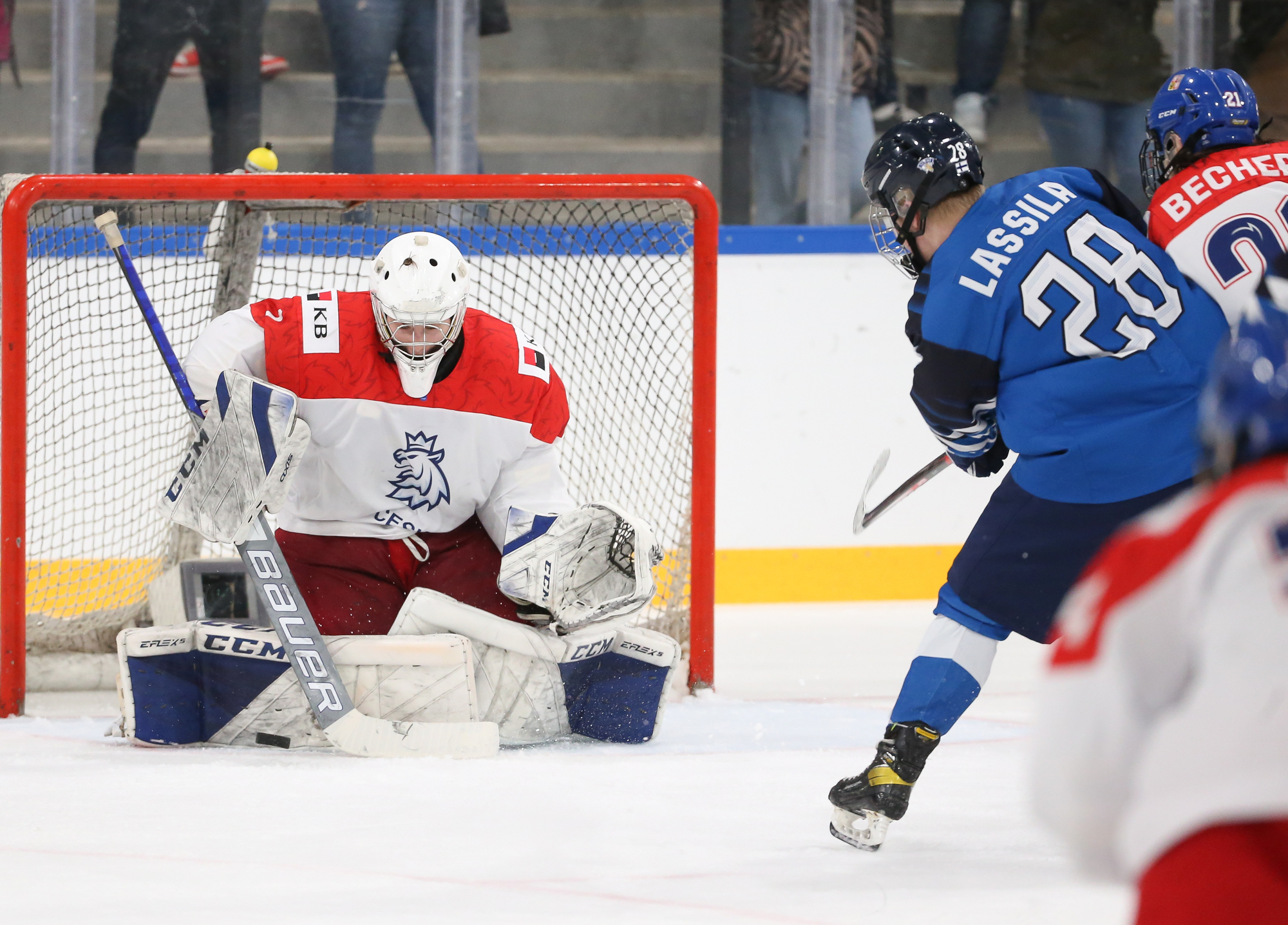 The Finns took their first lead of the game with 6:54 to go in the second period. On a 3-on-2 rush, Becher checked Lassila as he shot, and the Finnish captain slid into Schnattinger. That slowed the Czech goalie just enough for Kemell to slide in the rebound on the far side.