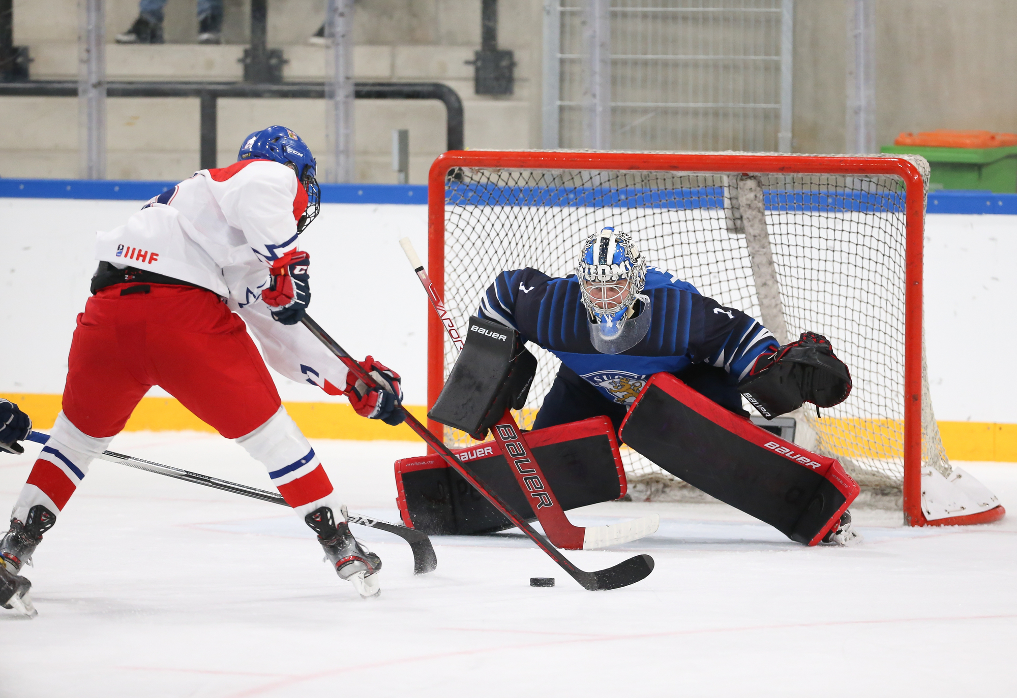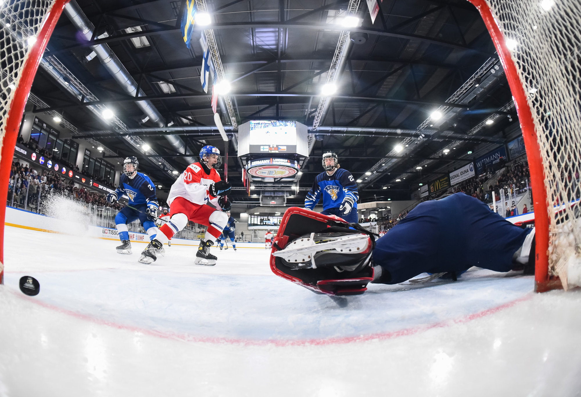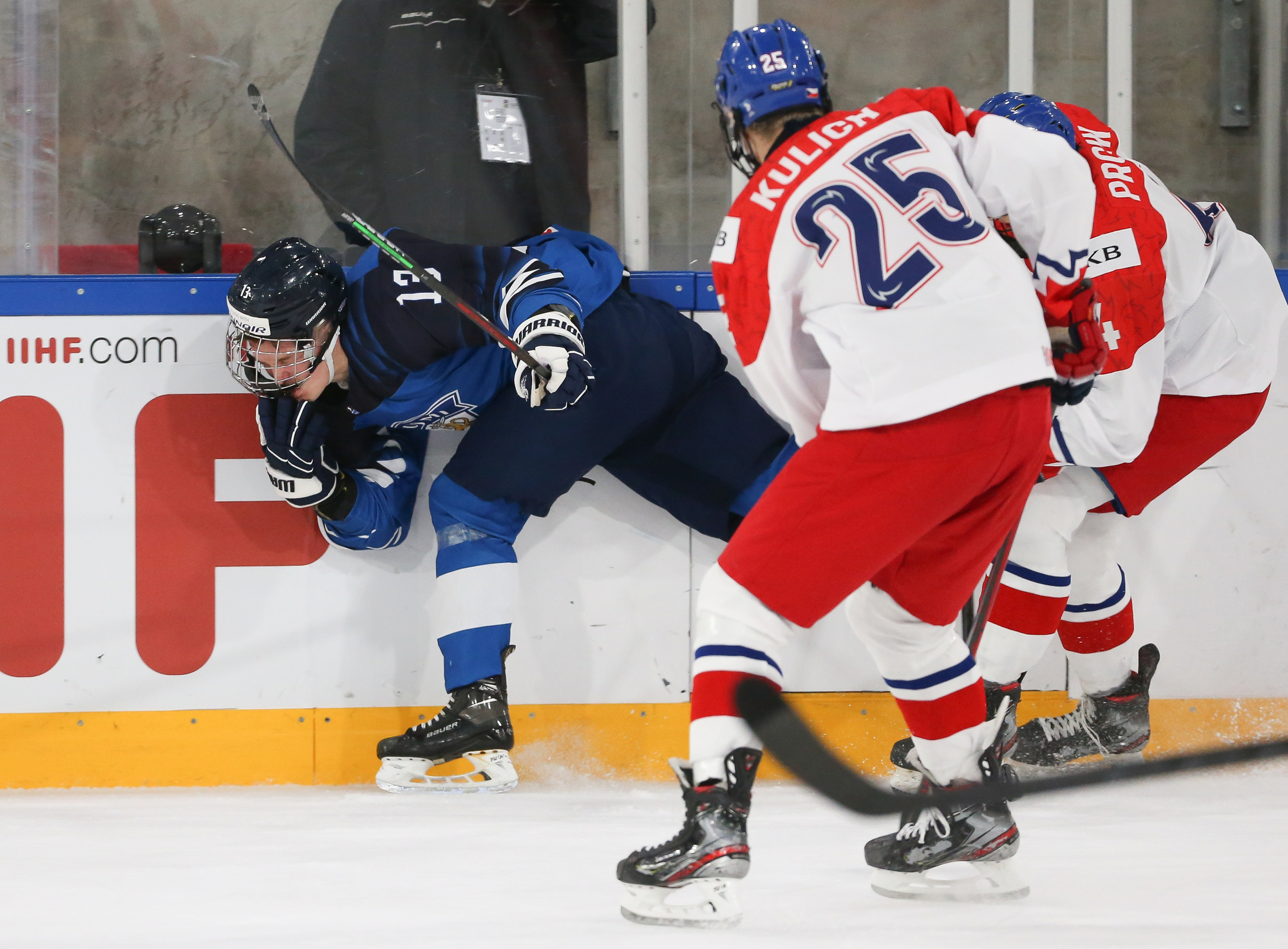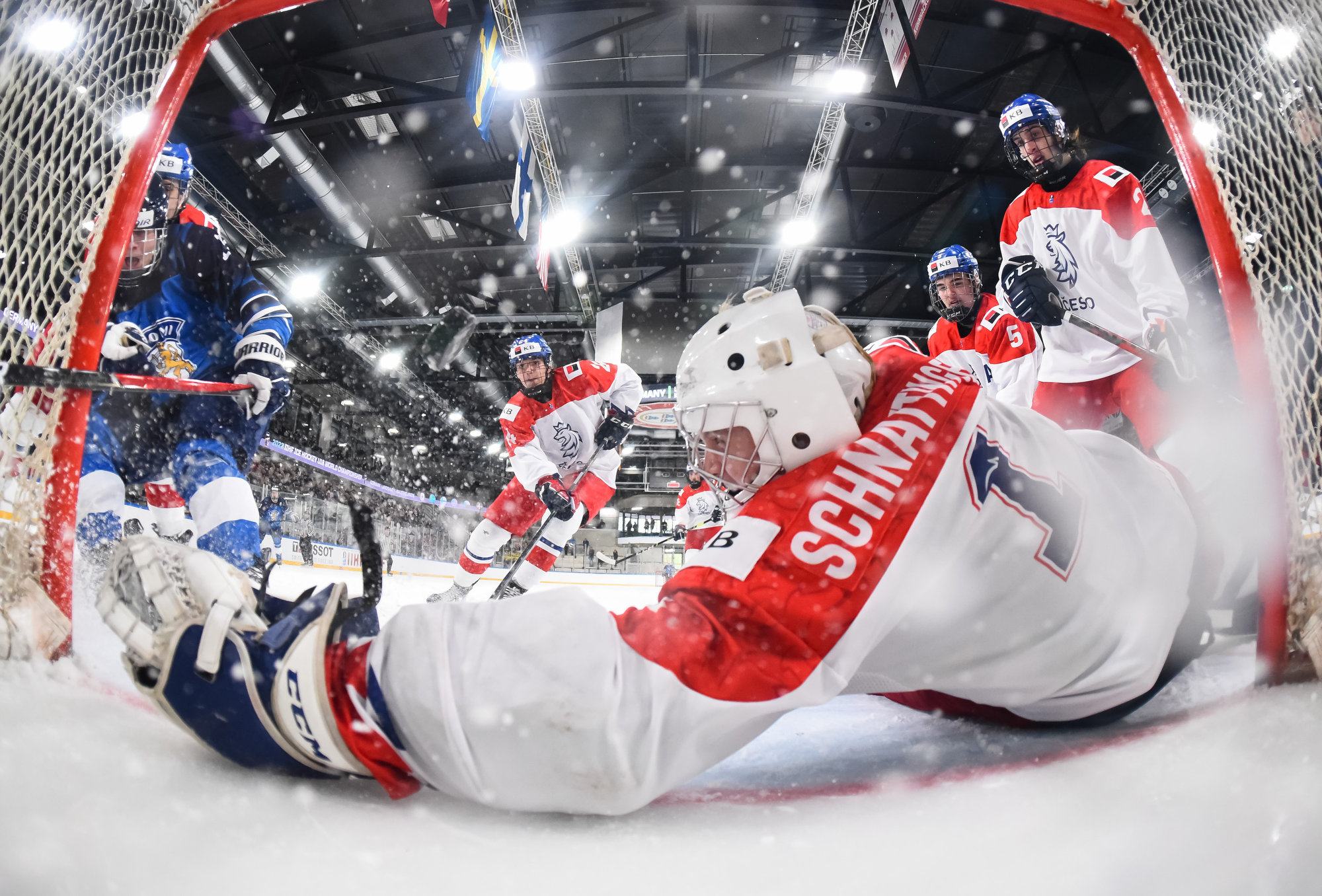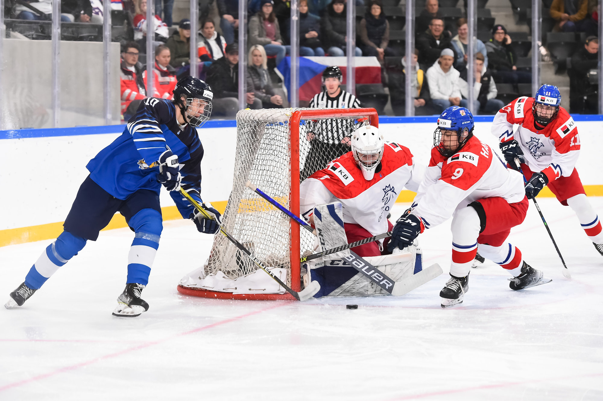 The Finns took their first lead of the game with 6:54 to go in the second period. On a 3-on-2 rush, Becher checked Lassila as he shot, and the Finnish captain slid into Schnattinger. That slowed the Czech goalie just enough for Kemell to slide in the rebound on the far side.