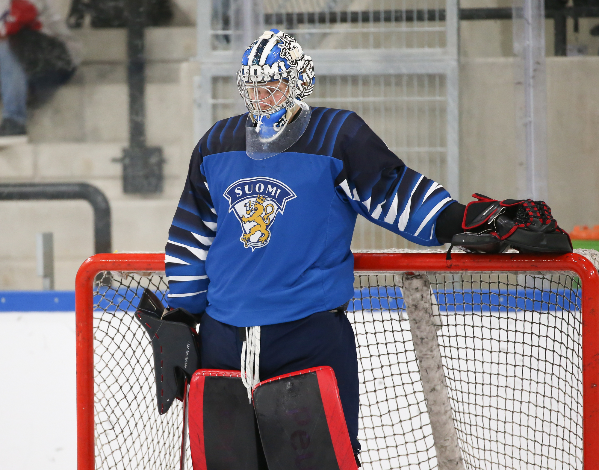 The Finns came back hard on the next shift and Kaskimaki hit the cross bar. They tied it at 9:05 when Aron Kiviharju’s shot from the point was tipped by Kemell, who also served as a screen for Michael Schnattinger.