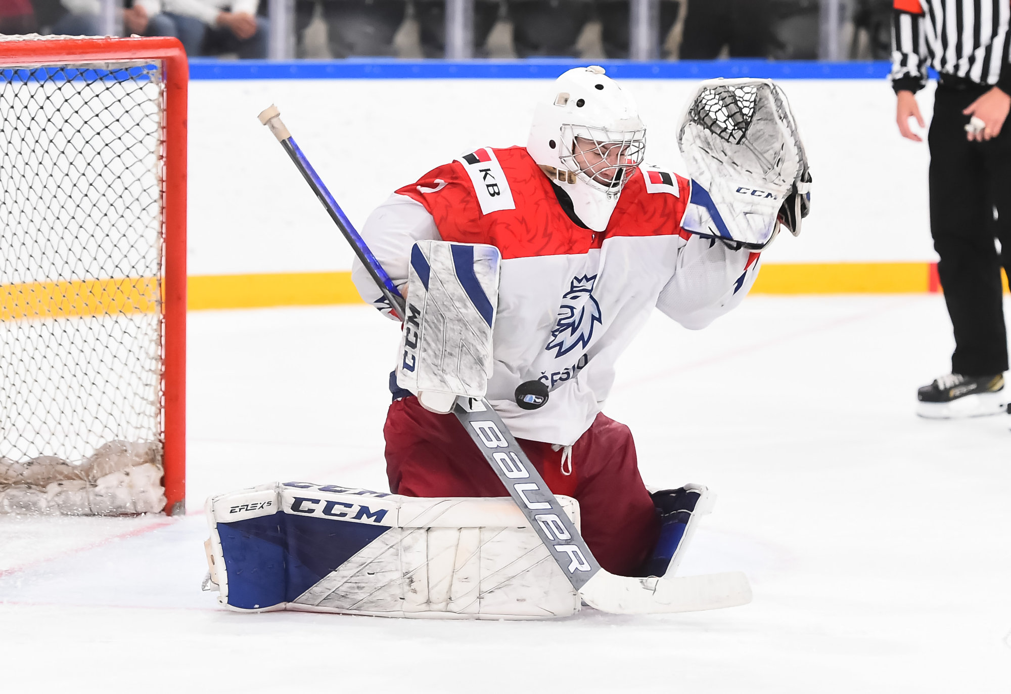 Just after killing off the game’s first penalty, Czechia struck first at 5:27. On a 2-on-1 rush, Adam Bares fed Ondrej Becher, who beat Leinonen high to the short side before the Finnish goalie could slide across and get a blocker on it.