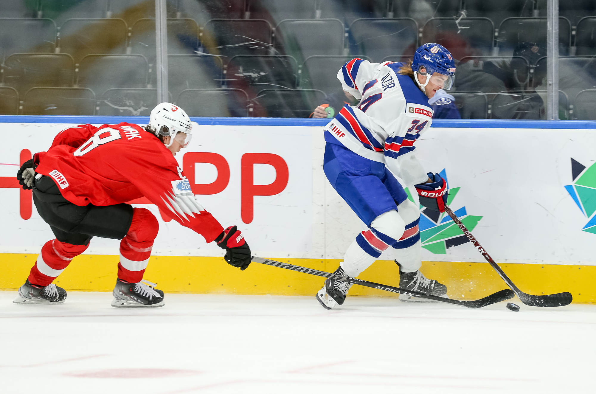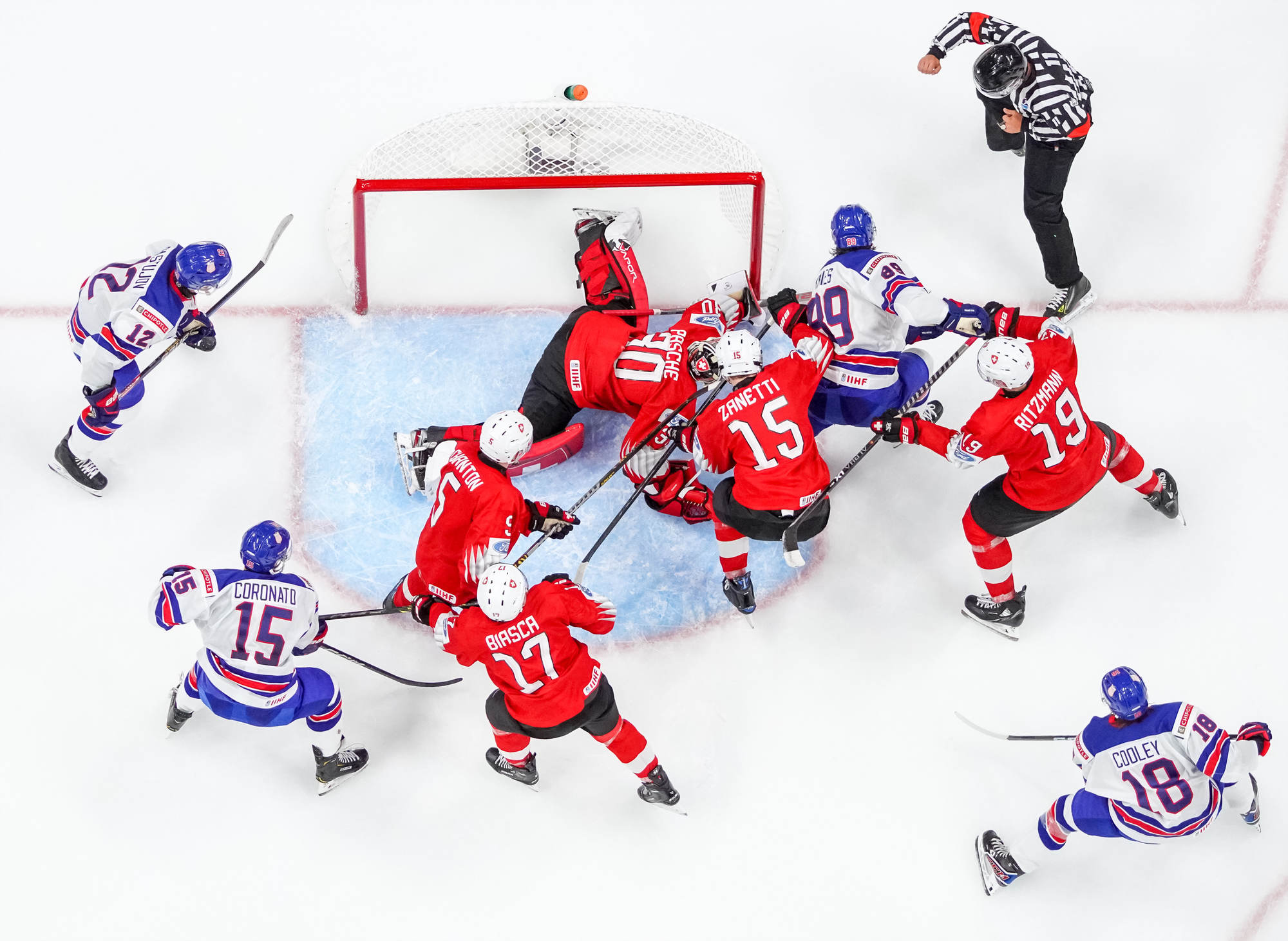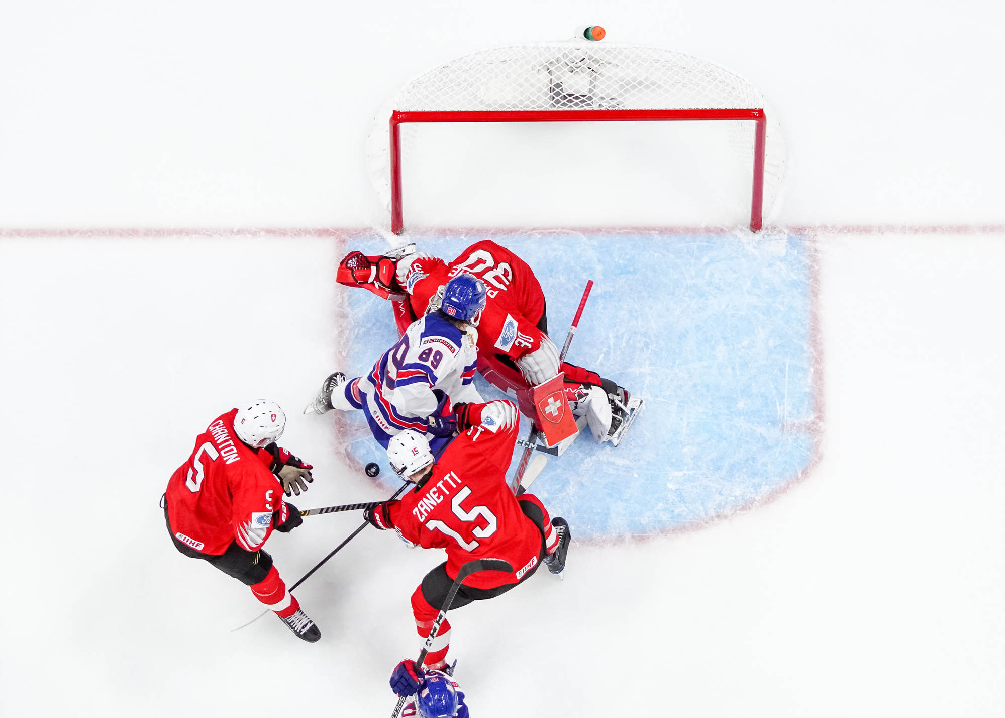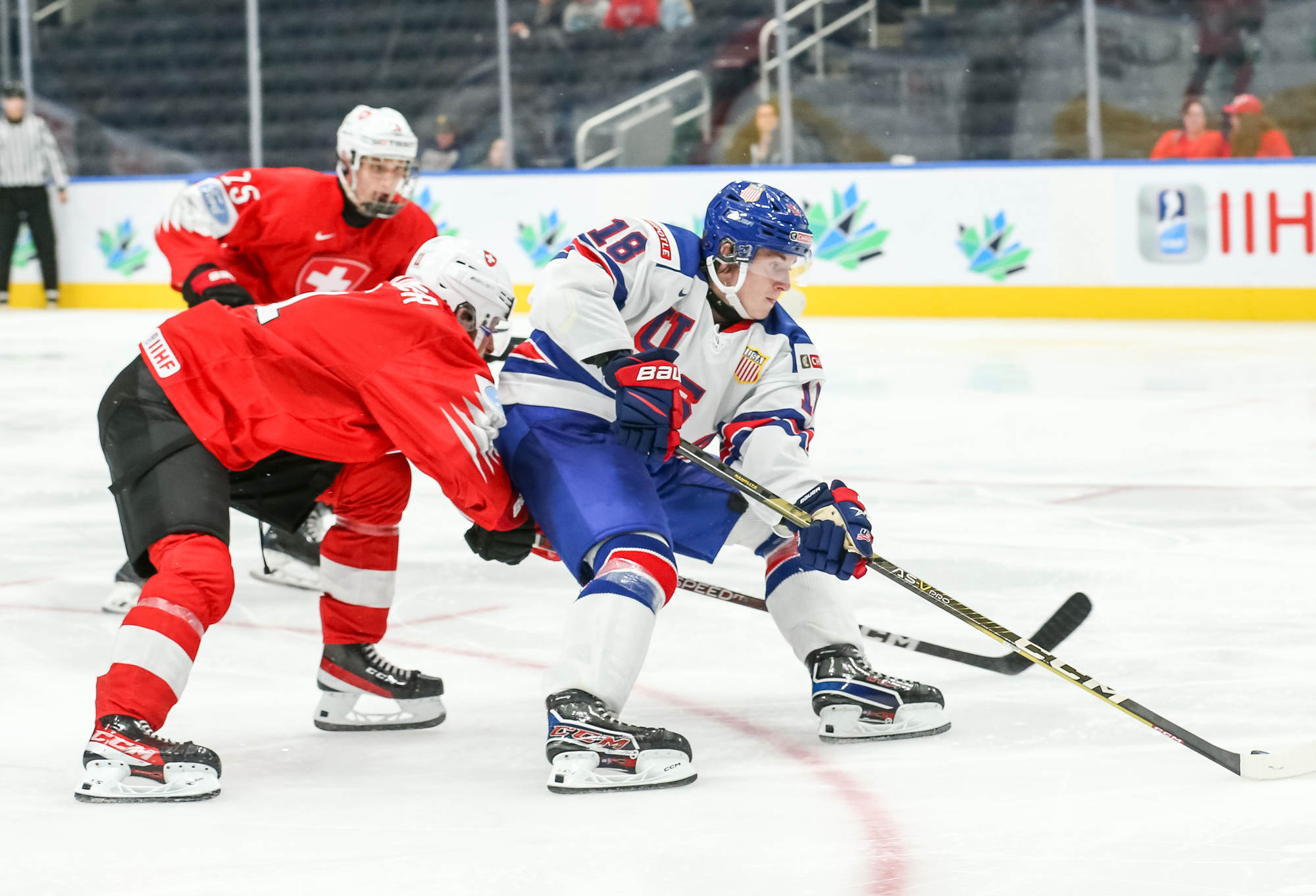 Team USA scored five times in the second period and skated away to a 7-1 win over Switzerland in Group B action tonight at Rogers Place. The win improves the Americans’ record to 2-0 while the Swiss fall to 0-2.