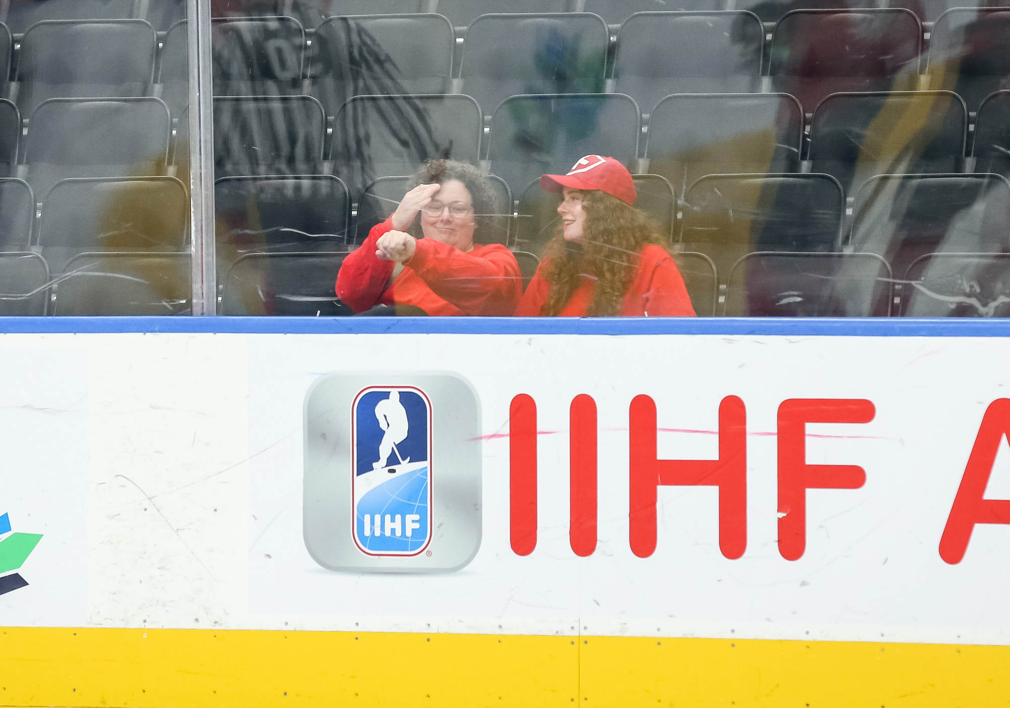 And yet, the Swiss came out and skated stride for stride with the Americans in the opening period. Indeed, they held a slight advantage in shots until late in the period but more U.S. shots were dangerous. They were stopped by some fine play form Swiss goalie Kevin Pasche, and a lack of finish around the net. Pasche played at the 2021 U18s and also in one game last Christmas at the U20, but this was his first game here now in Edmonton. He also sports a helmet with an inspirational mantra on the back that reads: “Don’t be afraid of failure. This is the way to succeed.”