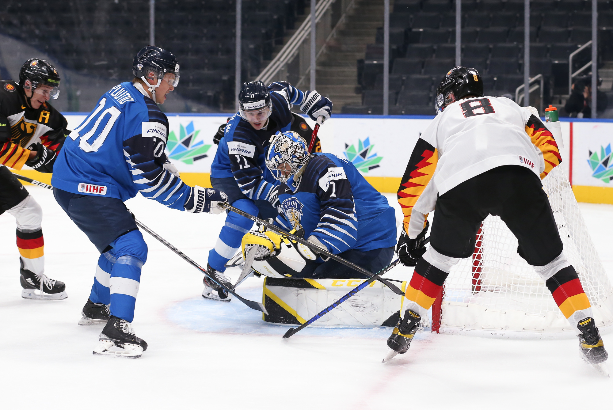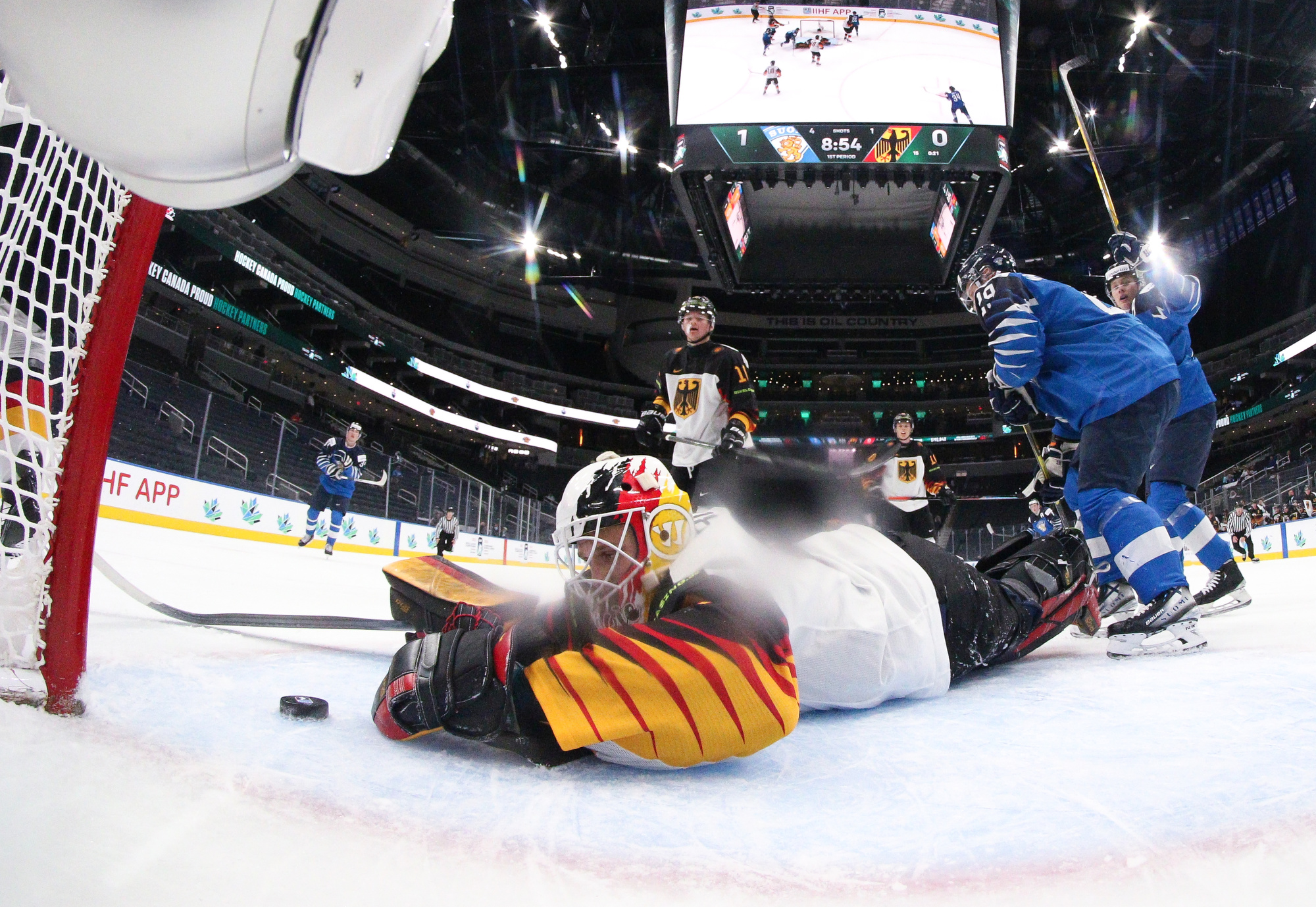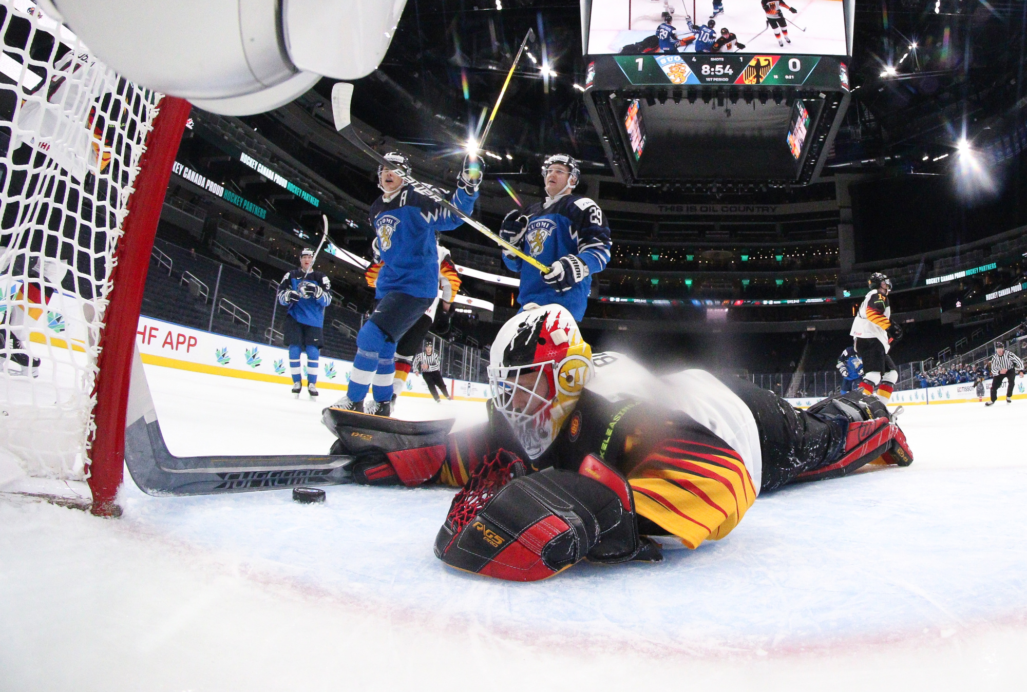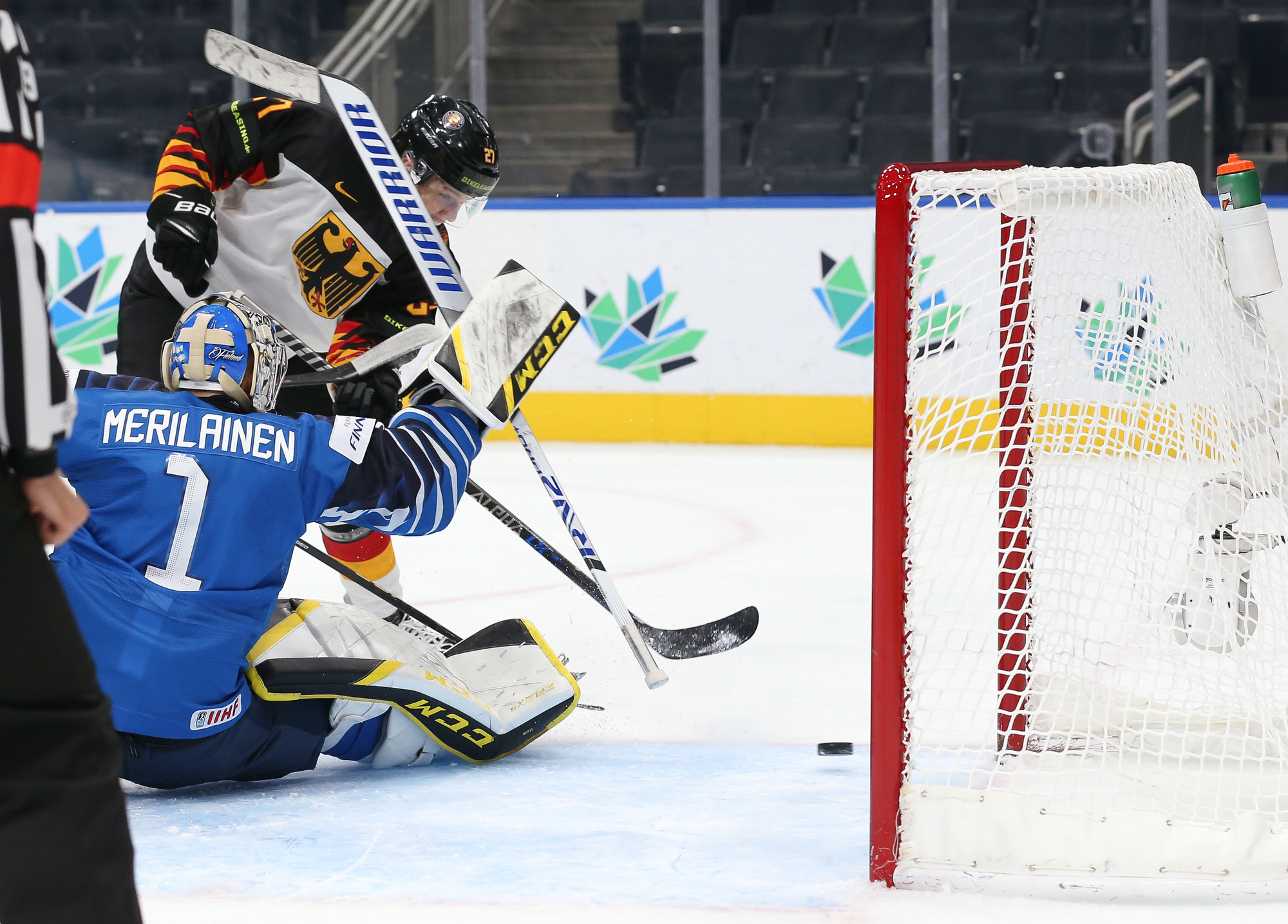 It wasn't exactly a shooting gallery, as final shots favoured Finland 22-21. Finland's Leevi Merilainen prevailed over Germany's Florian Bugl in the head-to-head matchup of starting netminders.