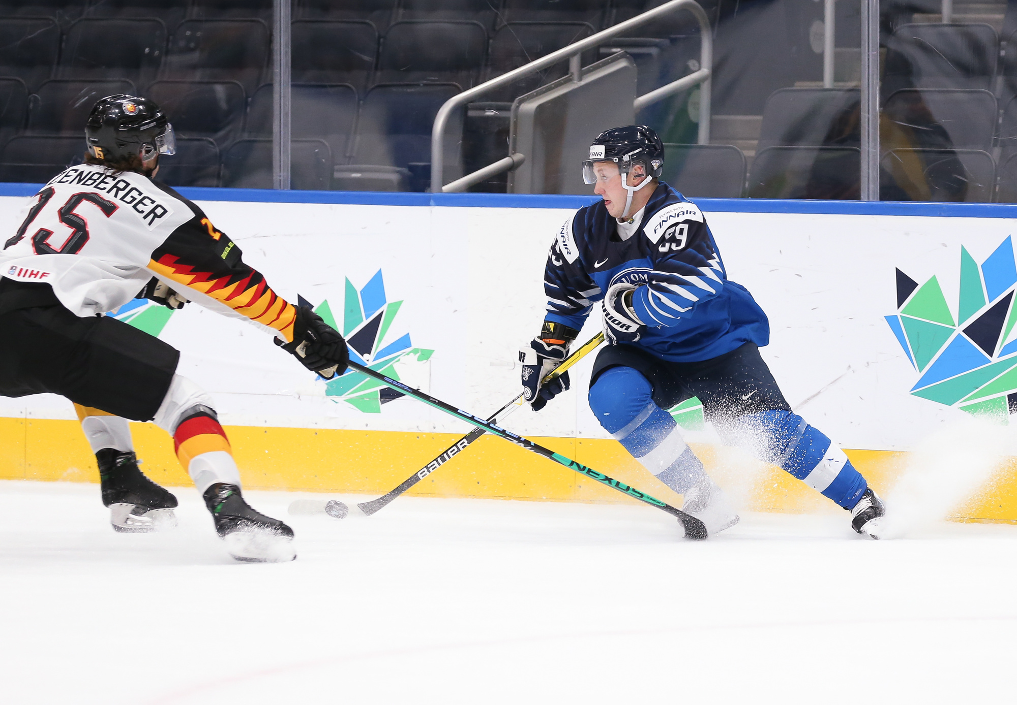 In the second period, Finland's pace lulled significantly. Even with defenceman Maximilian Glotzl off for tripping, the Germans kept their opponents shotless till well past the halfway point. Captain Luca Munzenberger added physical bite, slamming Hirvonen in open ice in the defensive zone and forcing Simontaival into Bugl's right post.