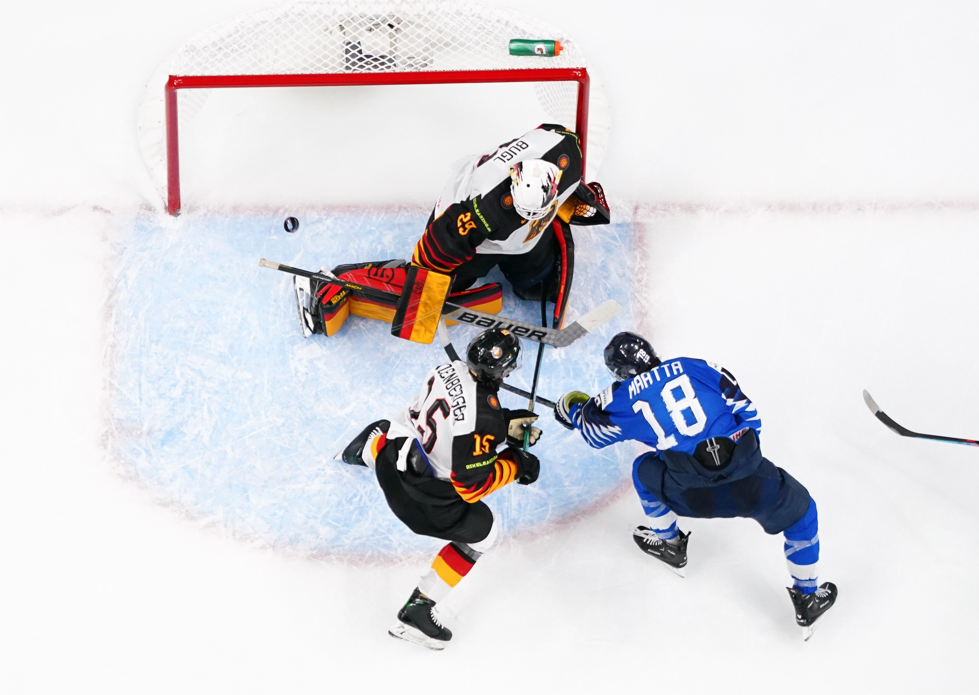 With 4:07 remaining, Jarventie found Maatta down low with the man advantage, and he pivoted deftly to beat Bugl on the forehand for a 5-2 edge. Auf Wiedersehen, Deutschland.
