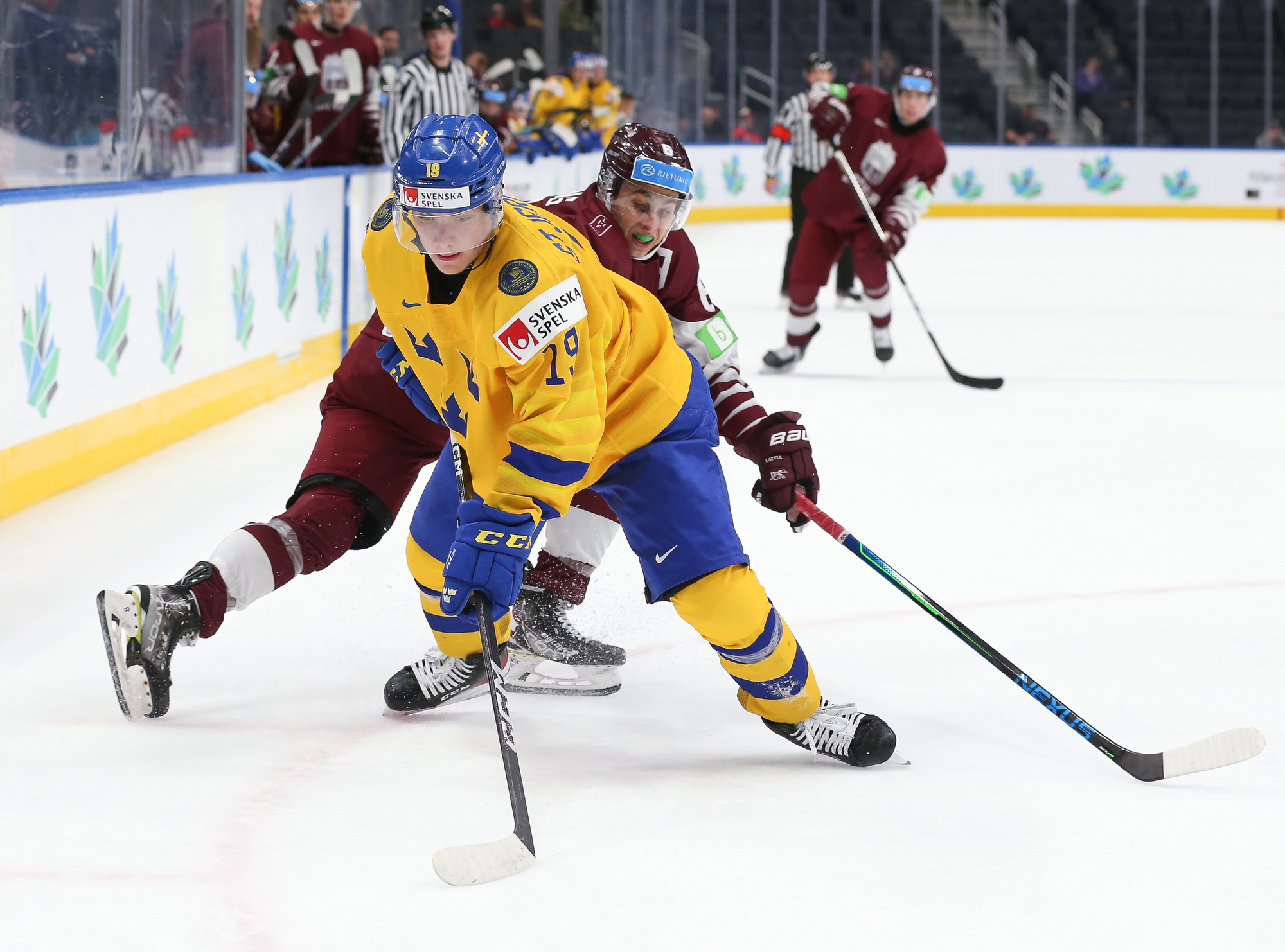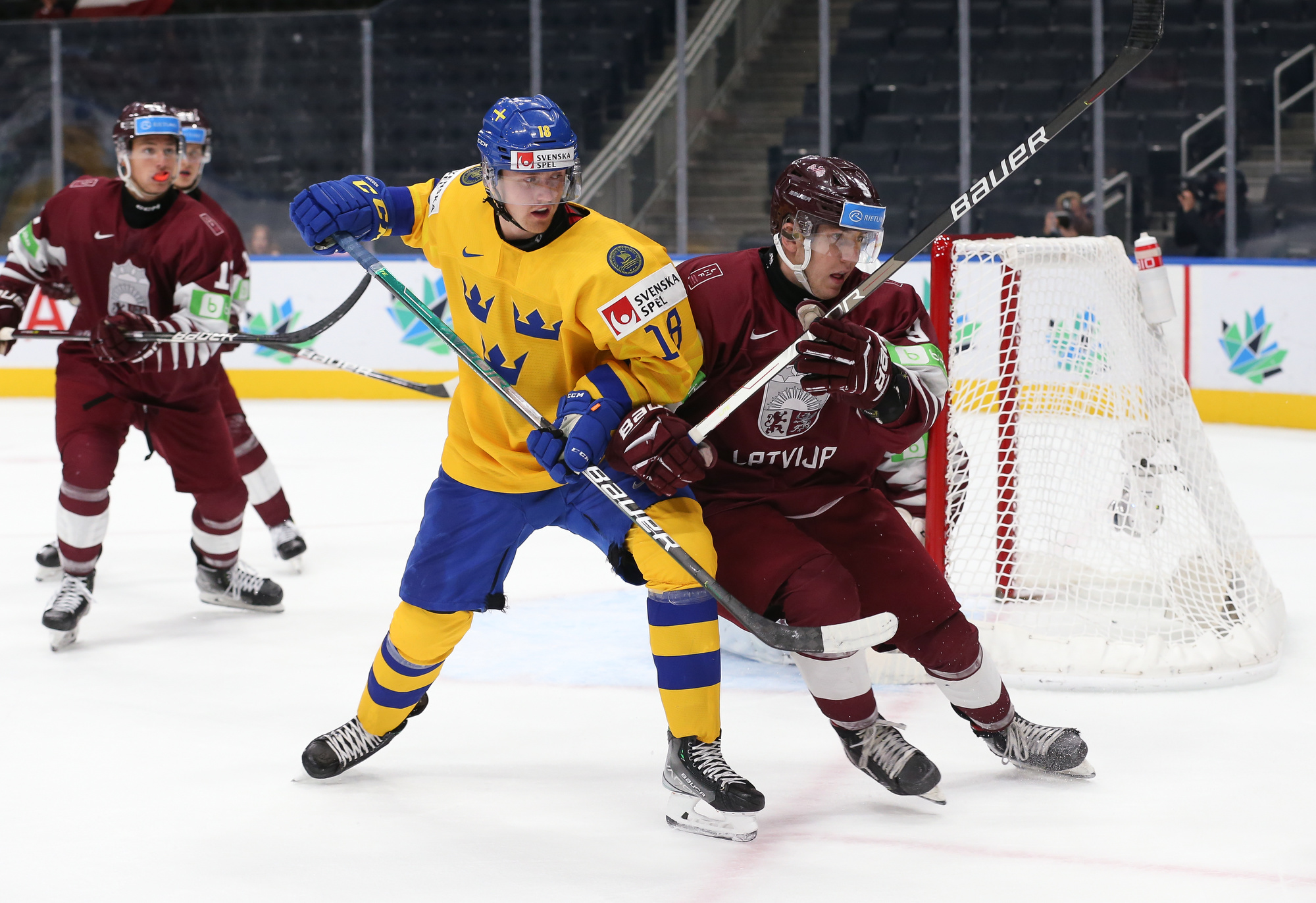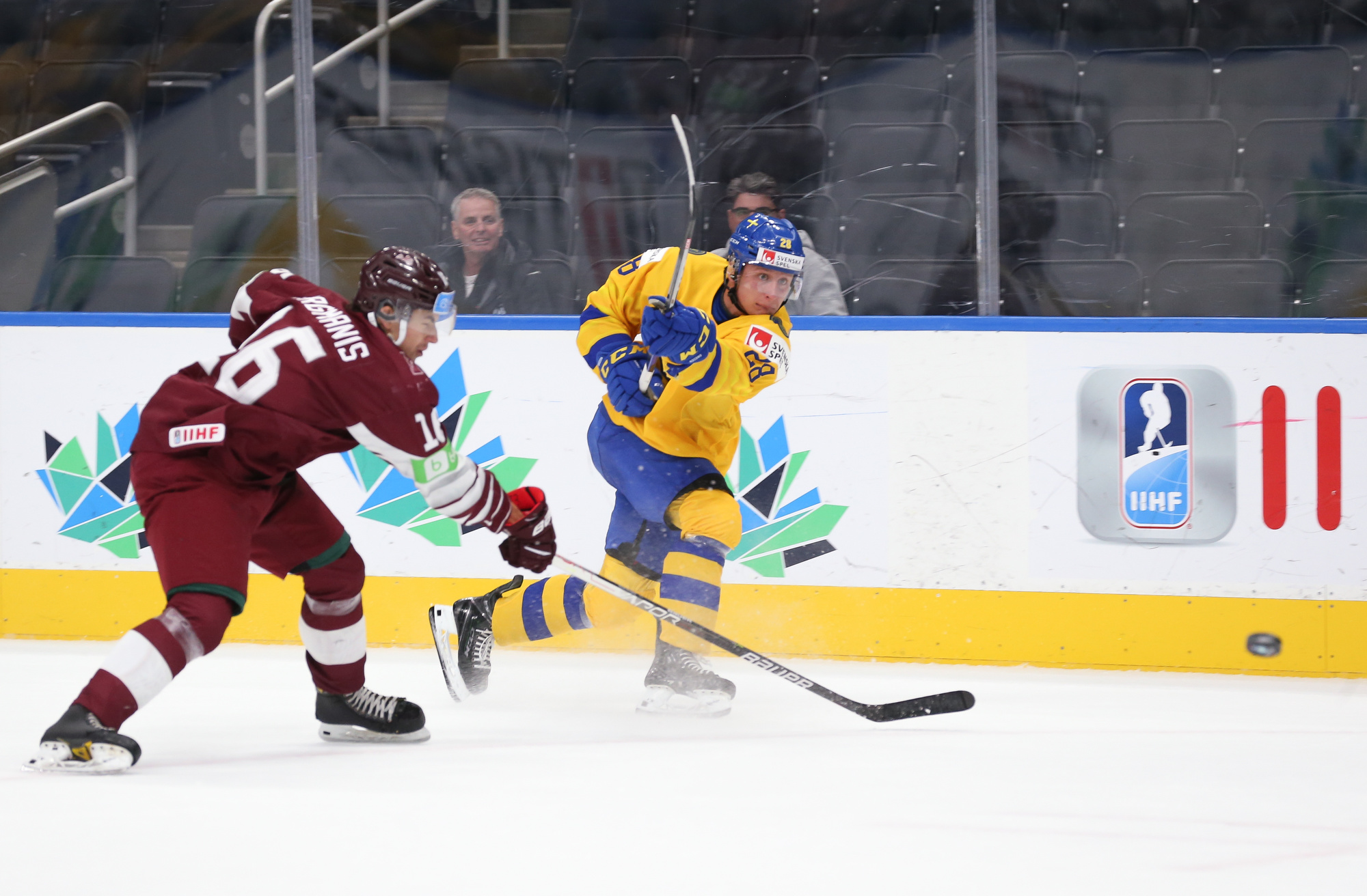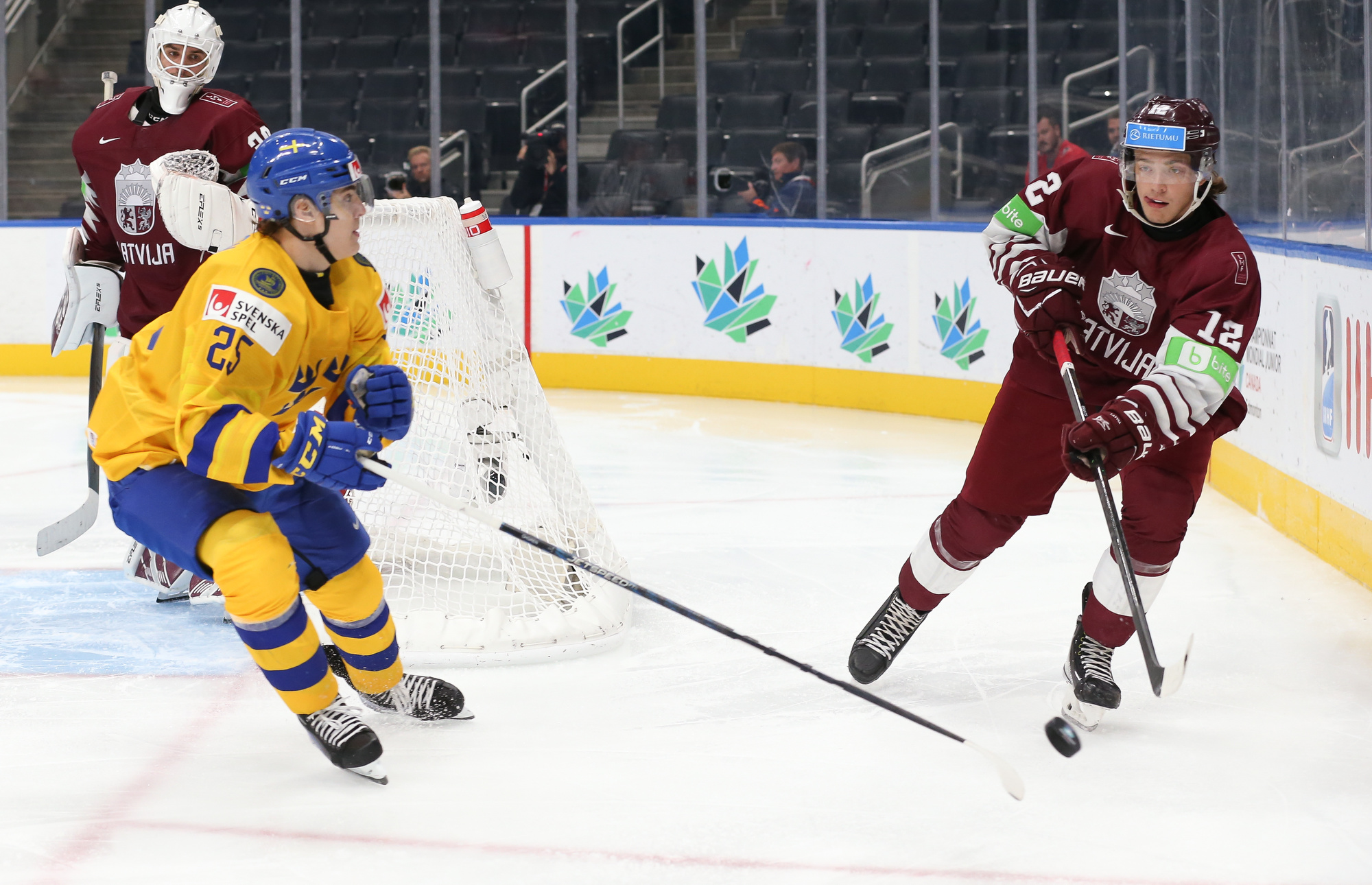 Sweden beat Latvia 2-1 this afternoon in the second of four quarter-finals games at Rogers Place. The win takes Sweden to the semi-finals on Friday and Latvia goes home, likely with their best finish ever. Sweden had won all four previous U20 meetings between the teams, and today was no different, except it was the closest result.