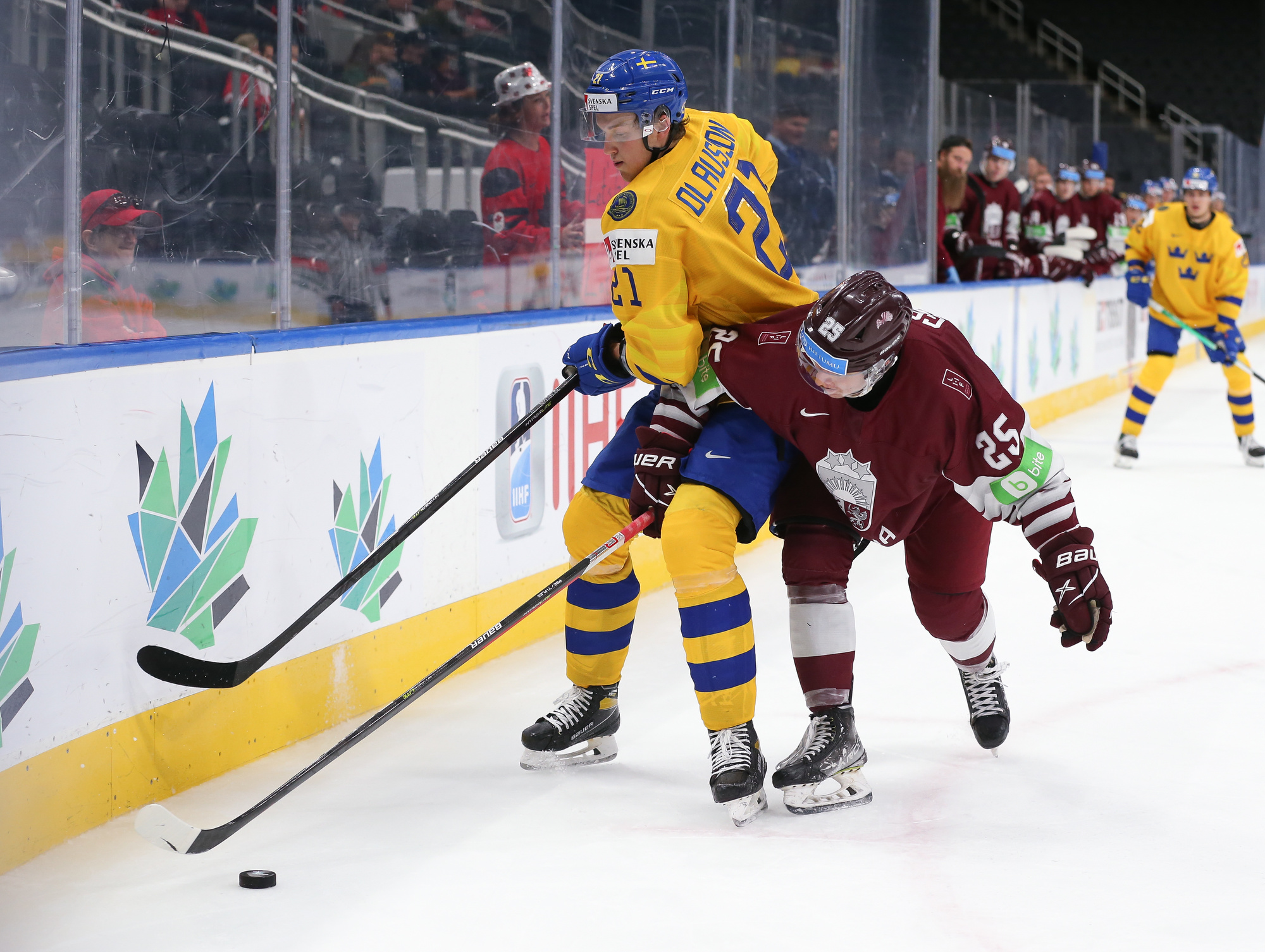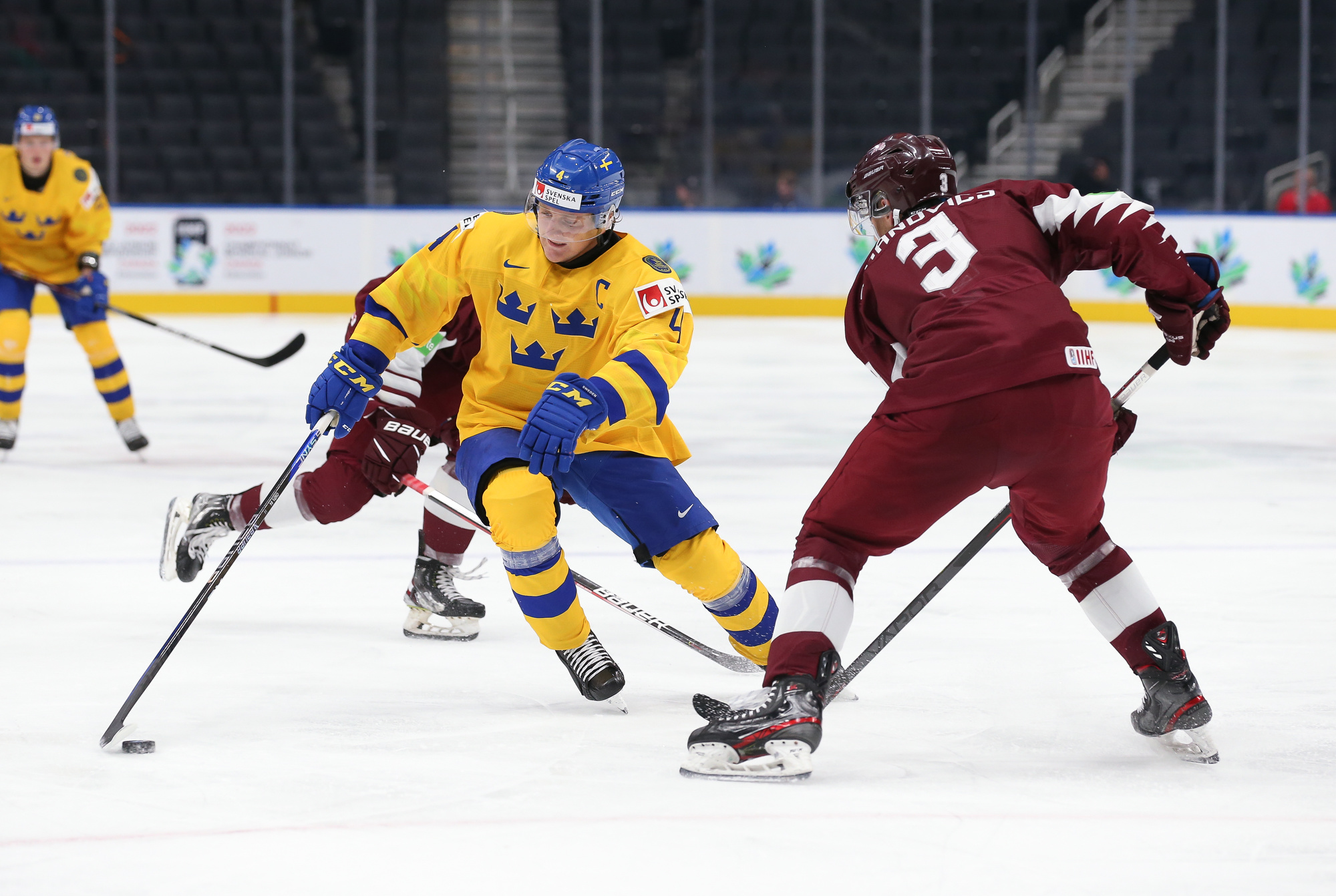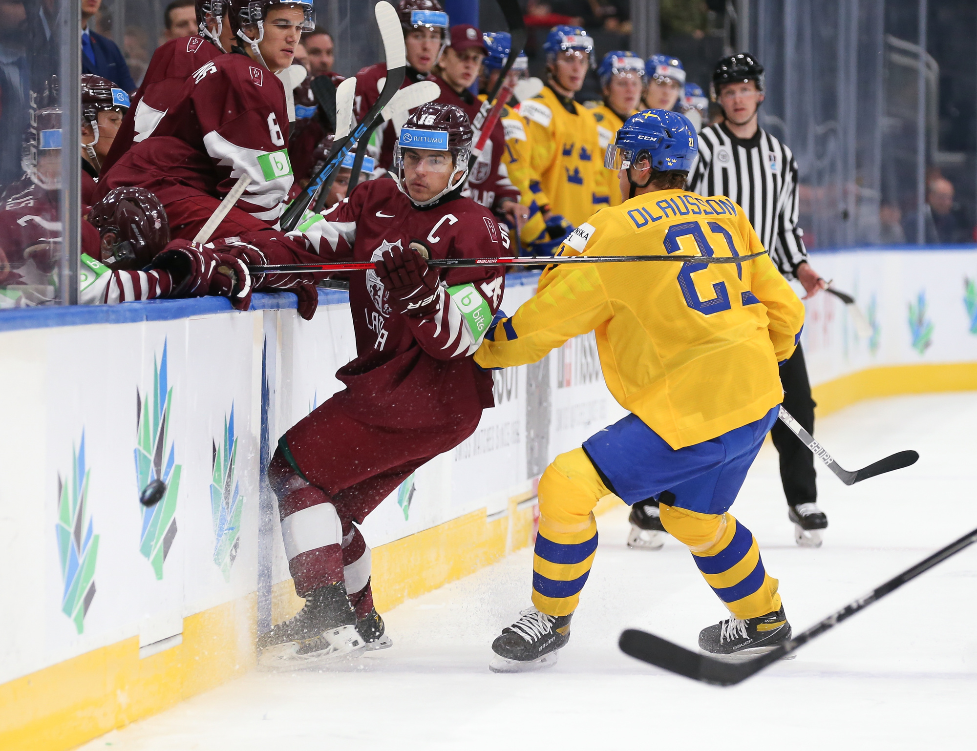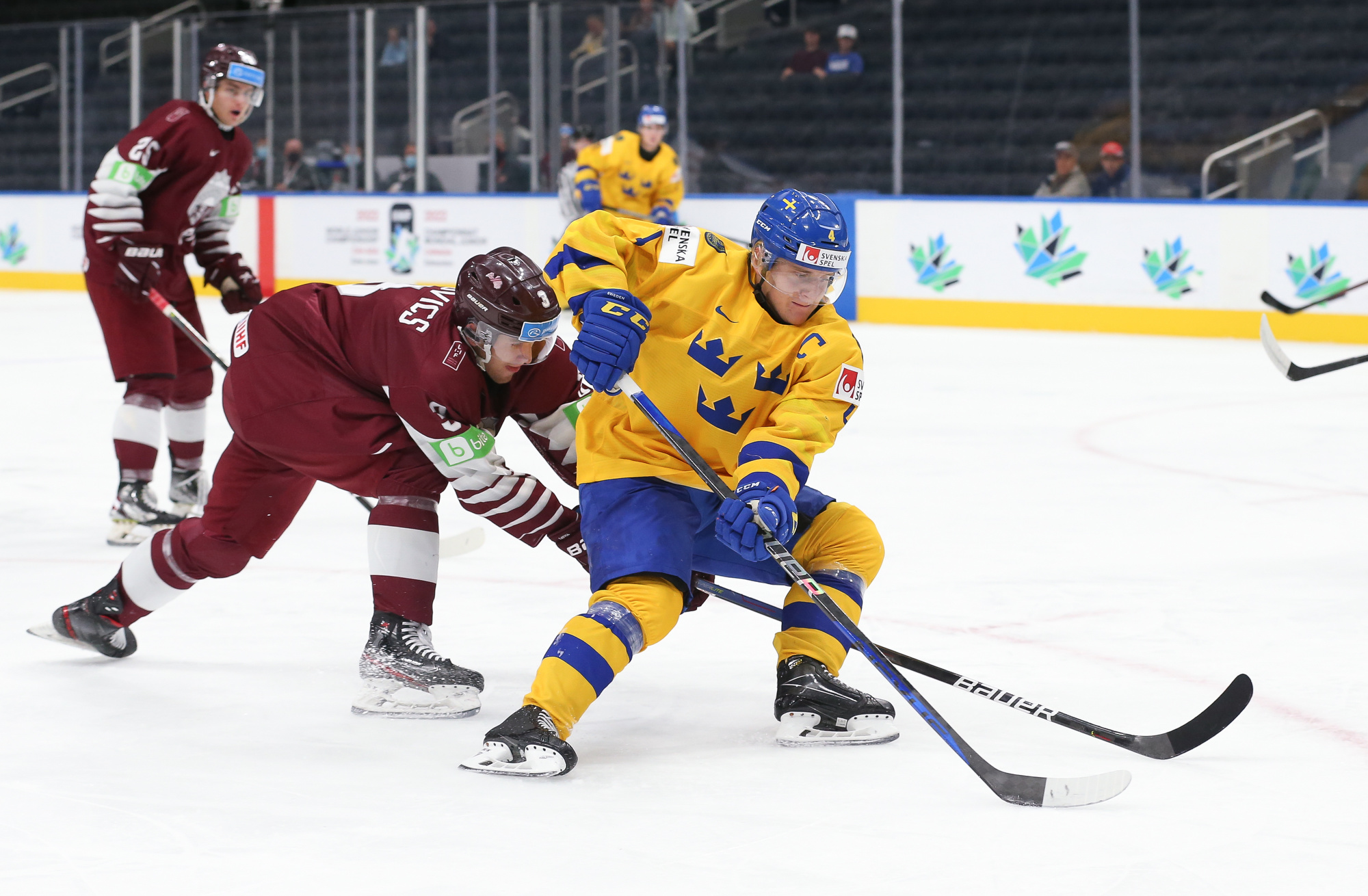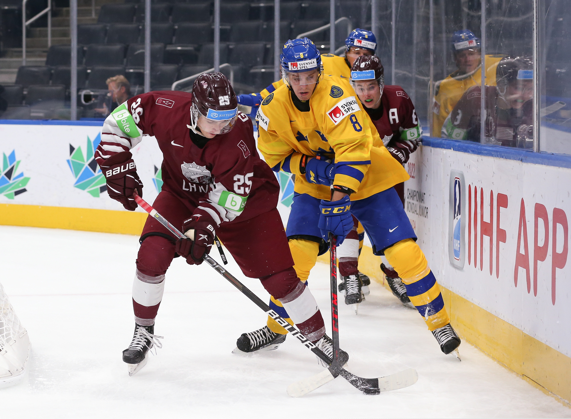 Sweden beat Latvia 2-1 this afternoon in the second of four quarter-finals games at Rogers Place. The win takes Sweden to the semi-finals on Friday and Latvia goes home, likely with their best finish ever. Sweden had won all four previous U20 meetings between the teams, and today was no different, except it was the closest result.