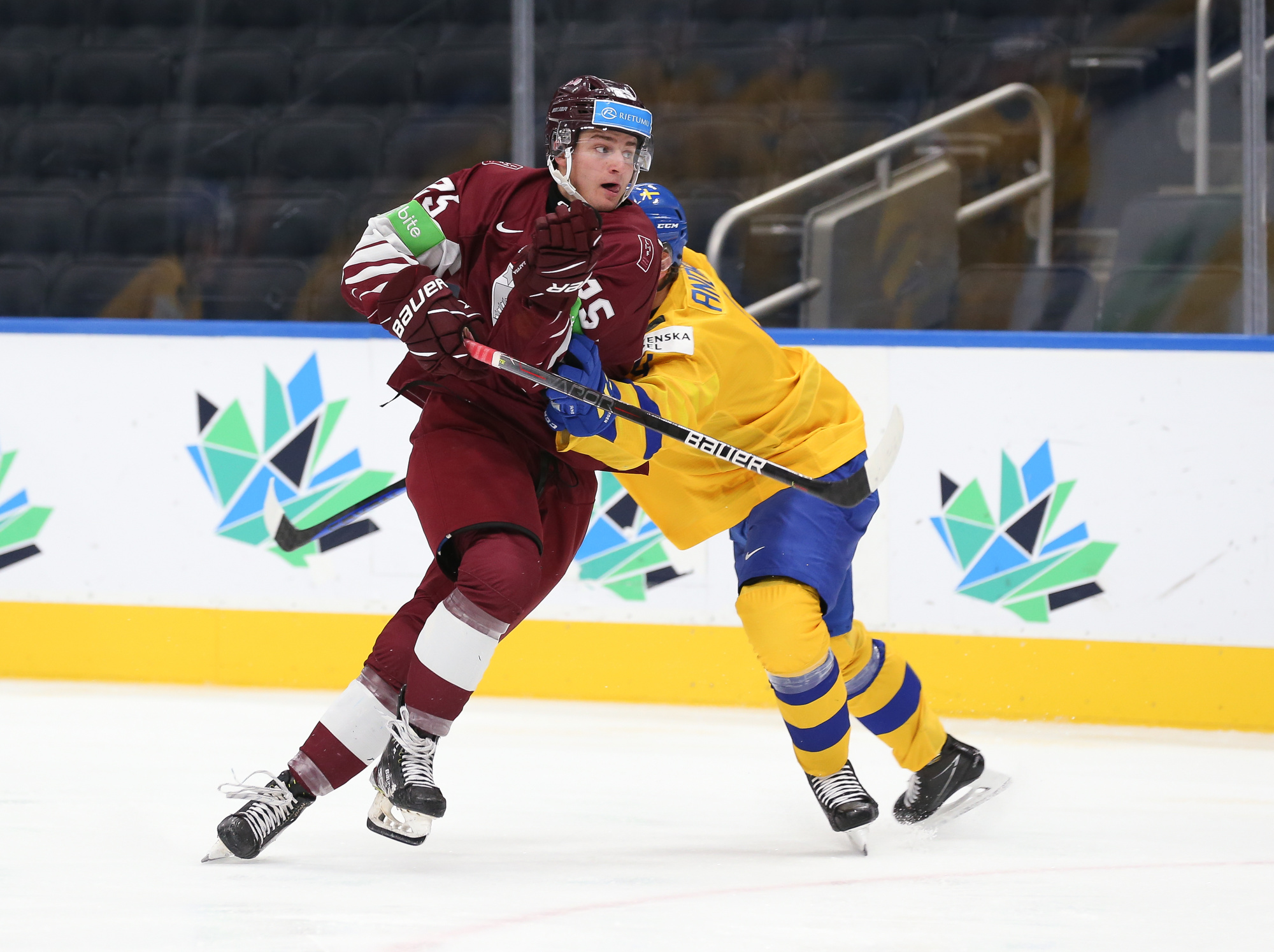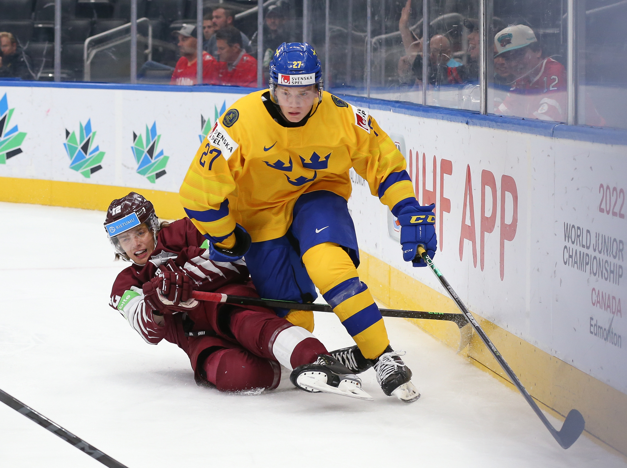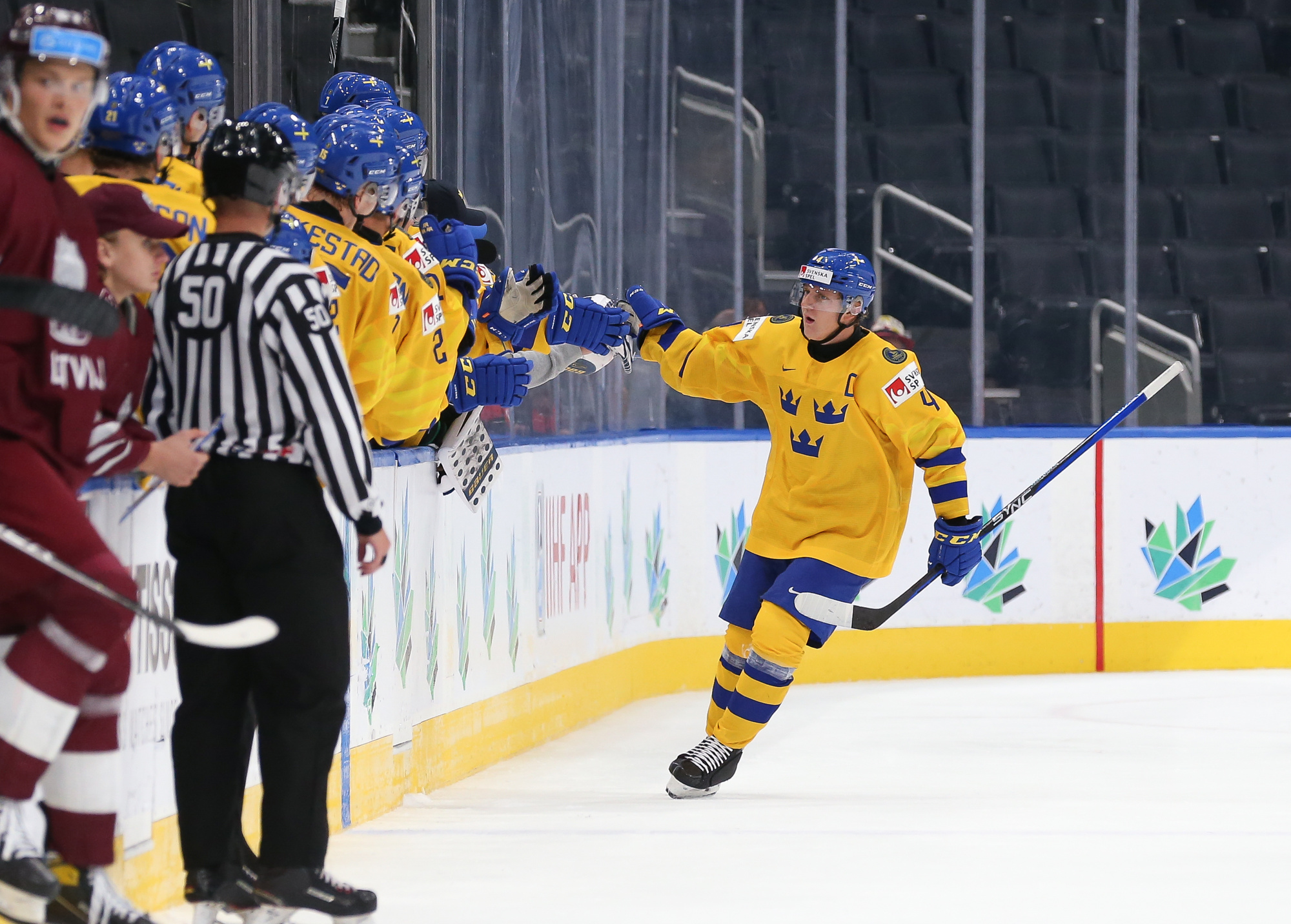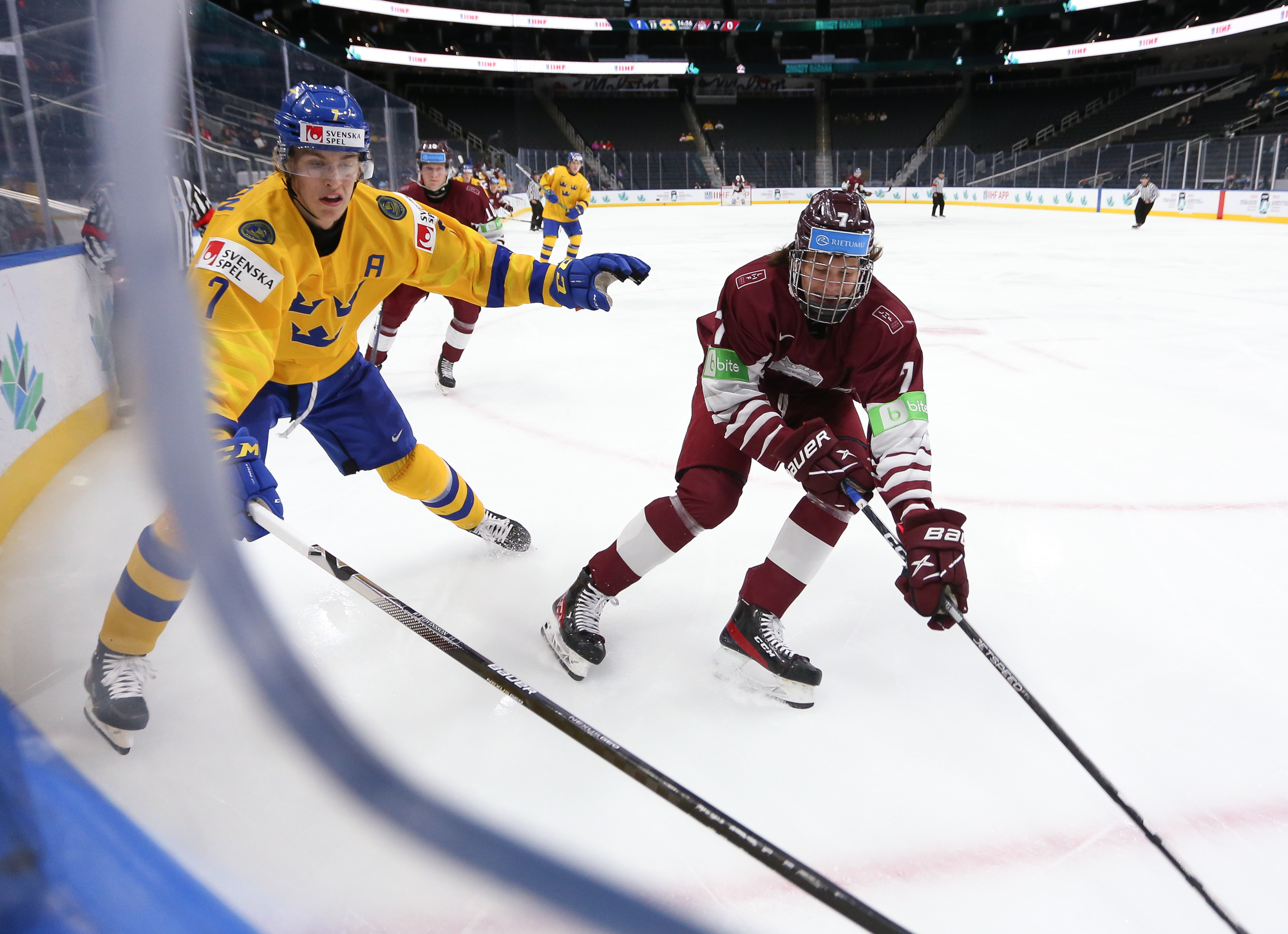 Sweden beat Latvia 2-1 this afternoon in the second of four quarter-finals games at Rogers Place. The win takes Sweden to the semi-finals on Friday and Latvia goes home, likely with their best finish ever. Sweden had won all four previous U20 meetings between the teams, and today was no different, except it was the closest result.