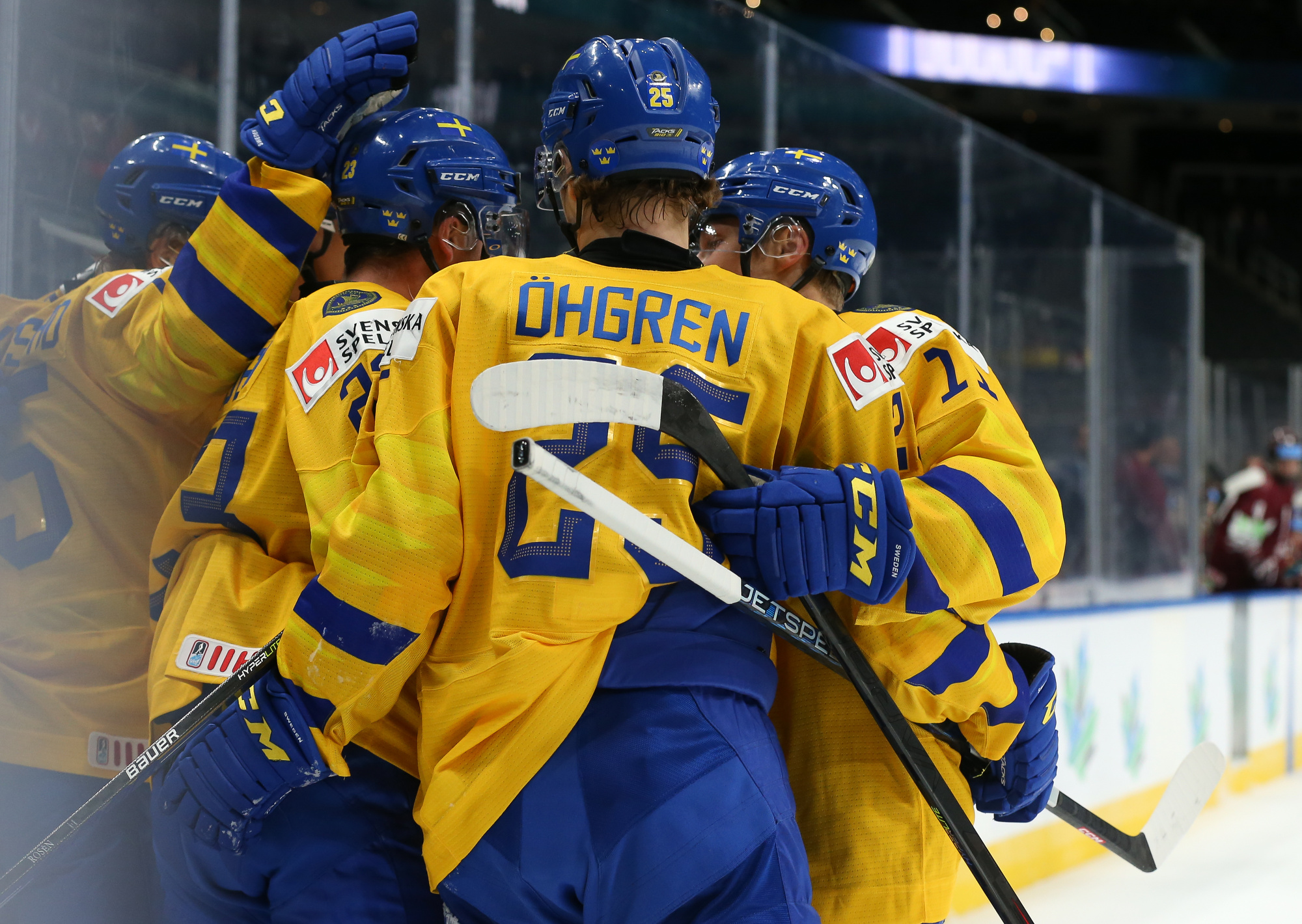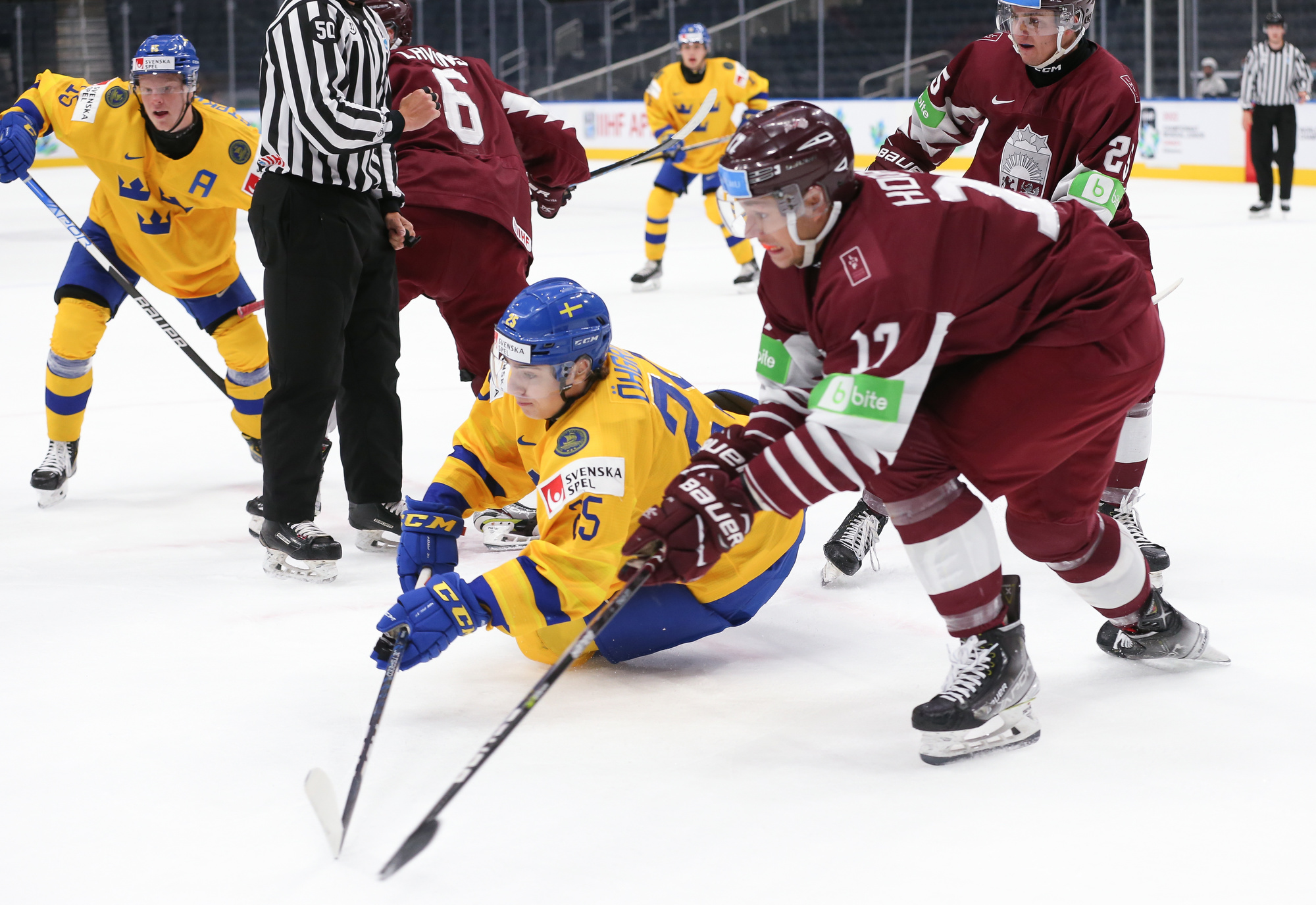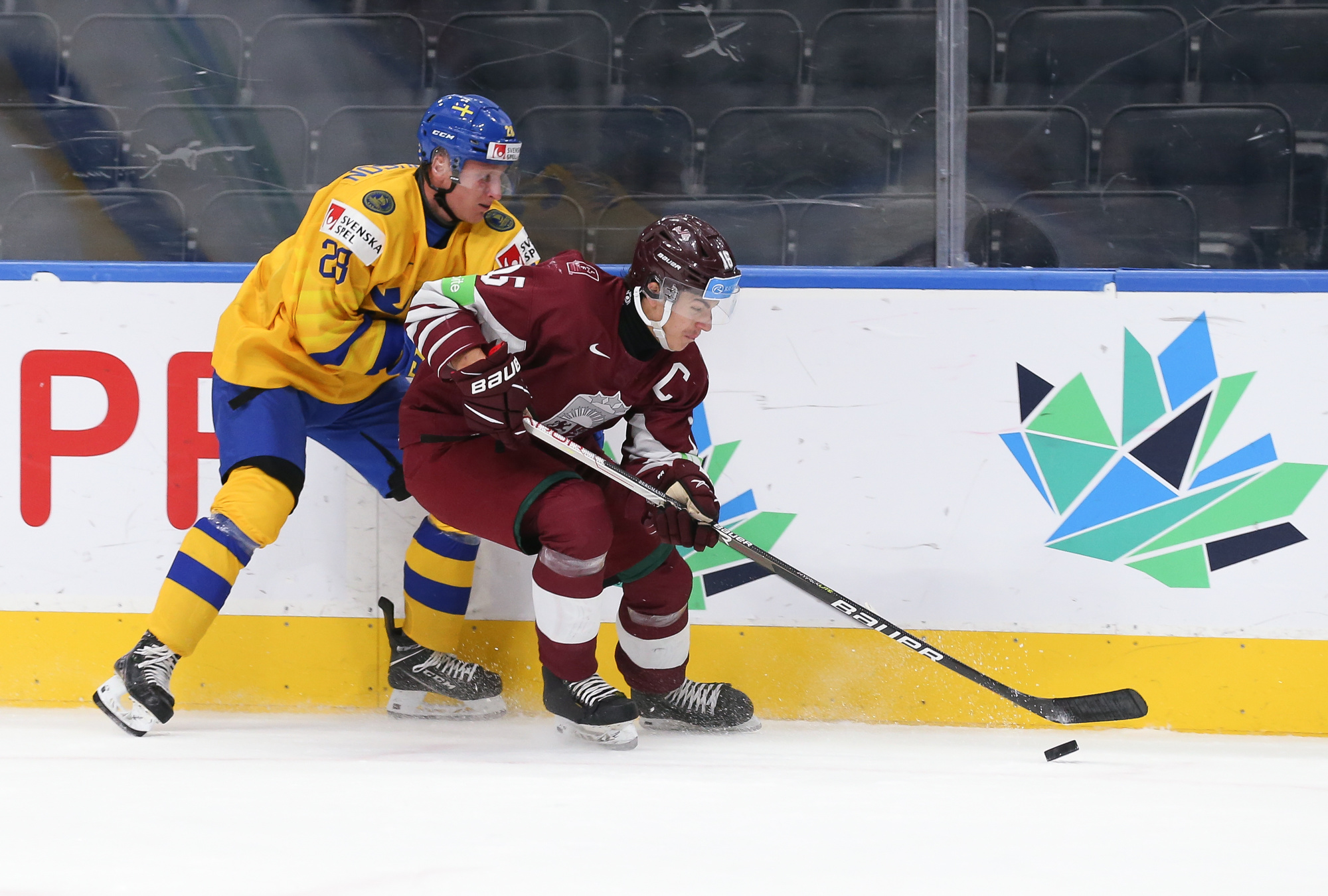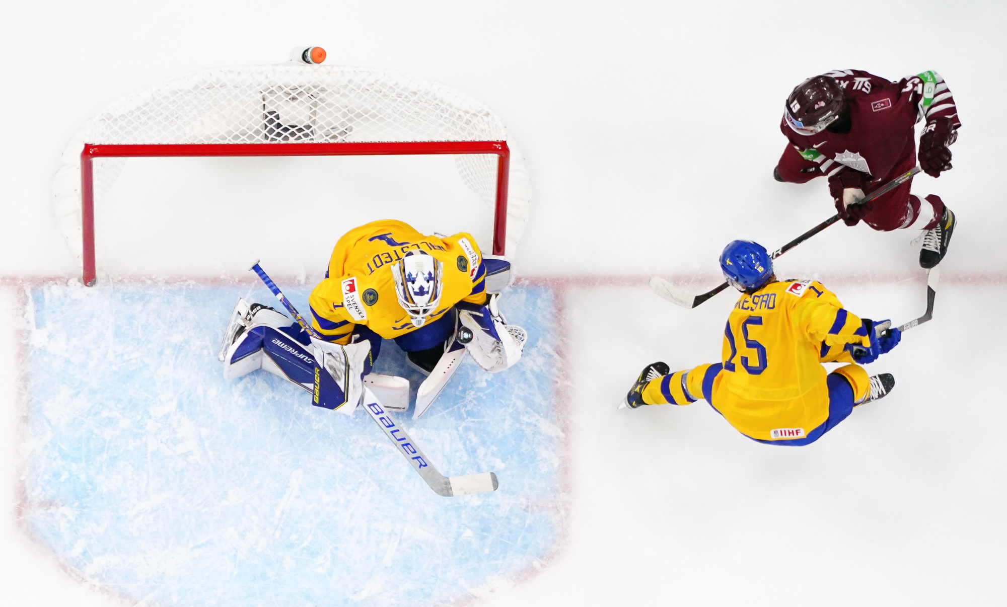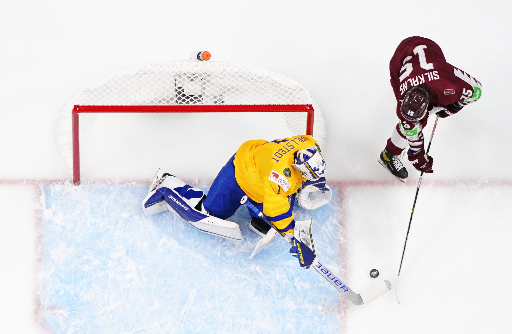Shots favoured Sweden, 27-13, but Bruno Bruveris was rock solid in net for Latvia and the players in front of him put up a brave front. Jesper Wallstedt won his third game of the tournament for Sweden and wasn't tested very often.