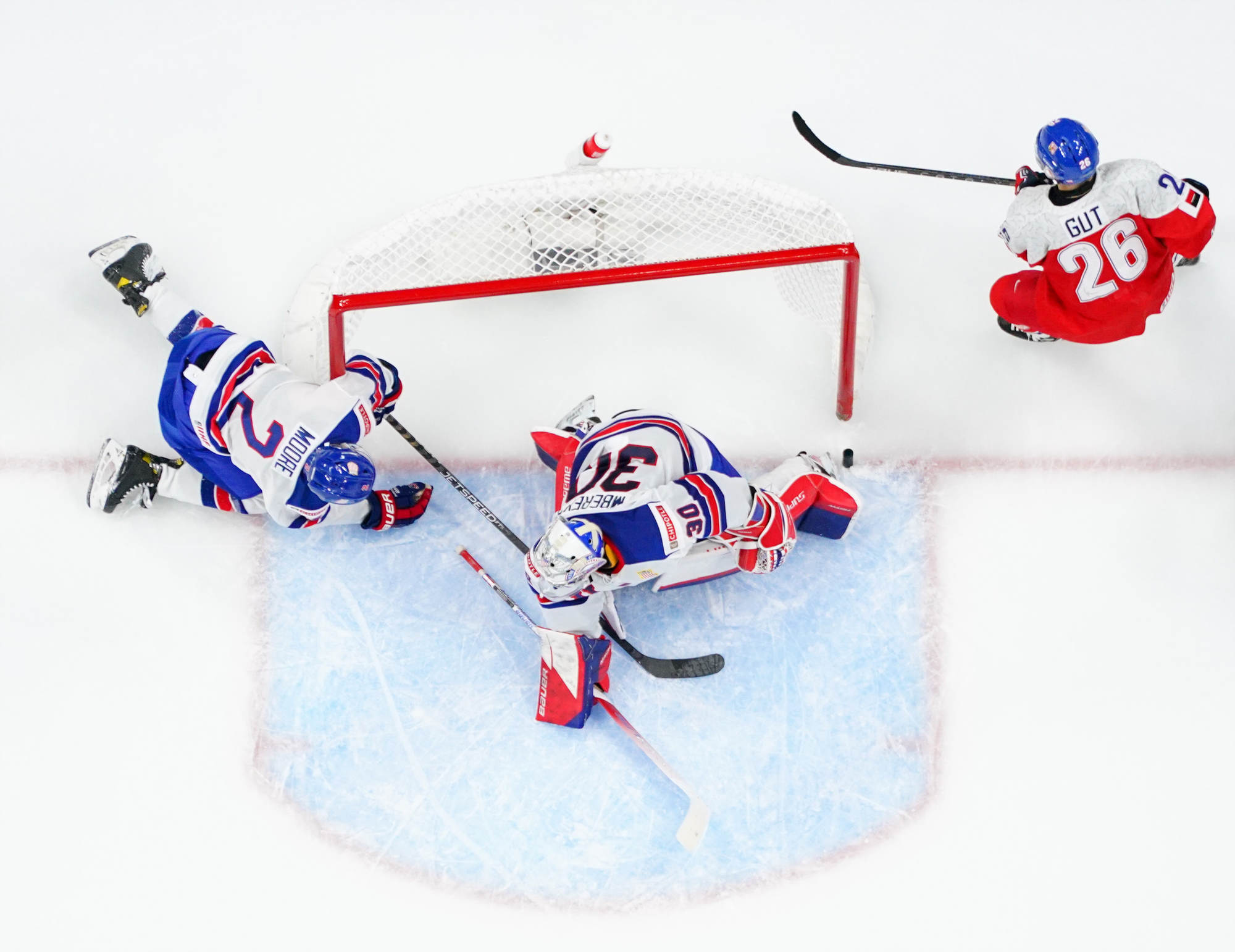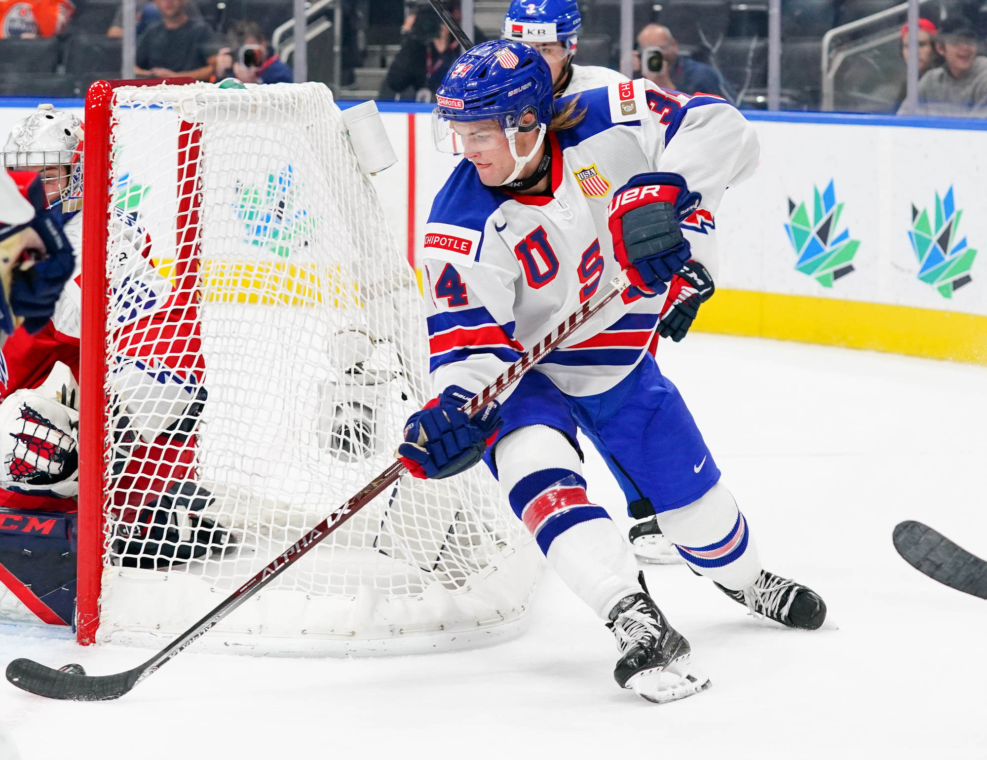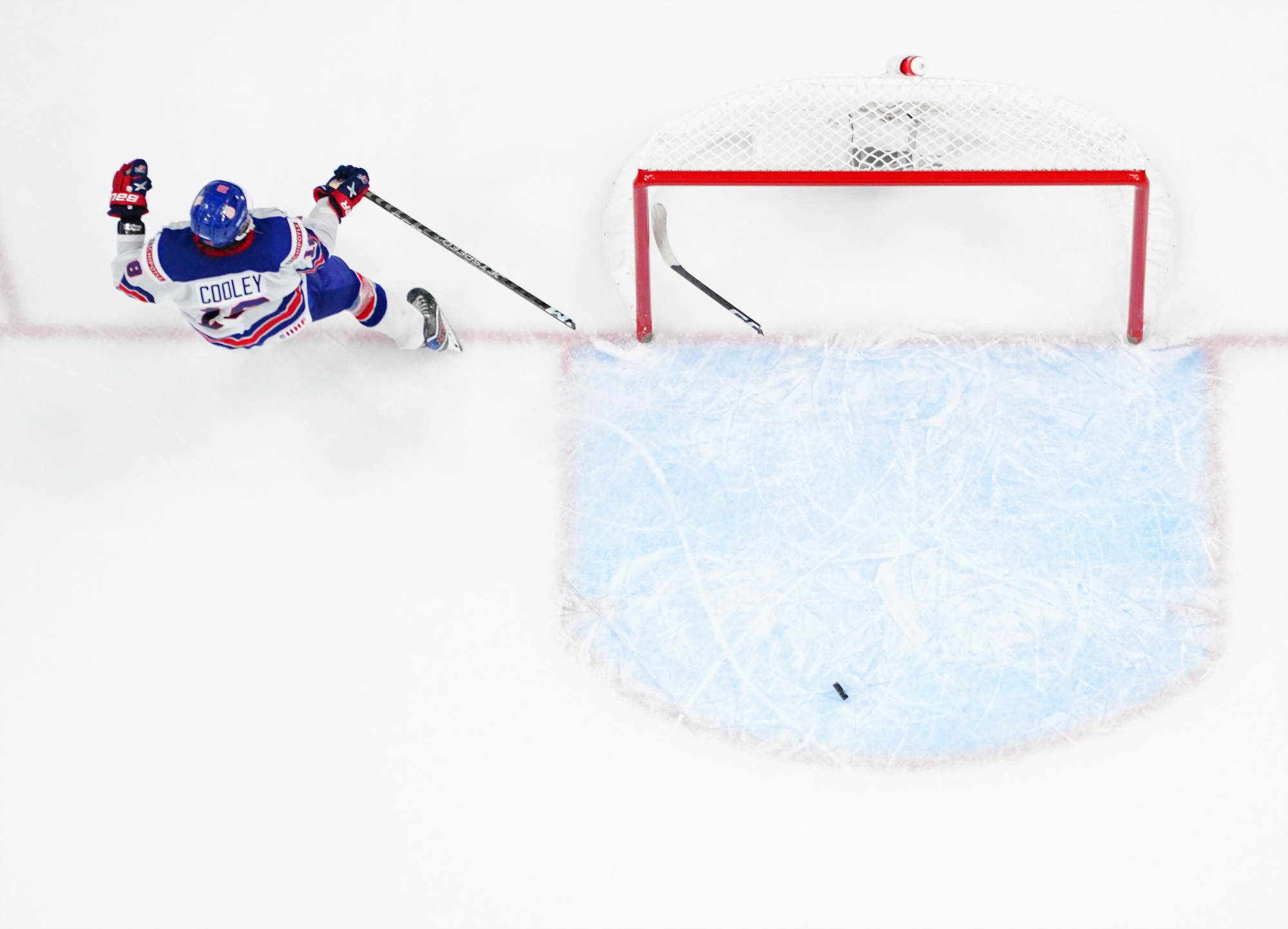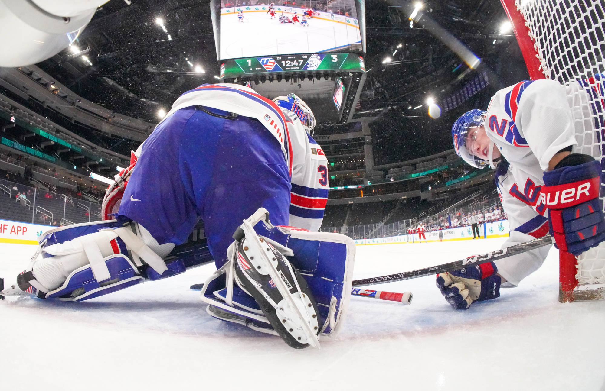 Matt Coronato got to the puck first and fired quickly, but Suchanek dove back to get his stick on the puck. It came right to Logan Cooley, however, and he fired it into the open net for his second goal of the tournament.