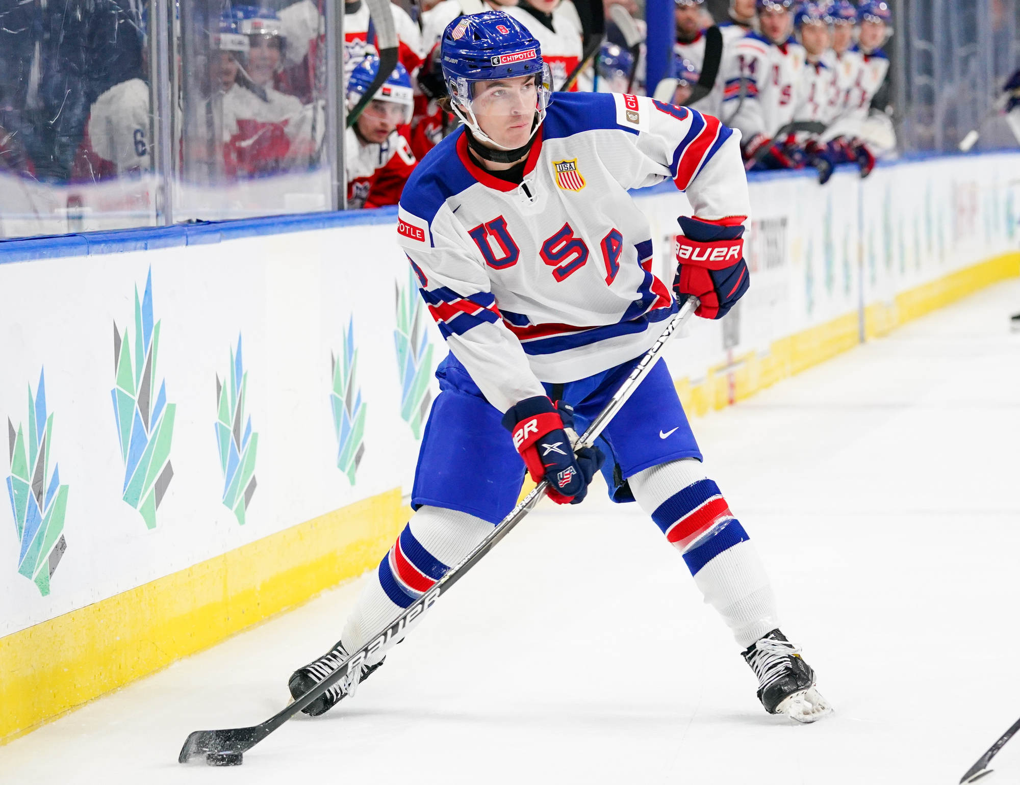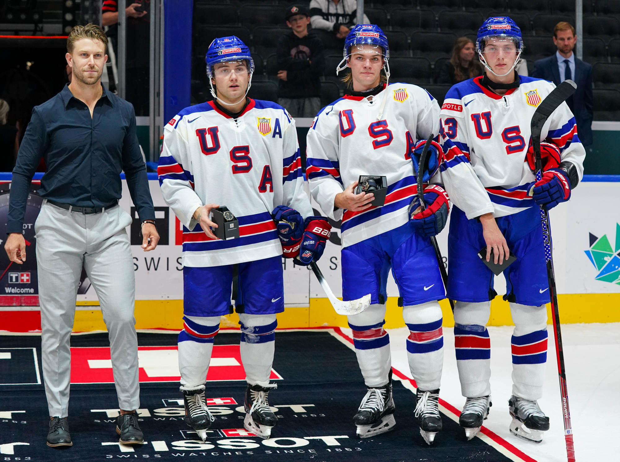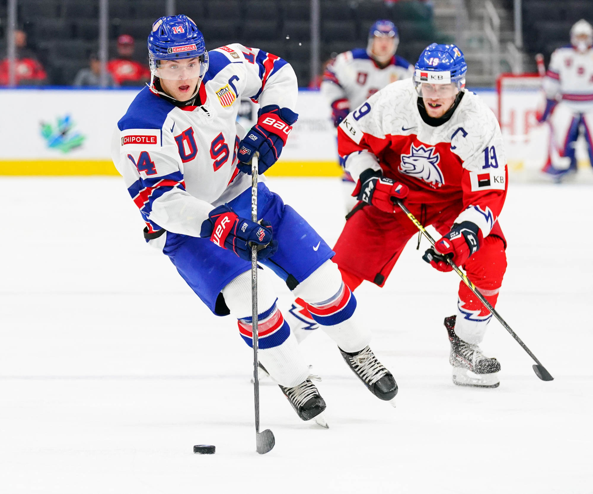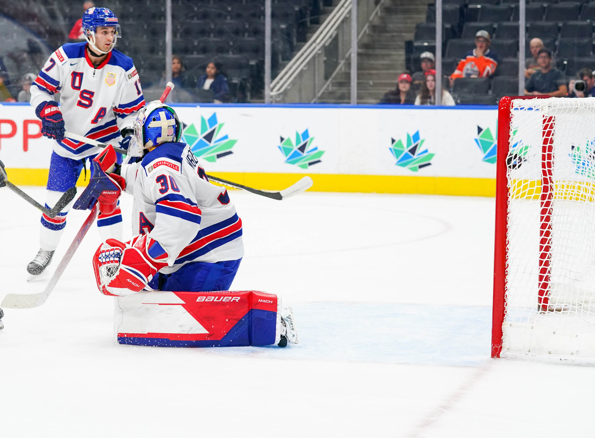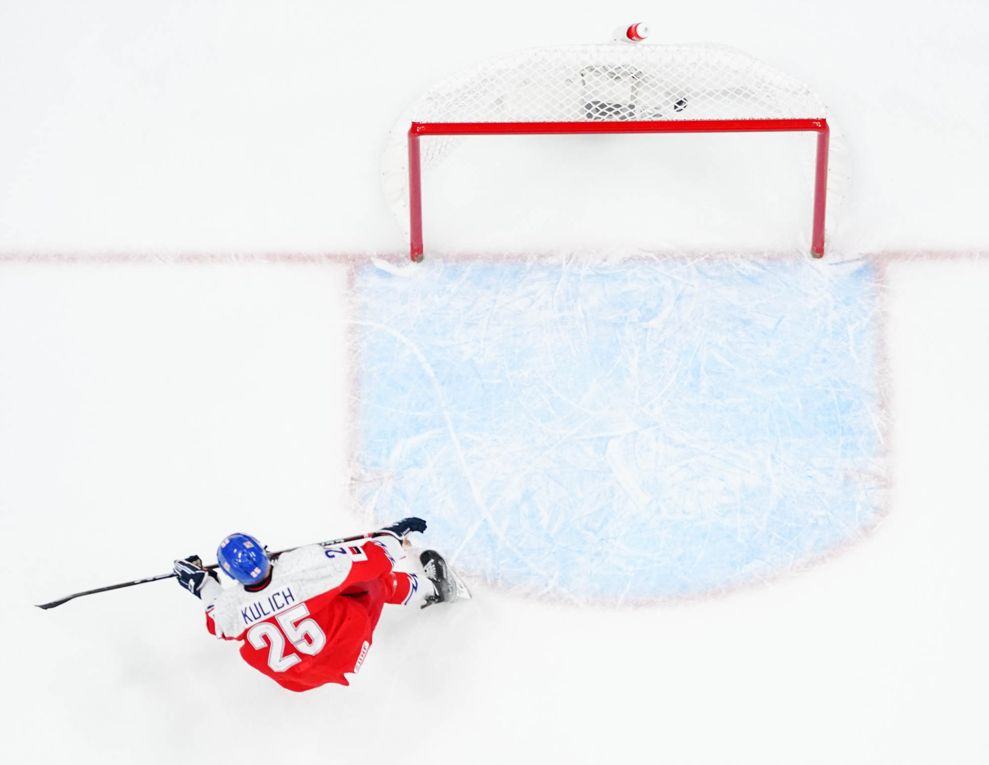 Matt Coronato got to the puck first and fired quickly, but Suchanek dove back to get his stick on the puck. It came right to Logan Cooley, however, and he fired it into the open net for his second goal of the tournament.