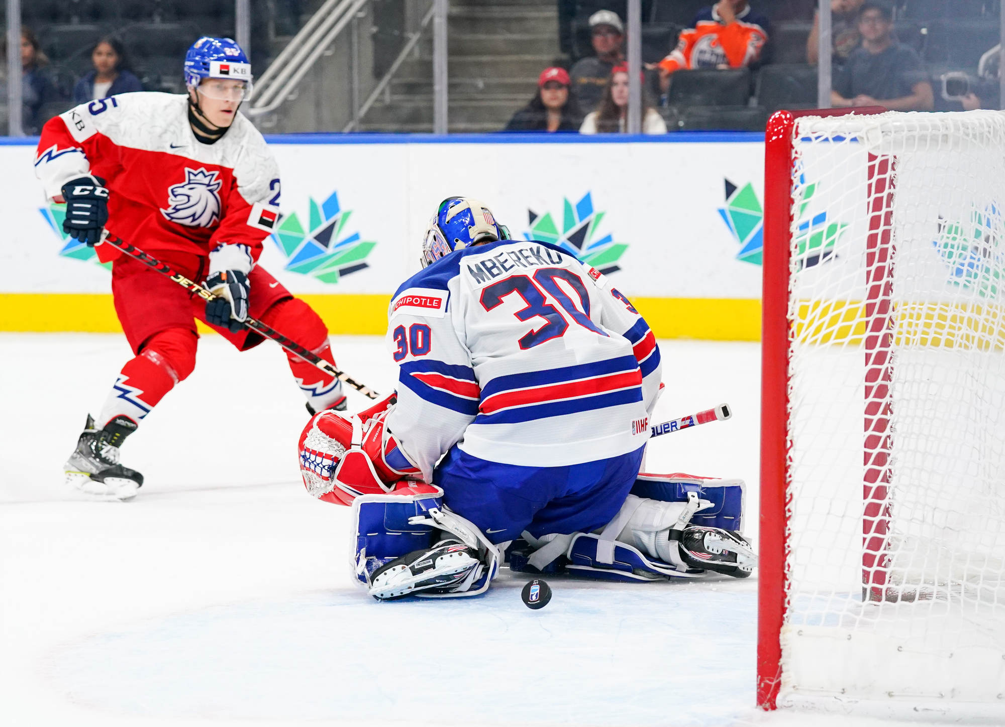 Mbereko went to the bench with 1:40 left and a faceoff in the Czechia end, but a giveaway allowed Kulich to steal the puck and score an empty netter to seal the victory.