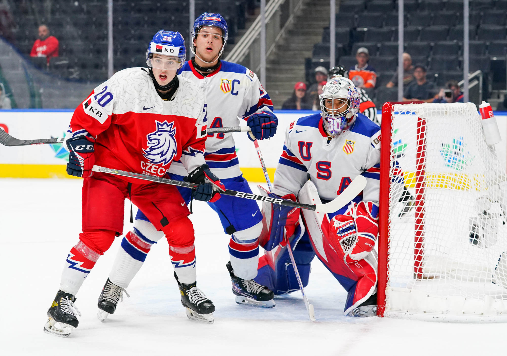 The U.S. continued to take the puck to their opponents, but the Czechs didn’t panic and played disciplined hockey inside their own line. They didn’t test Mbereko much, but they did tie the game at 17:55. The play started in the corner when Kulich won a puck battle back to the point. Jiri Tichacek’s long shot was expertly tipped in front by captain Jan Mysak, making it a 1-1 game.