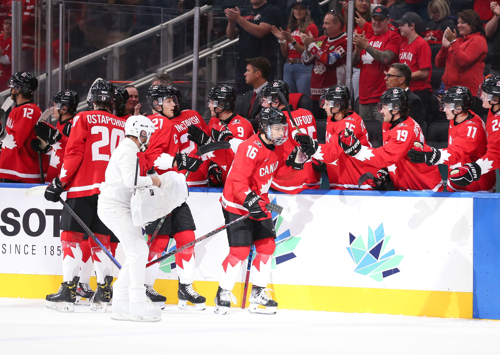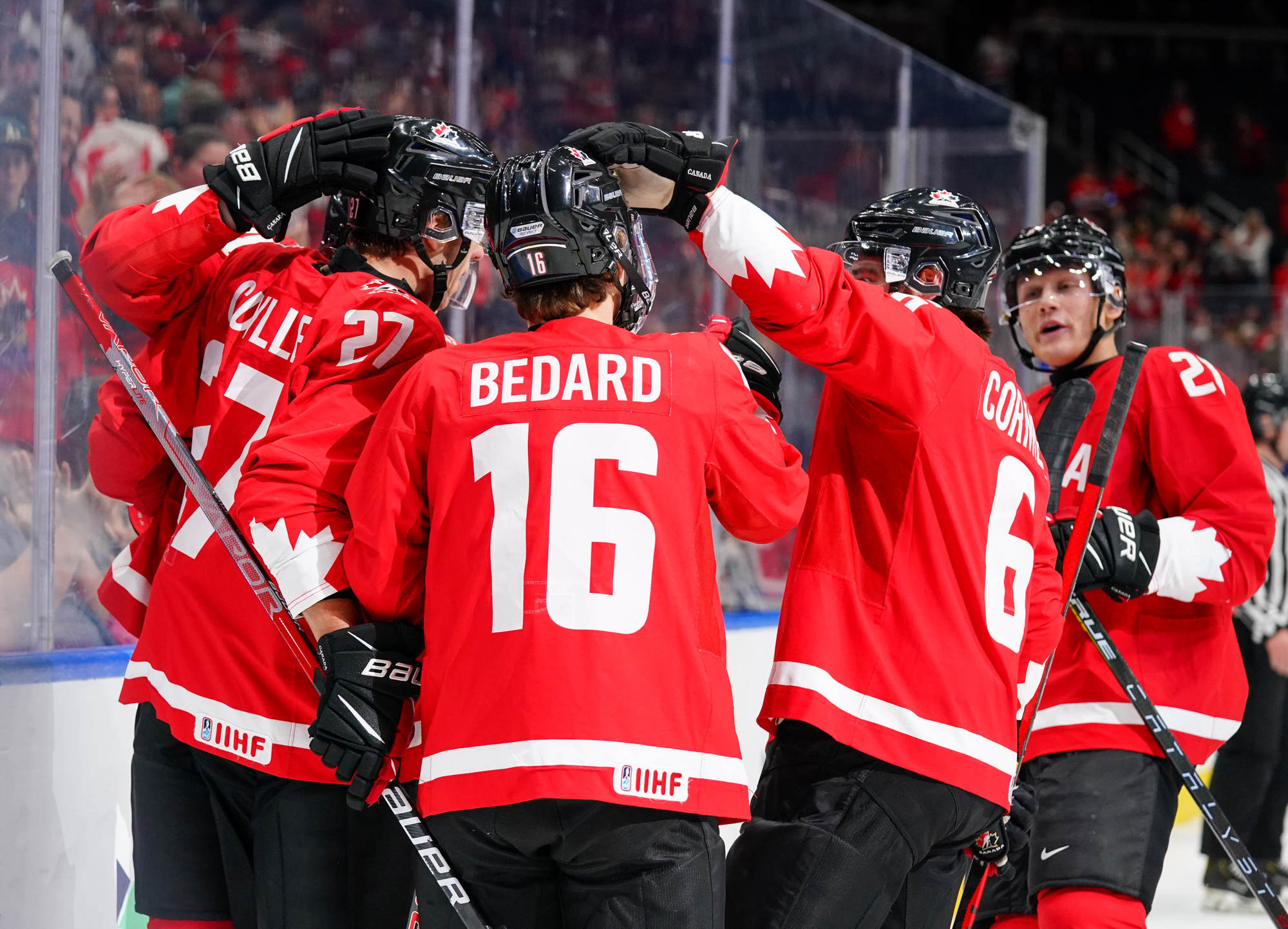 "It's really, really cool," Connor Bedard said of the team's chances for gold. "It hasn't really sunk in yet. We're just so excited to have that opportunity. I thought we were really good from the start. Sure, they're gonna press a bit sometimes, but I thought overall we took control of the game."