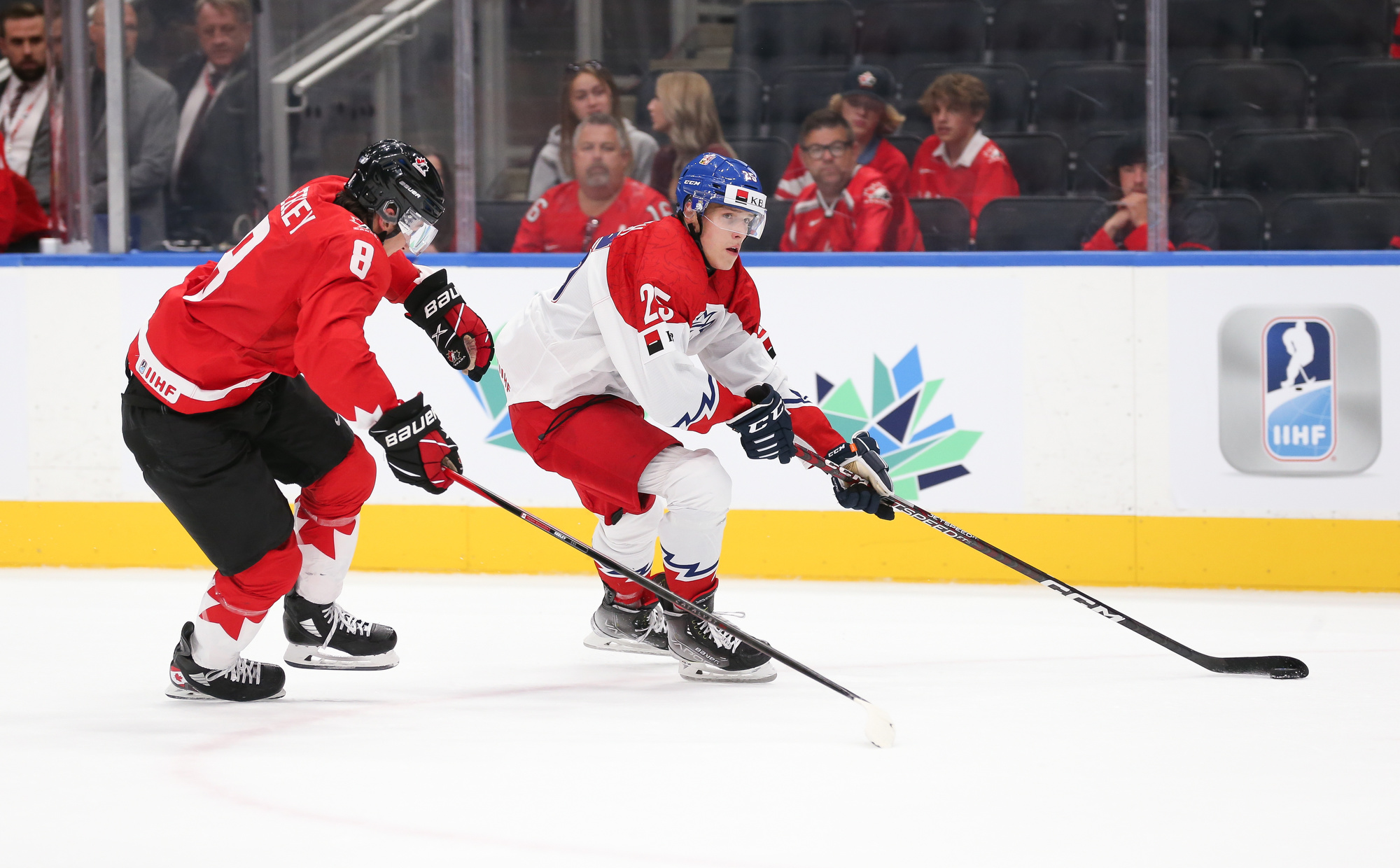 "It was a tough game," offered Czechia forward Jakub Kos. "We allowed two goals in the first period, but we didn't put our heads down. We tried to play hard in the second period and I think did that. We had two stupid penalties and we had two goals scored on us on the power play. So that's where the game changed. Still, we got within two goals in the third period. Everybody on our team put everything into the game."