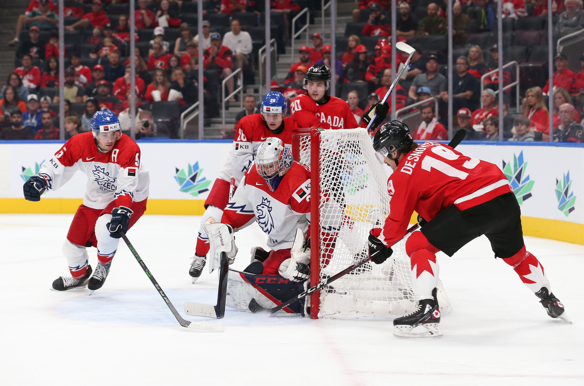Czechia finally got on the board midway through the third when Jiri Kulich dropped the puck for Jan Mysak, and his quick shot went under the blocker of Garand at 10:54 to make it a 4-1 game with his 5th goal of the tournament.