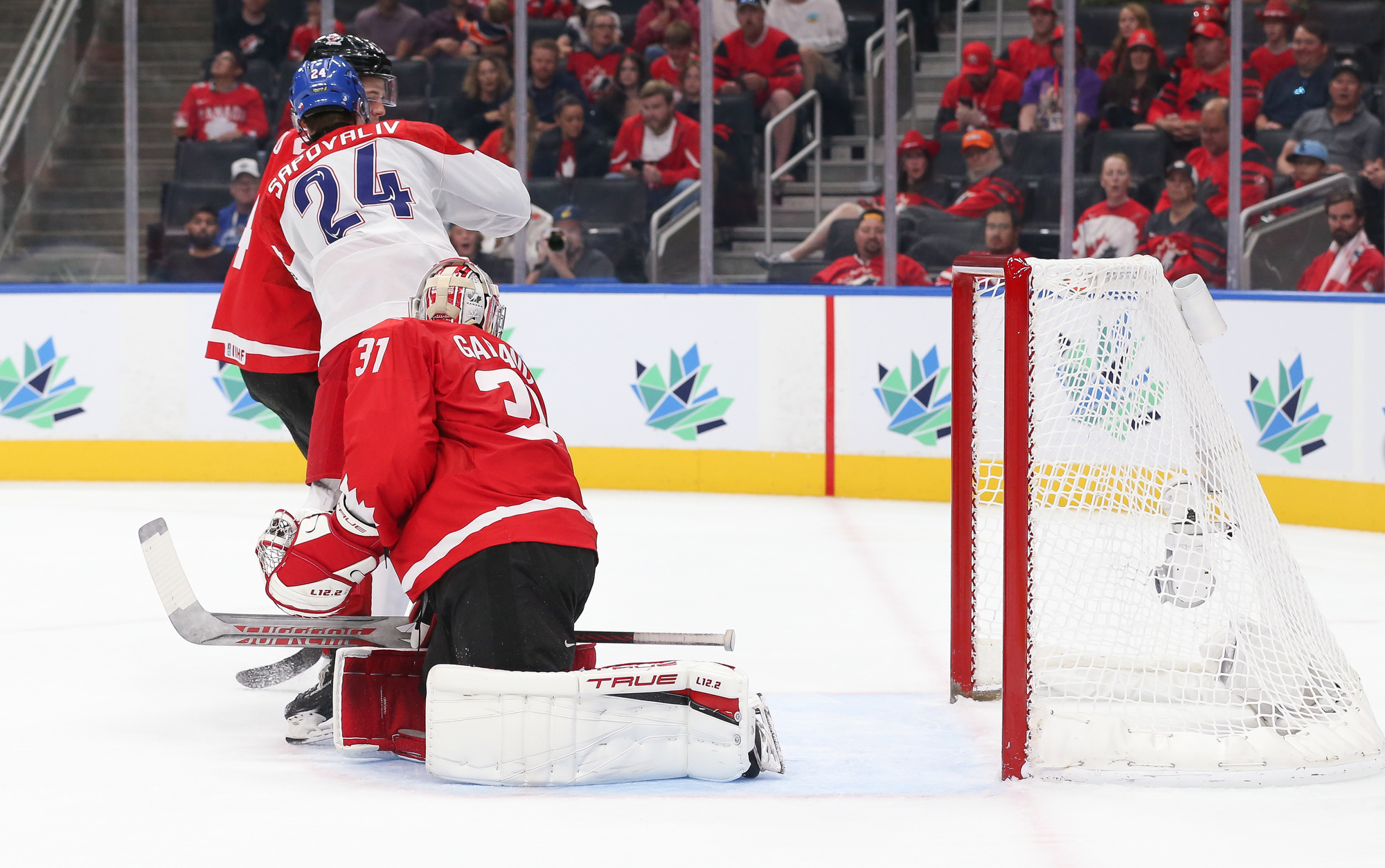 Moments later, Gaucher hit the post, and then Canada killed off a penalty for too many players. They then went back on the power play, and this time Johnson faked a shot before passing to captain Mason McTavish, who fired a one-timer into the open back side of the goal for a solid 4-0 lead at 16:11. It was his tournament-leading 8th marker and 15th point.