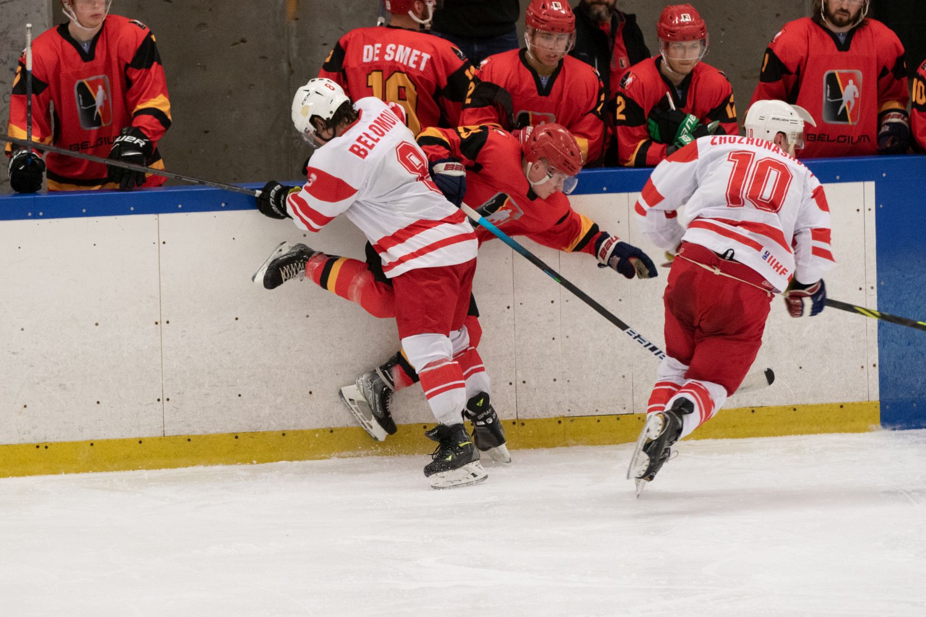 First, Gunnar Arason’s stretch pass sent Axel Orongan into the danger zone and he deked his way past a defender before beating Arne Waumans in the Belgian net. A needless foul by Hakon Magnusson put Iceland back under pressure, with Johann Ragnarsson called upon for a couple of big saves during the penalty kill, but late in the frame the host nation got in front. This time, it was a spectacular coast-to-coast effort from Halldor Skulason, who managed to squeeze the puck past Waumans just before his momentum sent him crashing into the net. The Belgians protested, claiming the frame was off its moorings before the puck crossed the line, but the officials awarded the goal.